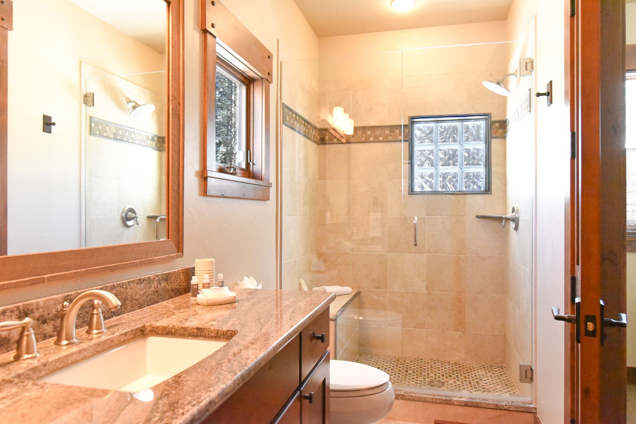 - Hallway Bathroom: full bathroom w/ walk-in tile shower.