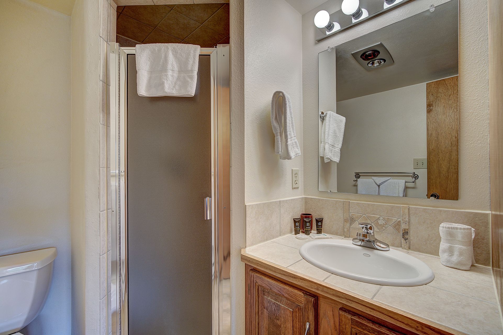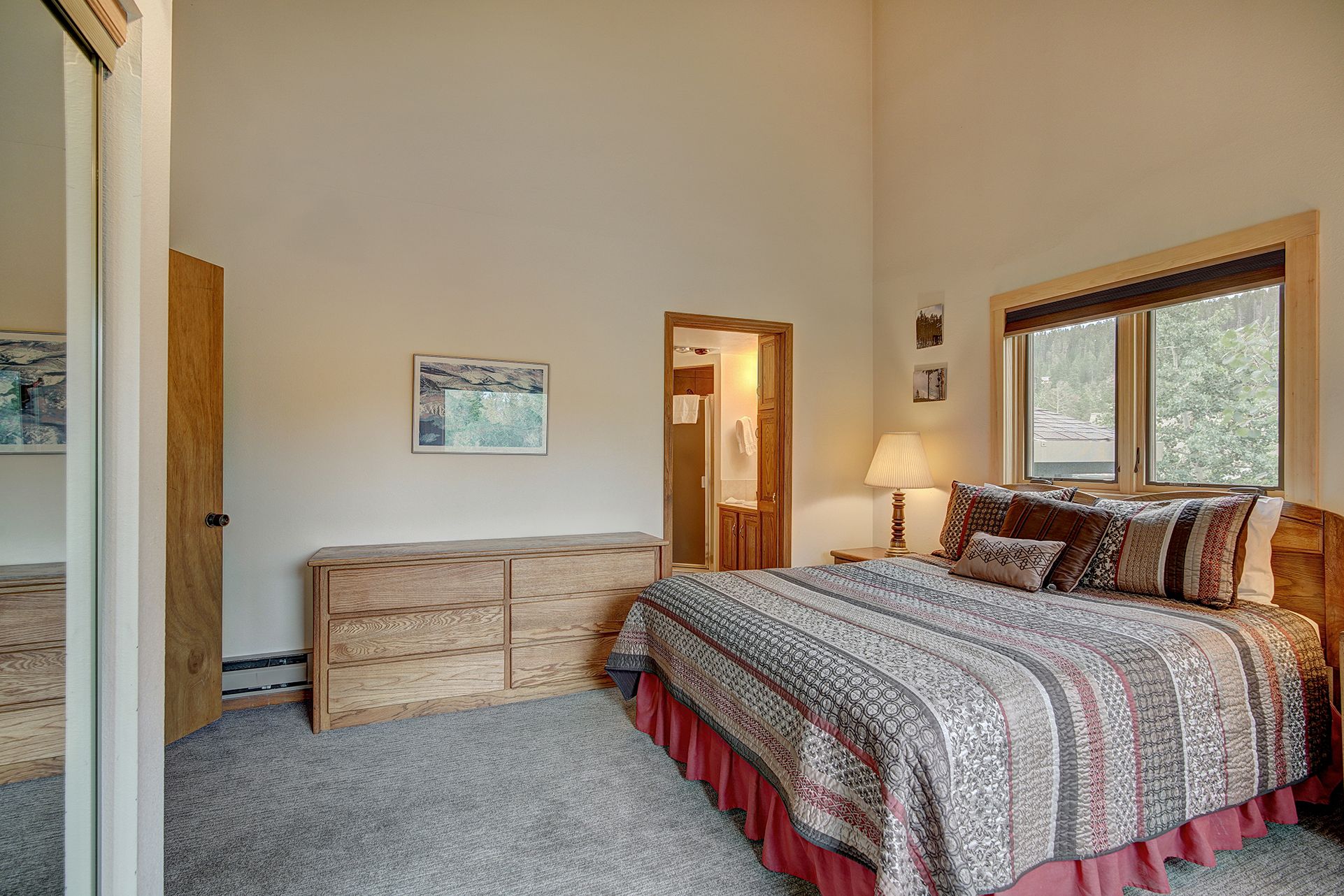 - Queen master suite: queen bed, private bathroom with tub/shower, flat-screen TV. (sleeps 2)