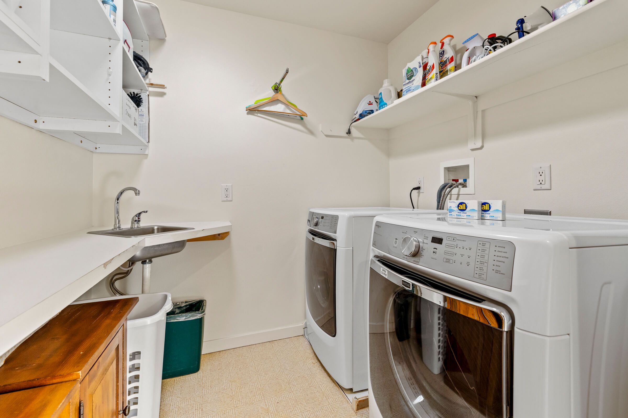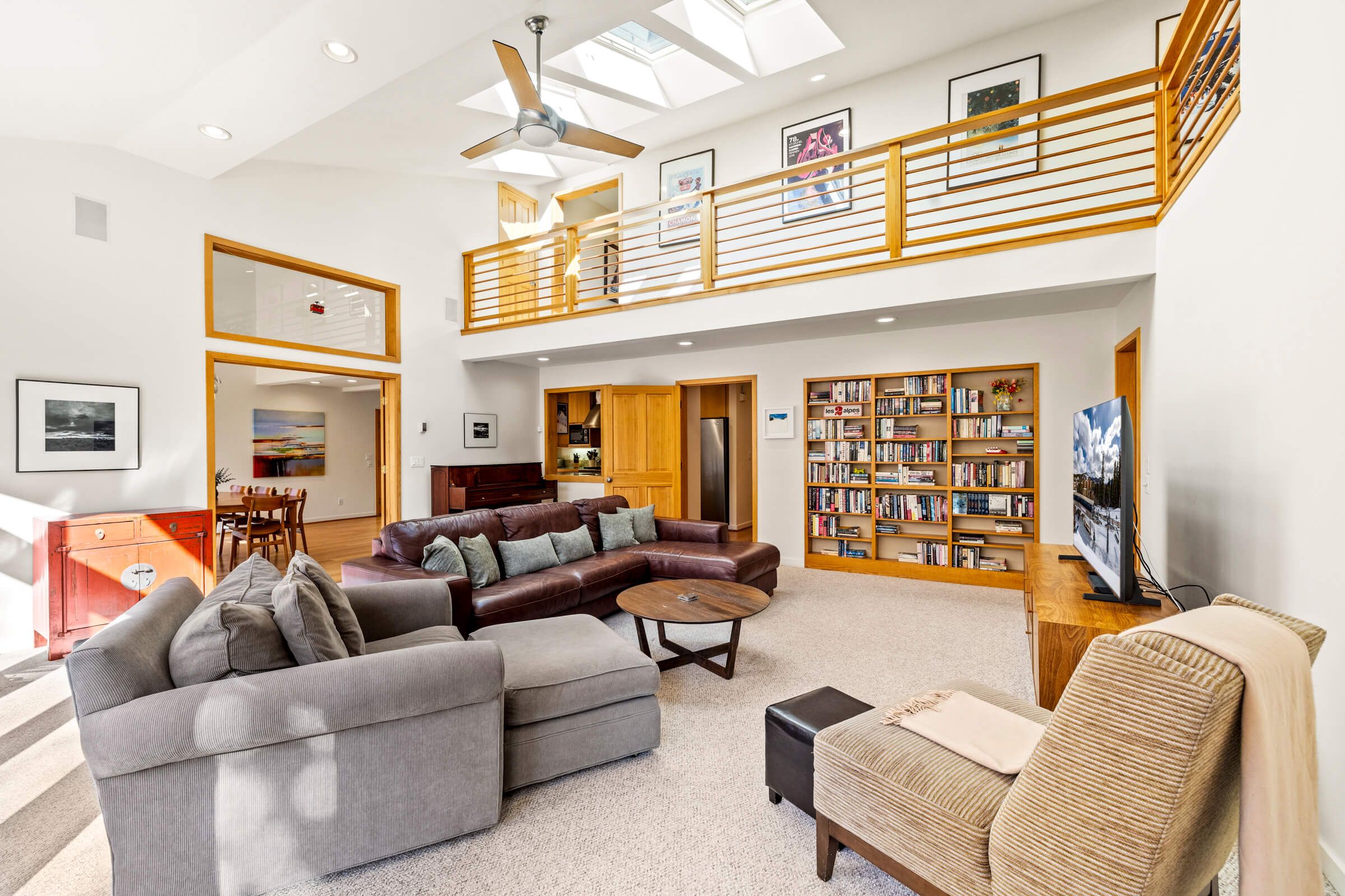 The spacious kitchen makes it easy to prepare everything from quick snacks to full family dinners, featuring a gas range and ample counter space. A dedicated dining room with large windows offers a welcoming place to gather over meals, while the second living area provides another spot to relax with comfortable seating, Smart TV, gas fireplace, and board games. Upstairs, a loft with a workstation and in-home laundry add extra convenience.