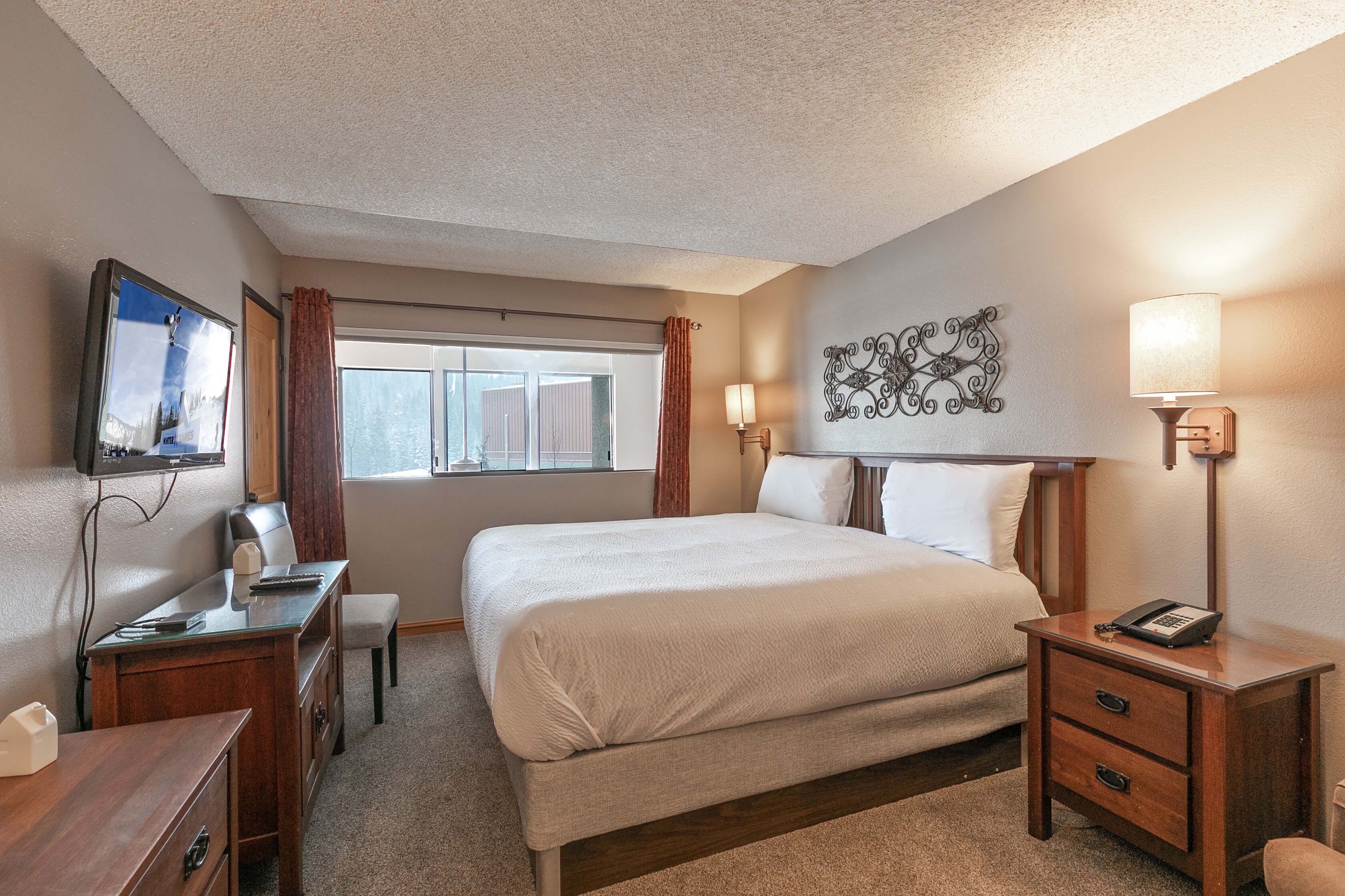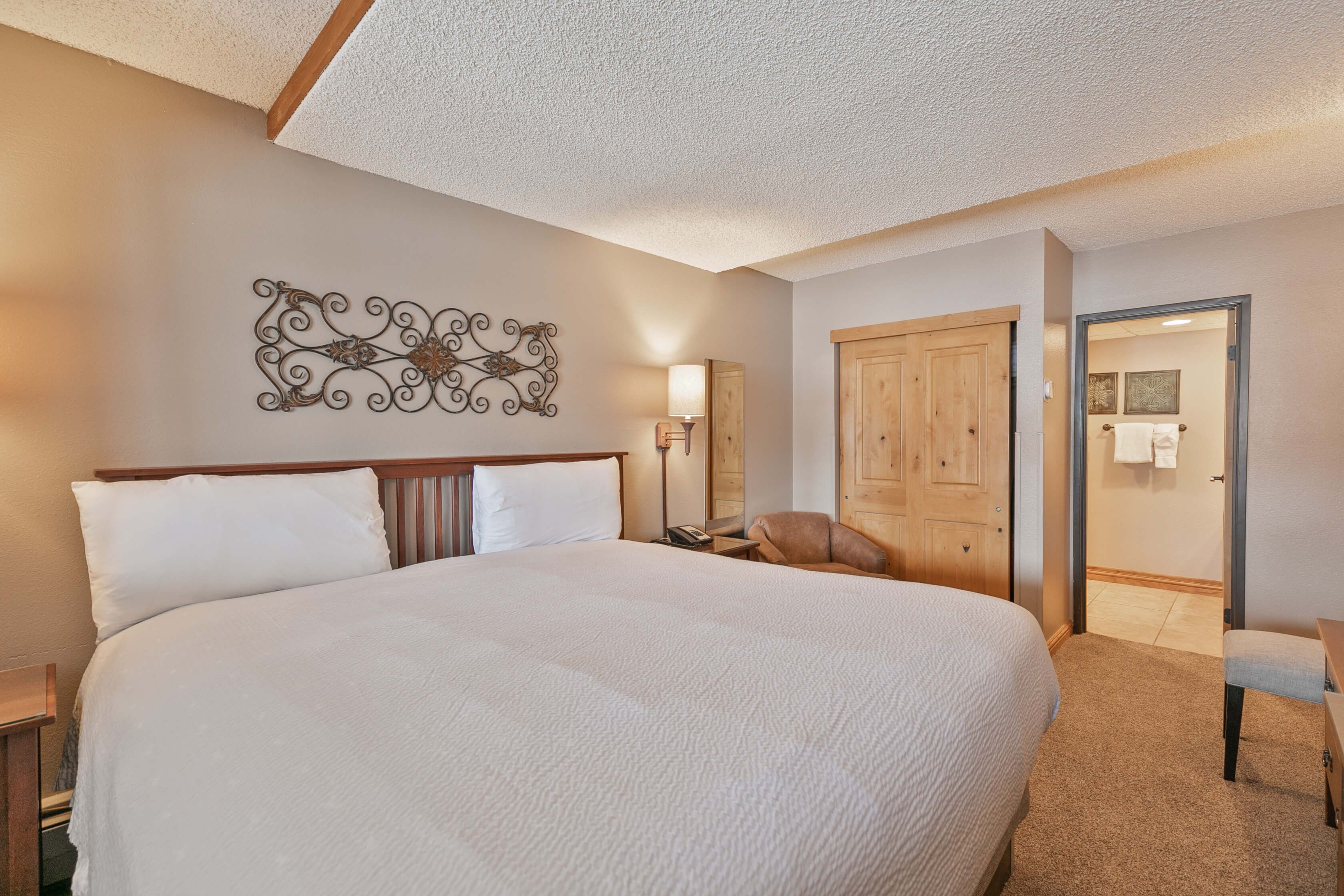 - Master suite: king bed, private bathroom with tub/shower, flat-screen TV, views of slopes and lift. (sleeps 2)