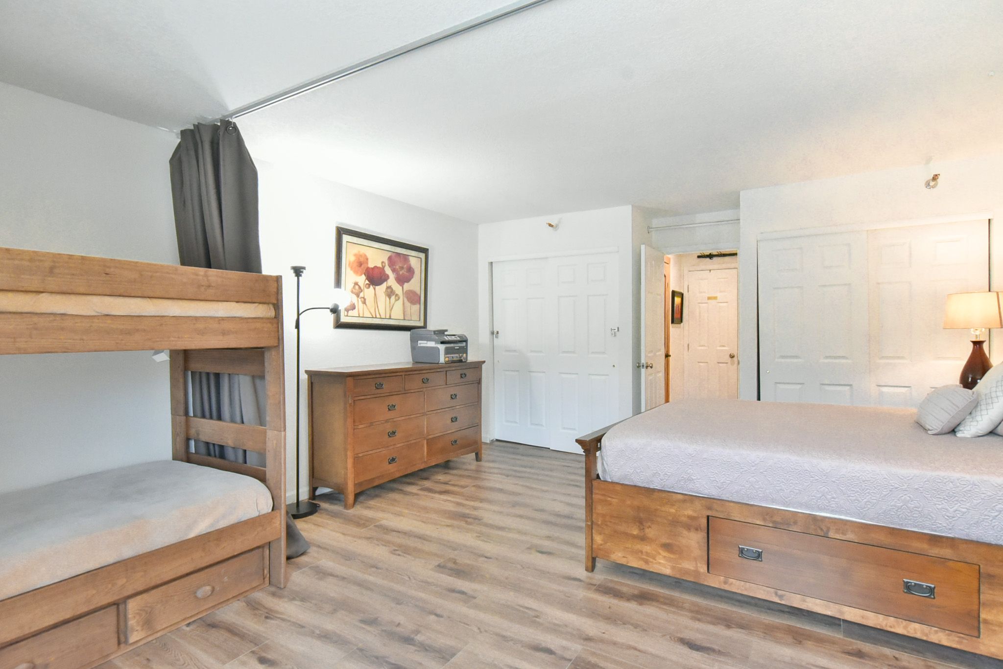 - Bedroom: queen bed, twin-over-twin bunk bed (sleeps 4)