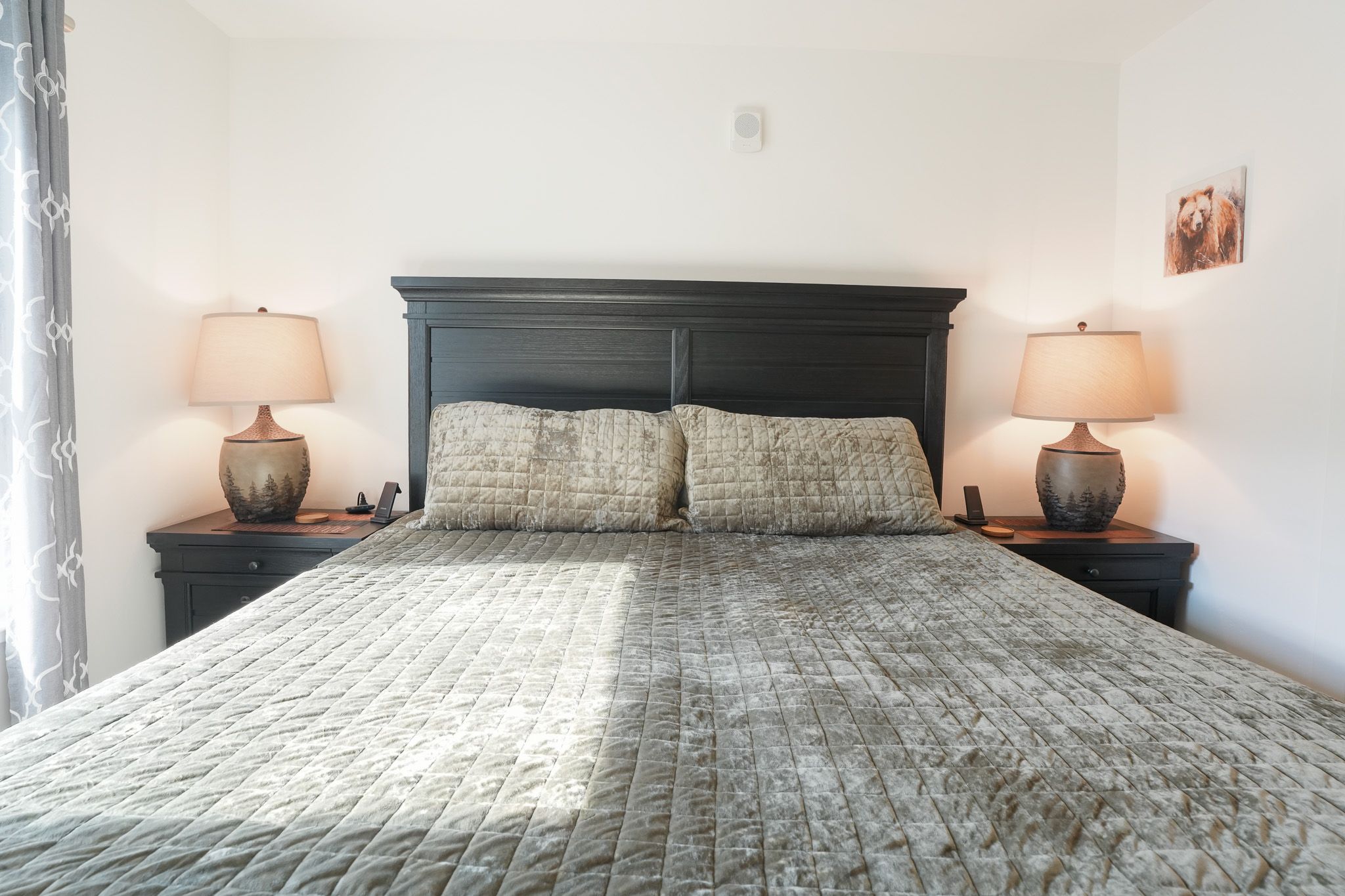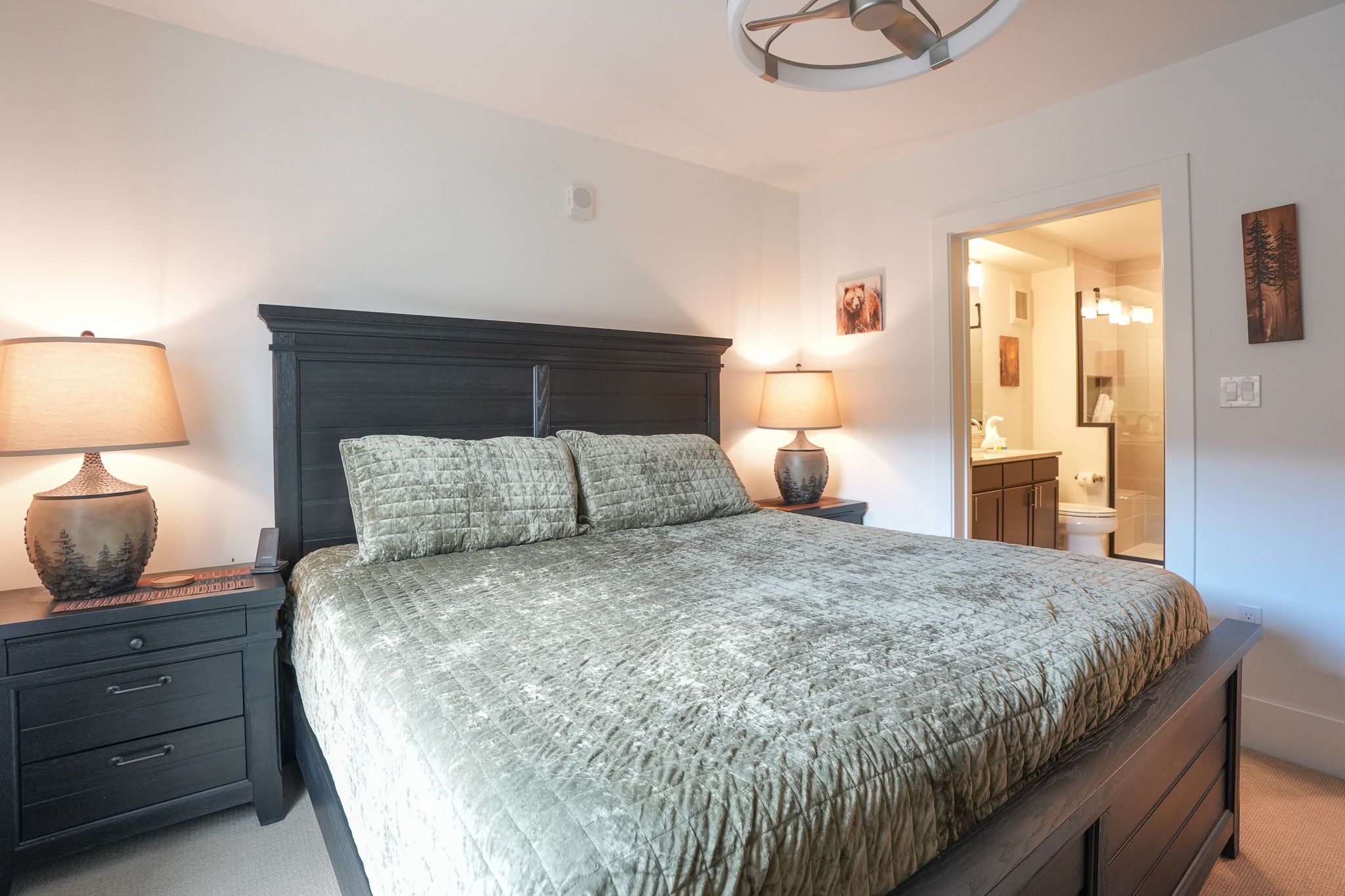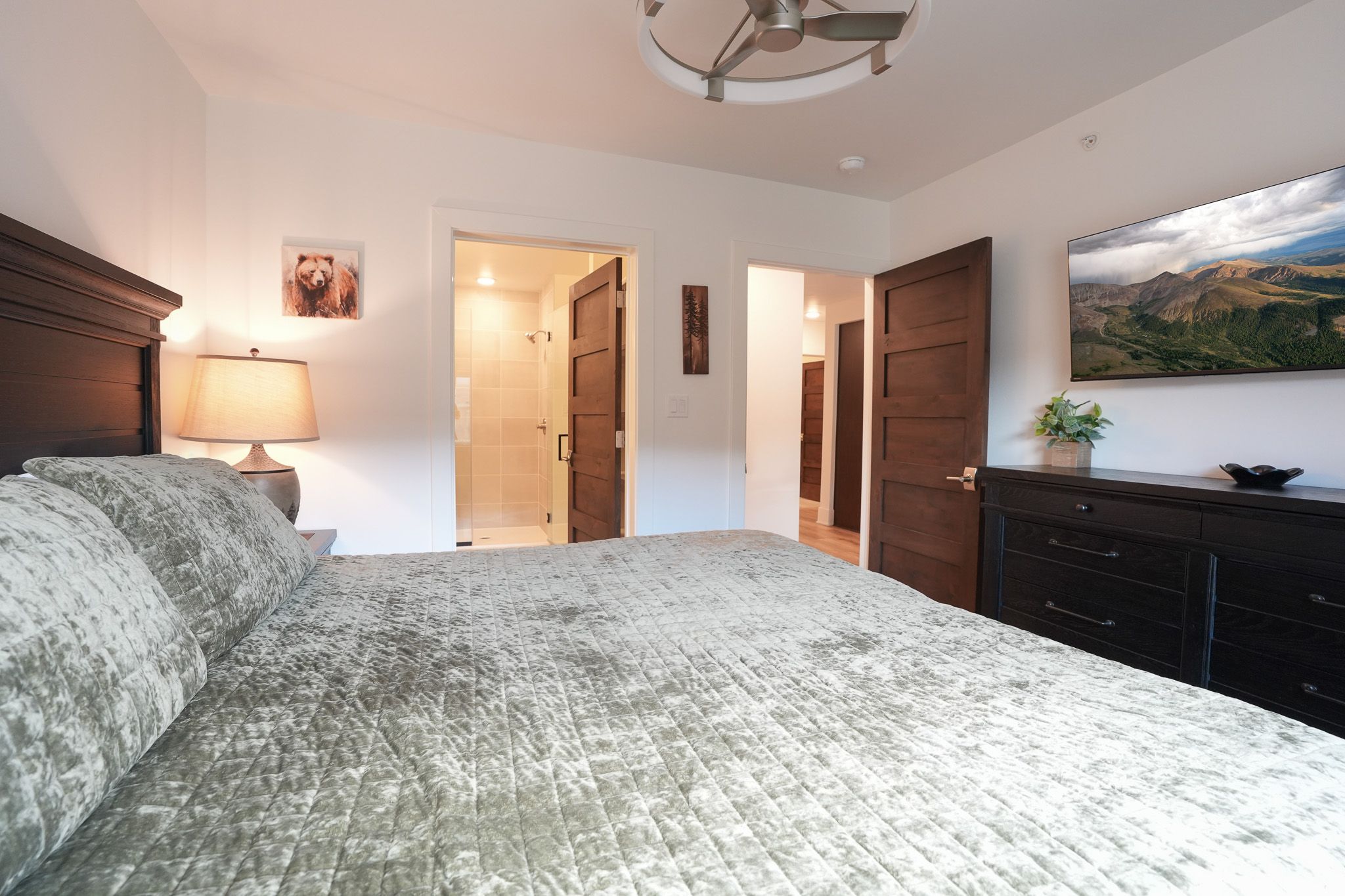 • King master suite: king bed, smart TV, and ensuite bathroom with walk-in shower & his/hers sinks. (sleeps 2)