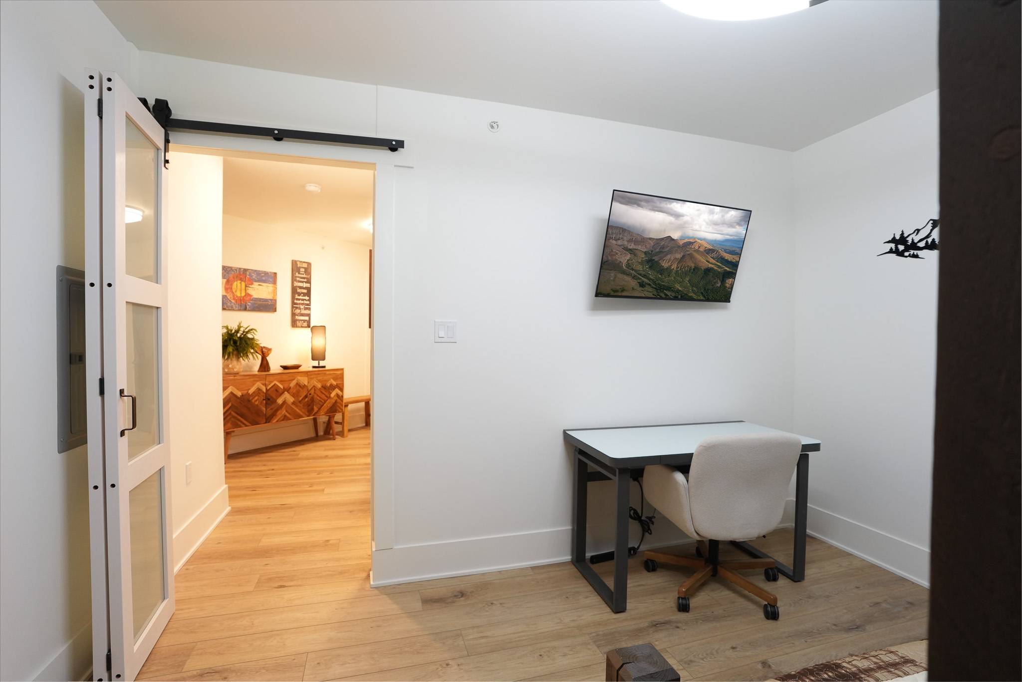 • Den: 1 twin XL over queen bed, smart TV, work desk. (sleeps 3)