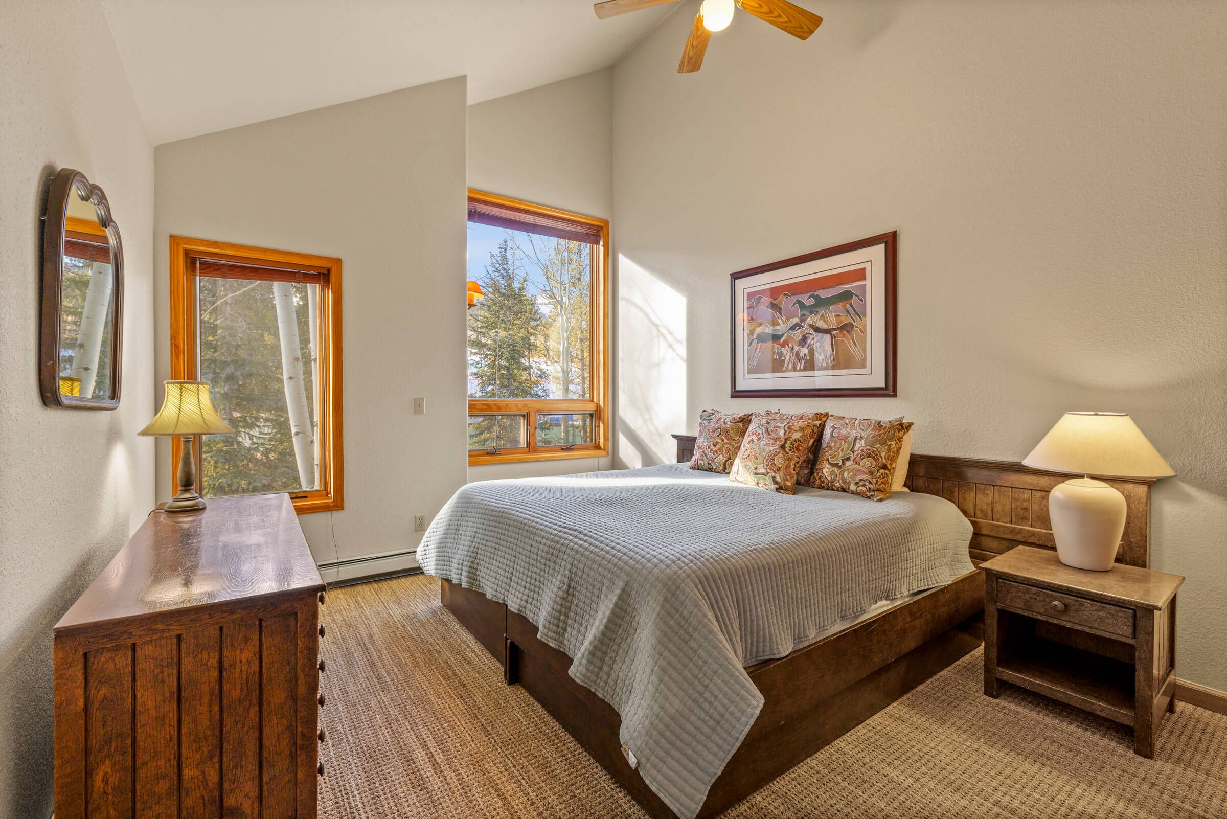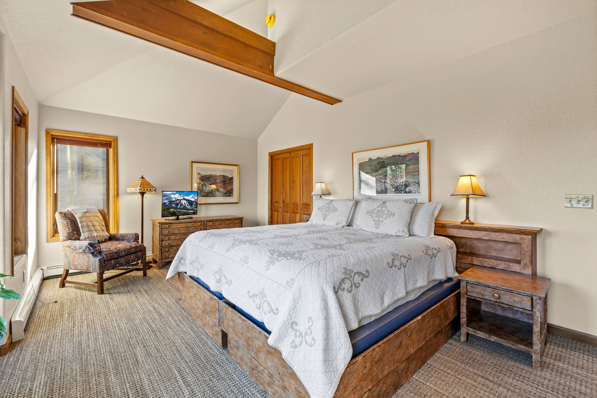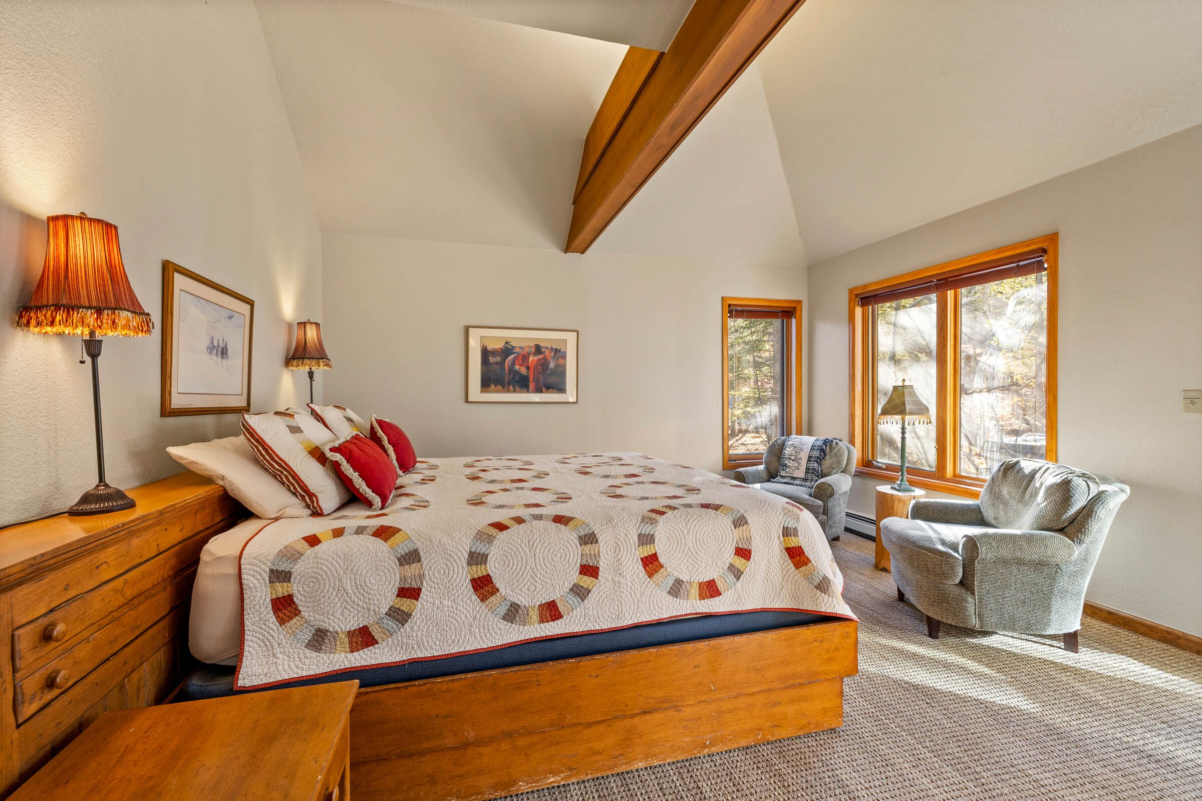 - Suite 2, Sundowner Suite: king bed (can be two extra-long twins upon request), vaulted ceiling, superb views of ski area. (sleeps 2)