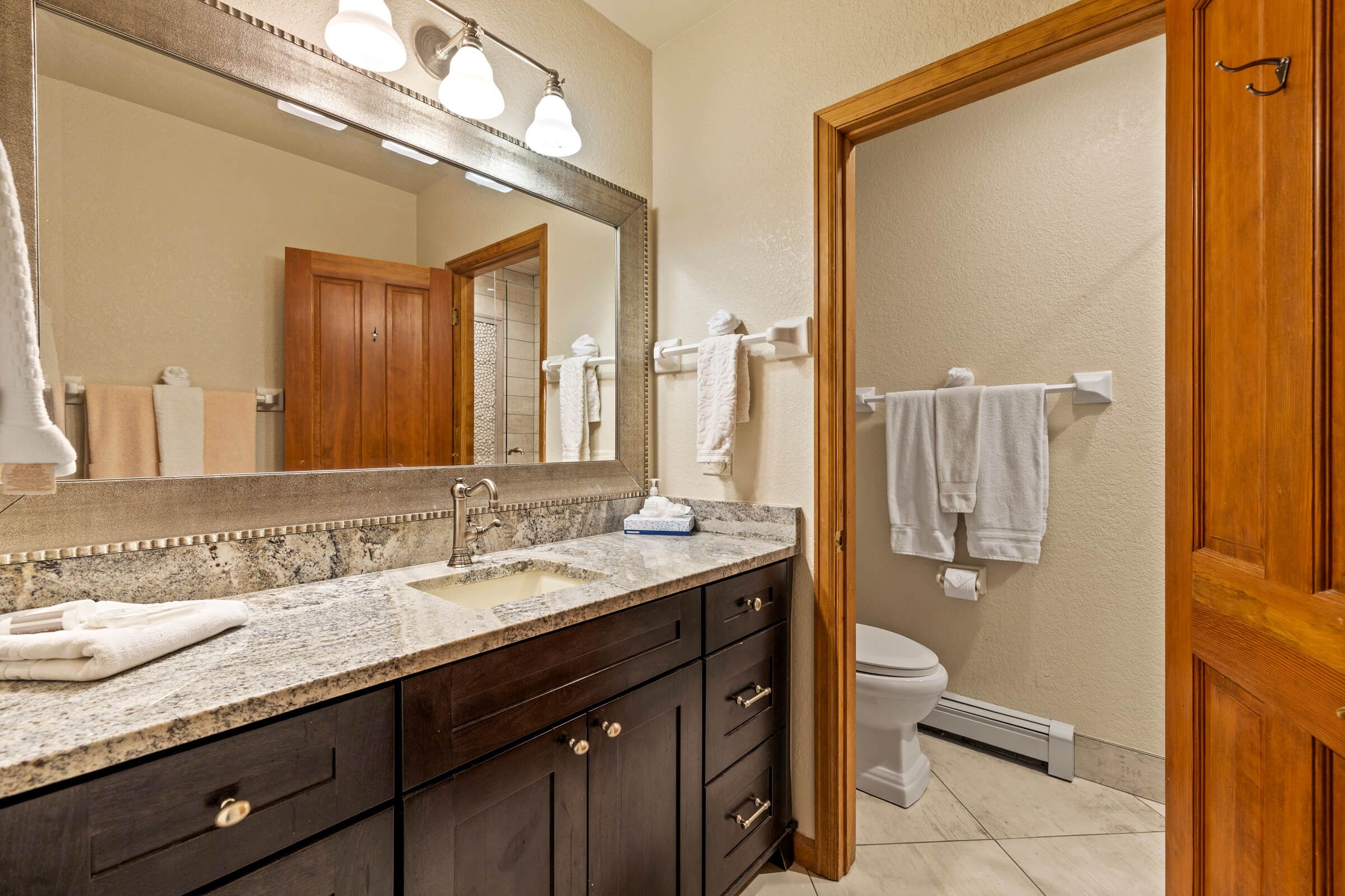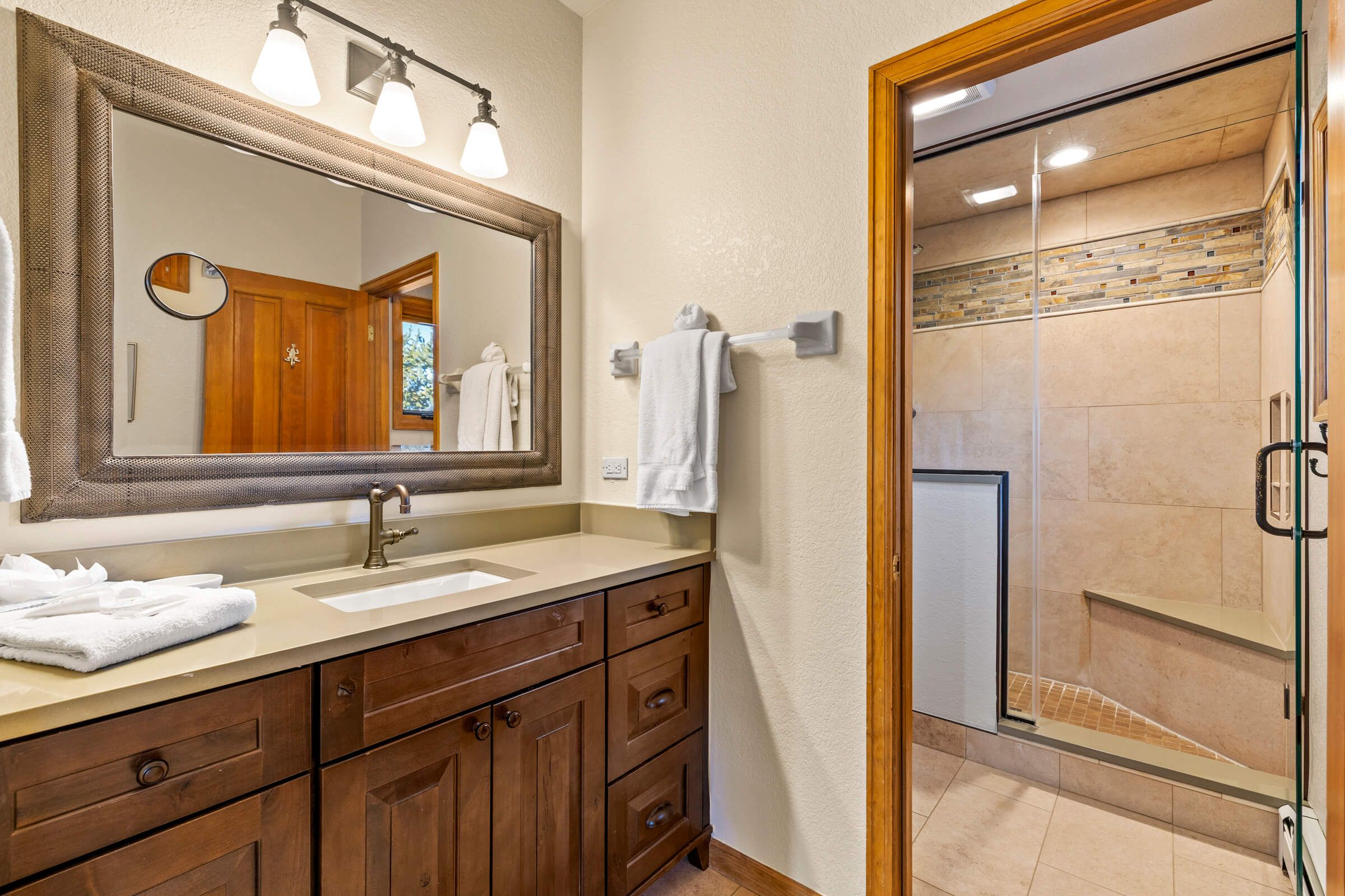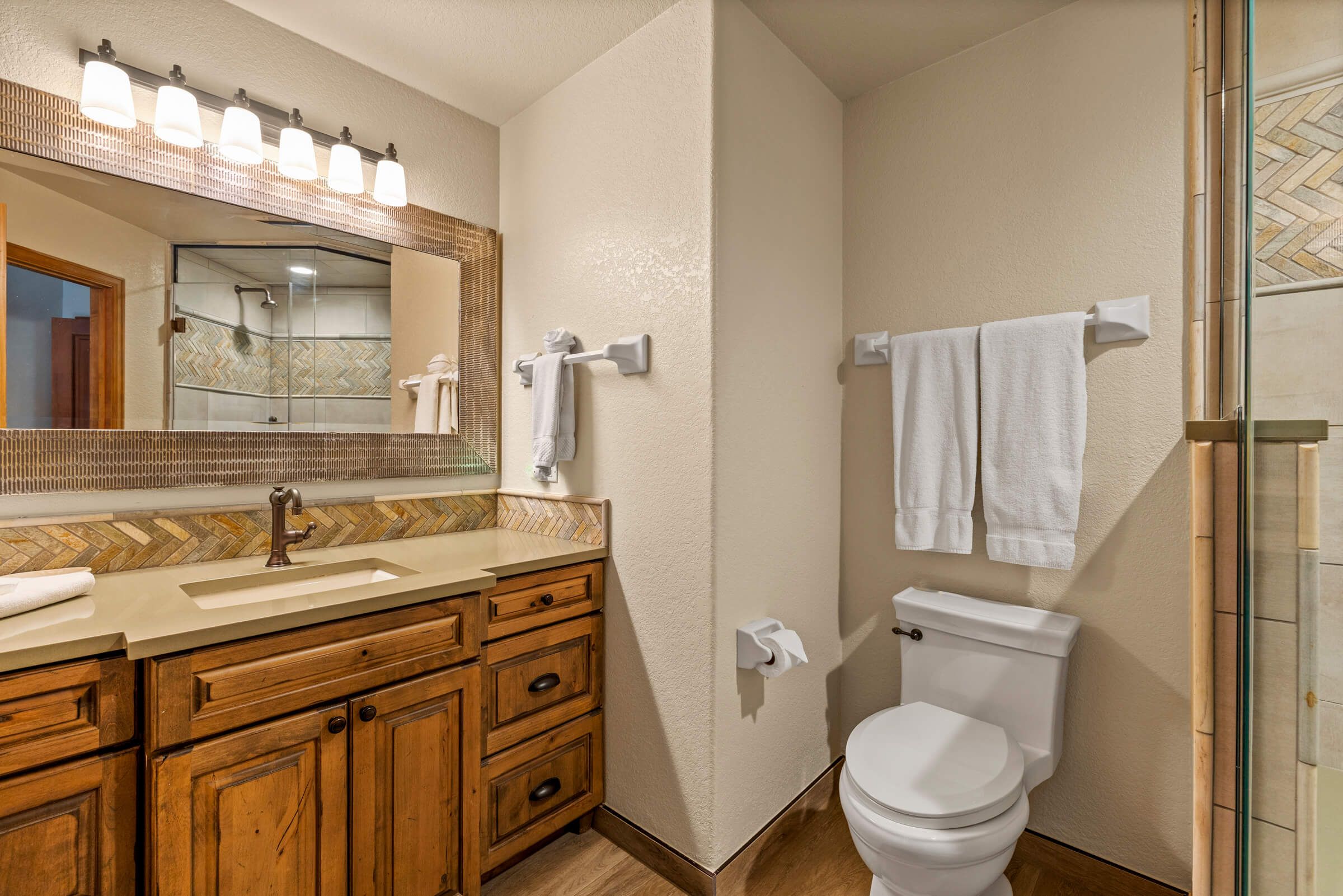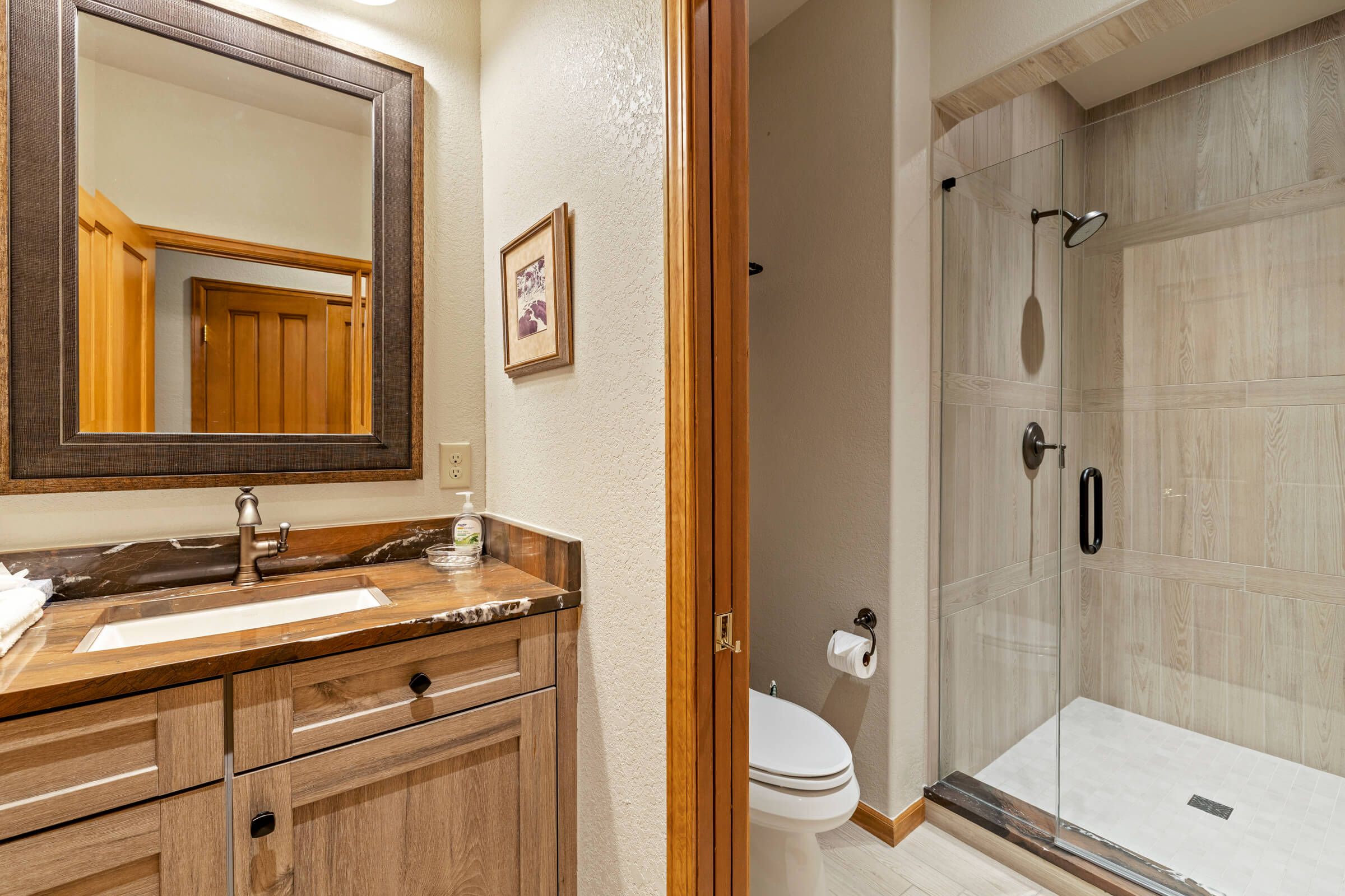 - Springmeier Full Bathroom 3: full bathroom with walk-in tile shower.