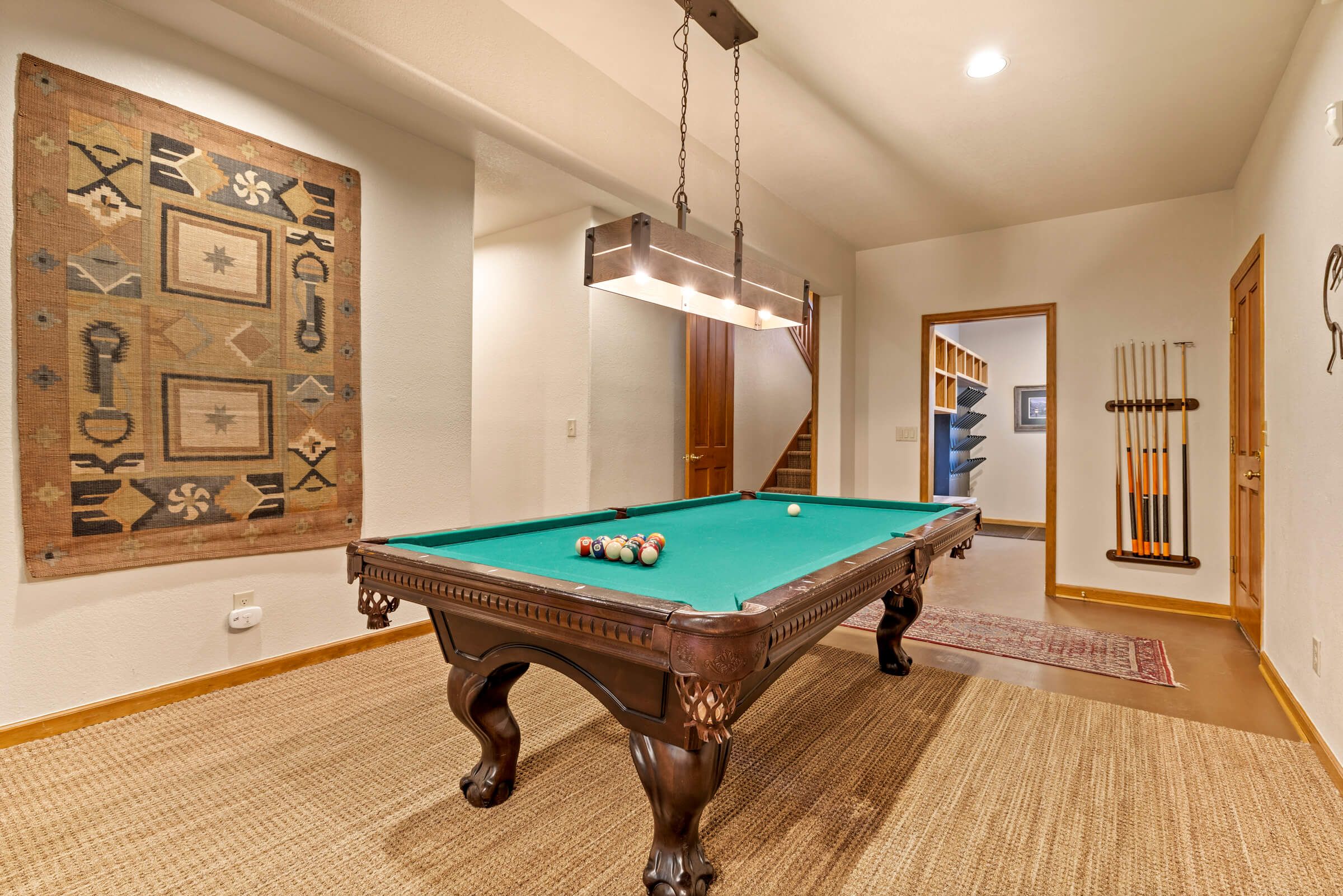 Living Space:Â Enjoy movie nights with the cozy sectional sofa, Smart TV (with Roku), and fieldstone wood fireplace. Gather around the large coffee table with a puzzle, curl up in the reading nook, or play cards at the upstairs game table. The basement rec-room has a Smart TV (with Roku) and pool table.