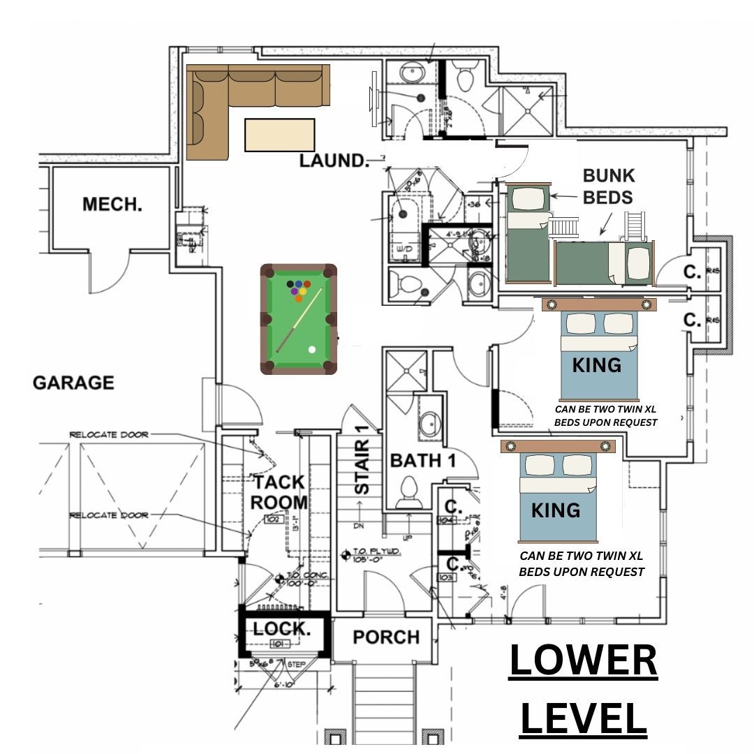 The home has 7.5 bathrooms and 7 bedrooms – with 20 available beds for privacy and flexibility. Bedrooms have their own dedicated bathroom so large groups can enjoy staying together without compromising privacy. Each newly upgraded king size bed can be divided into two twin extra-long beds to accommodate various groups.
