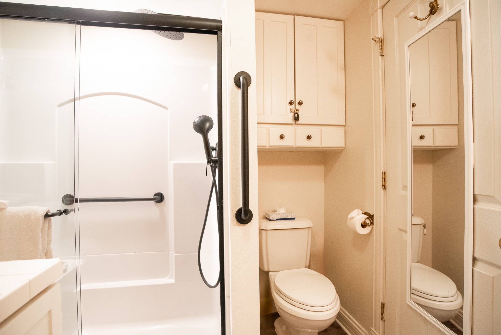 The condo includes a full bathroom with a walk-in shower, adding comfort and convenience to your stay. While there are no onsite laundry facilities, the thoughtful layout and cozy “carriage house” style make this a great choice for couples, small families, or friends looking to stay right in the heart of Breck.