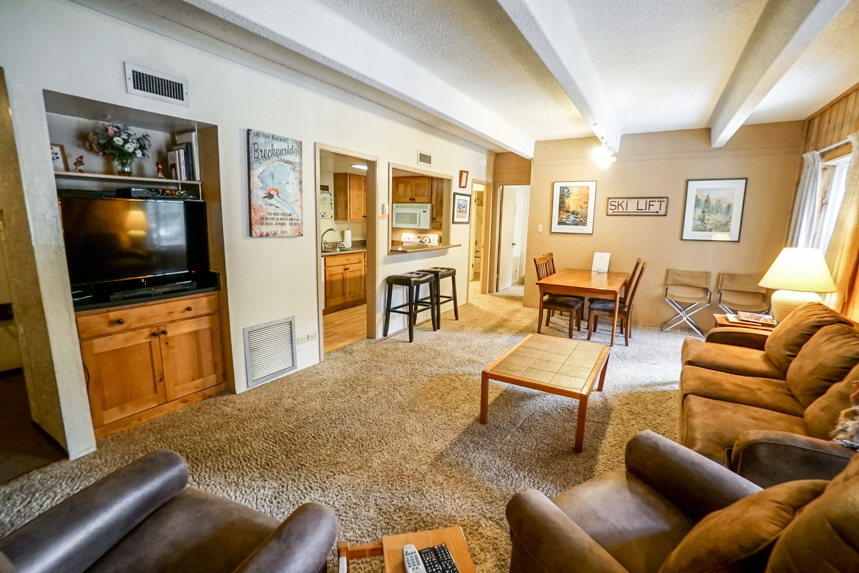 Now here’s a cozy condo that’s perfect for a close-in ski getaway! Located in Breckenridge’s Four Seasons neighborhood, you’re just a two-block stroll to the Quicksilver lift and Maggie Pond area. Downtown is an easy walk or ride on the Breckenridge free shuttle. Throw in seasonal access to the Columbine Pool, Hot Tubs and Clubhouse, and your group will be thrilled that you booked it!Â