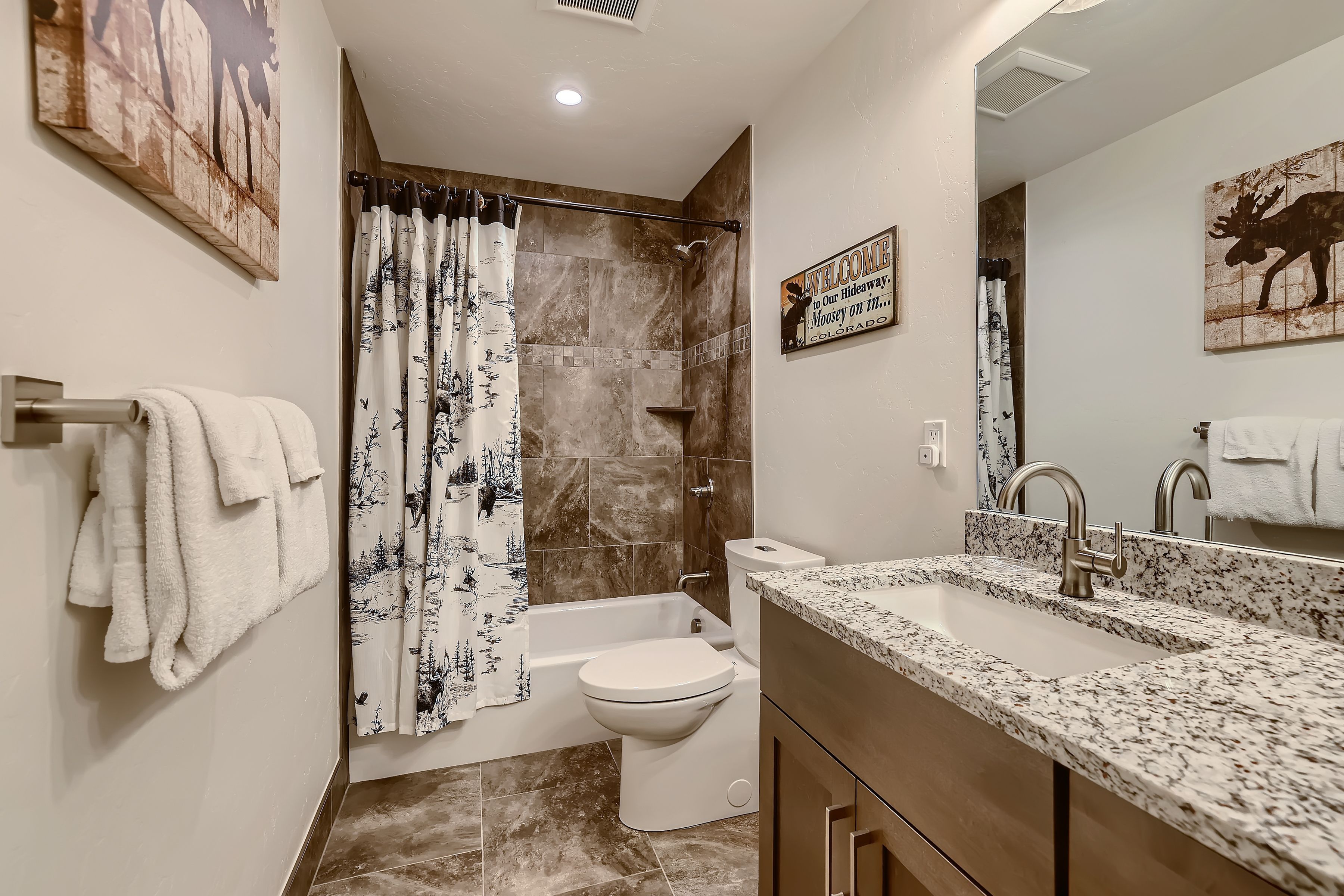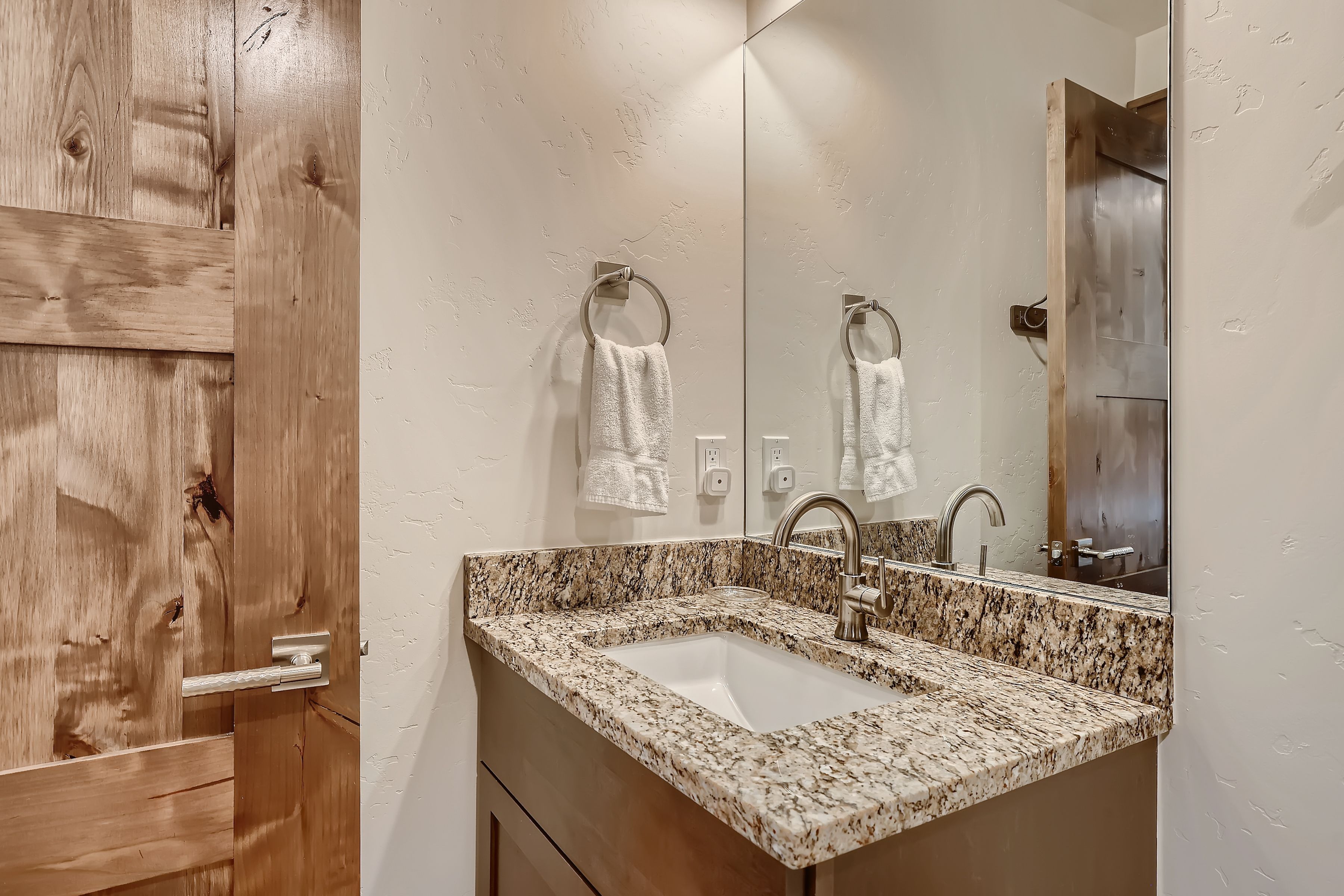 Downstairs, there’s a family room with another gas fireplace, large flat-screen TV, and a large corner couch; it’s the perfect place for the kids to hang out and enjoy their favorite shows. Outside the family room, the patio features your own private hot tub and more seating to take in the views. Other amenities include a full-size washer/dryer, complimentary Wi-Fi, a, and parking for four vehicles. Plus, every Summit Mountain Rentals property comes stocked with plenty of linens, towels and hotel-like toiletries, and is professionally cleaned and inspected before each arrival. Our helpful staff is also available 24 hours a day to ensure you have everything you need to make your stay with us an unforgettable experience.