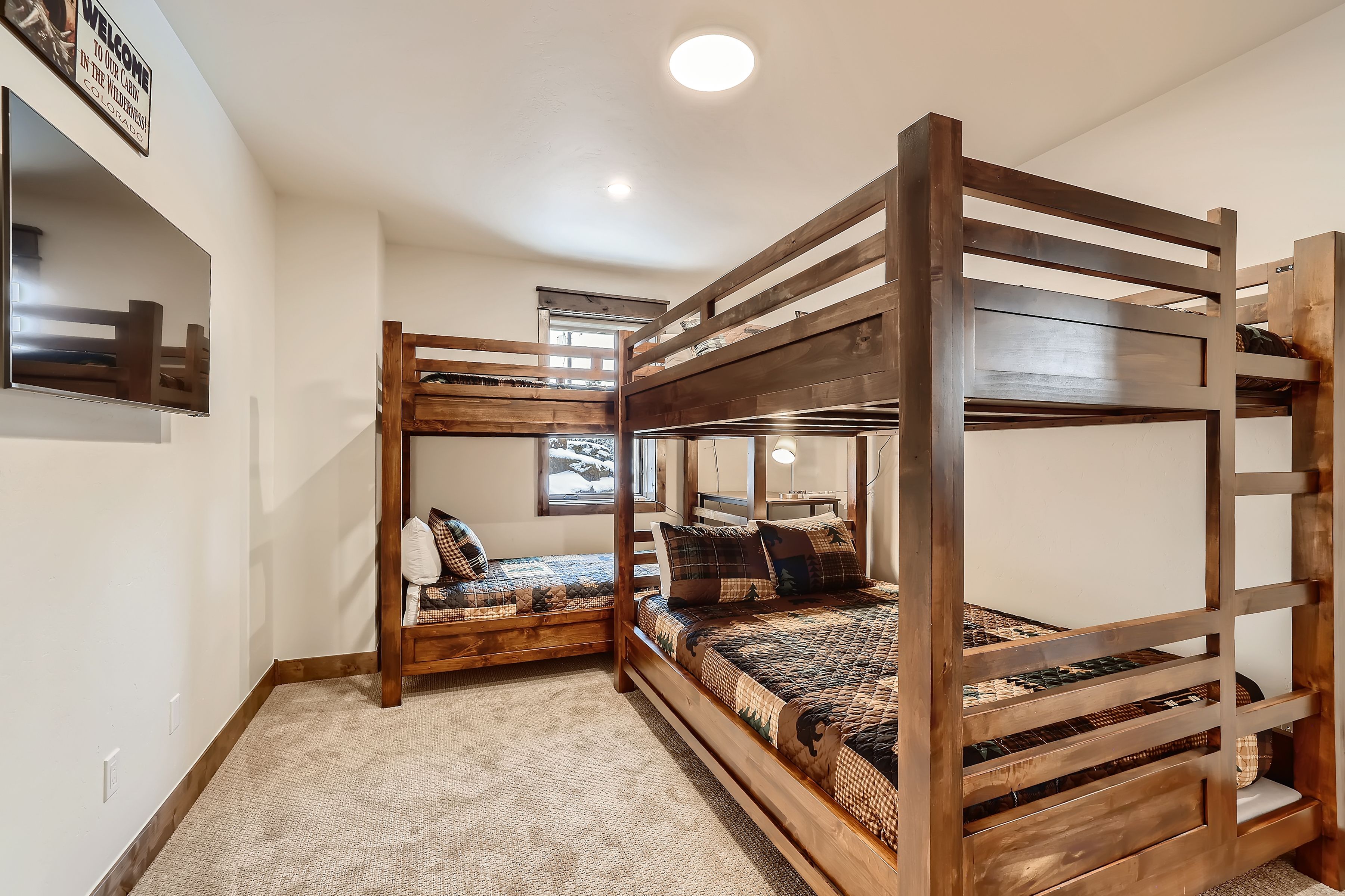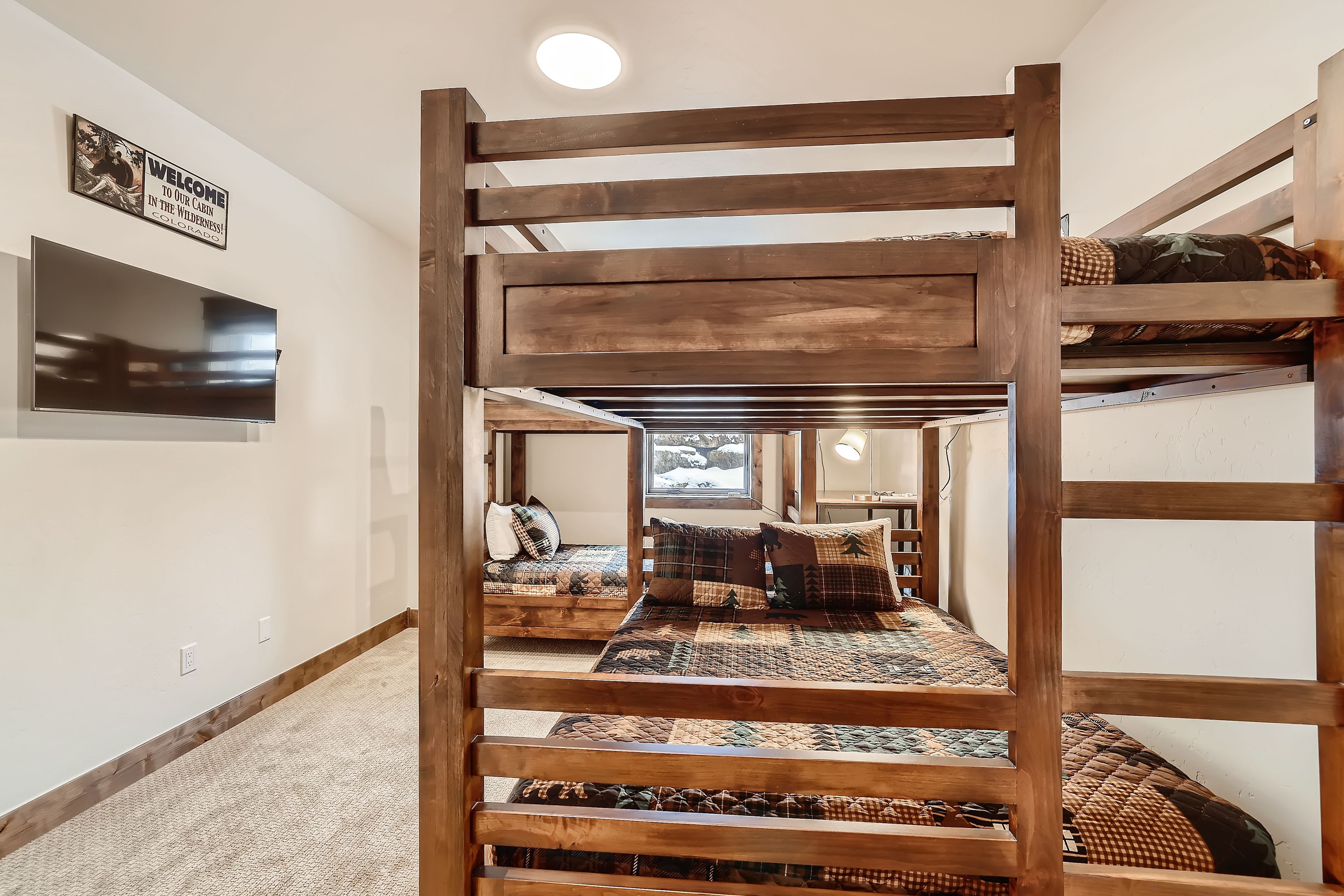 - Bunk room: queen-over-queen bunk bed, twin-over-twin bunk bed, flat-screen TV, private door to hall bathroom. (sleeps 6)