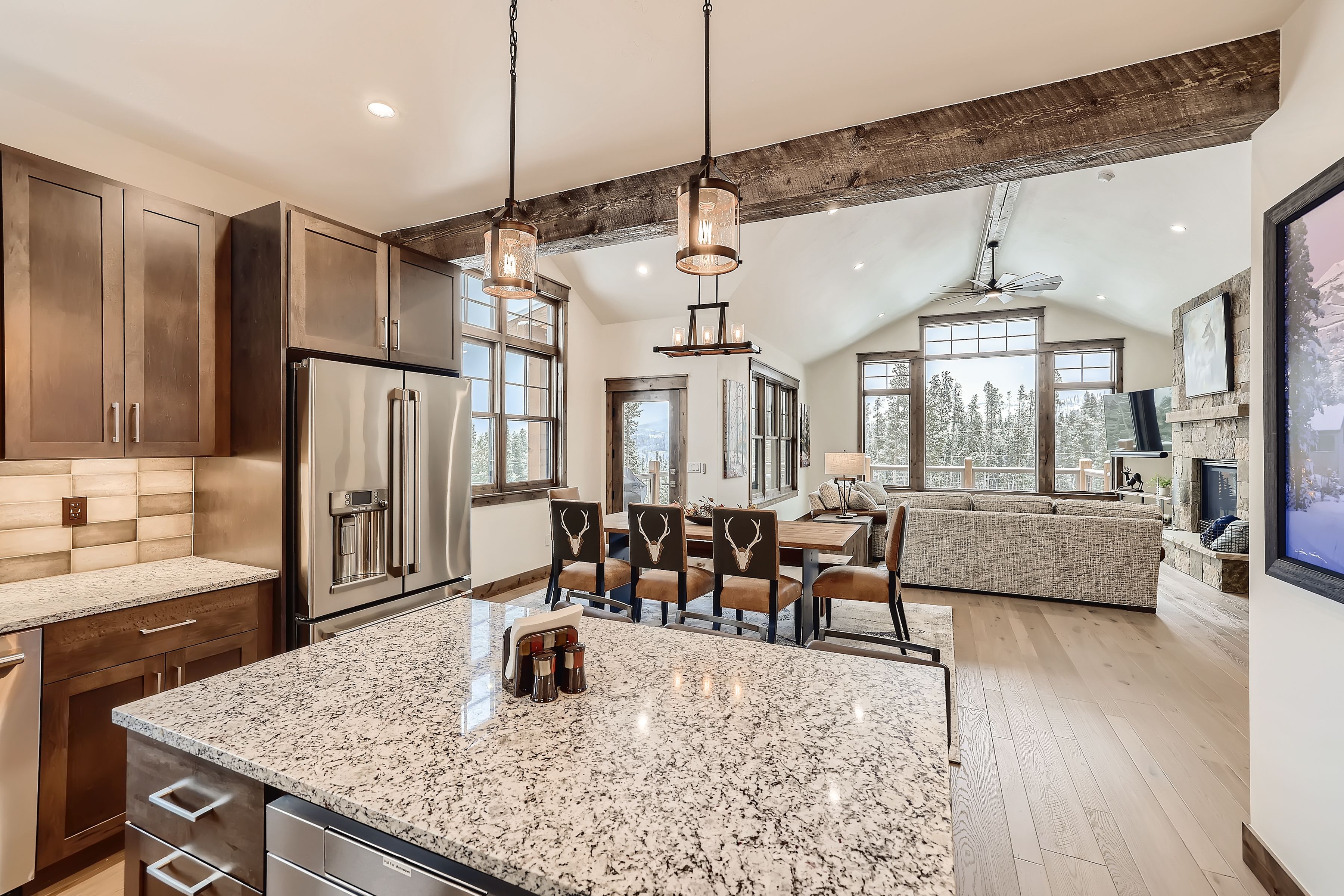 What a great home! Just look at all the fantastic touches throughout – it’s the perfect blend of contemporary and tradition mountain styles. With views of the slopes of Breckenridge Ski Resort and the Tenmile Range, you’ll love this unique mountain getaway. And with a shuttle bus stop just a four-minute stroll away, it’s easy to access the slopes and downtown Breck. Your group will love this place!