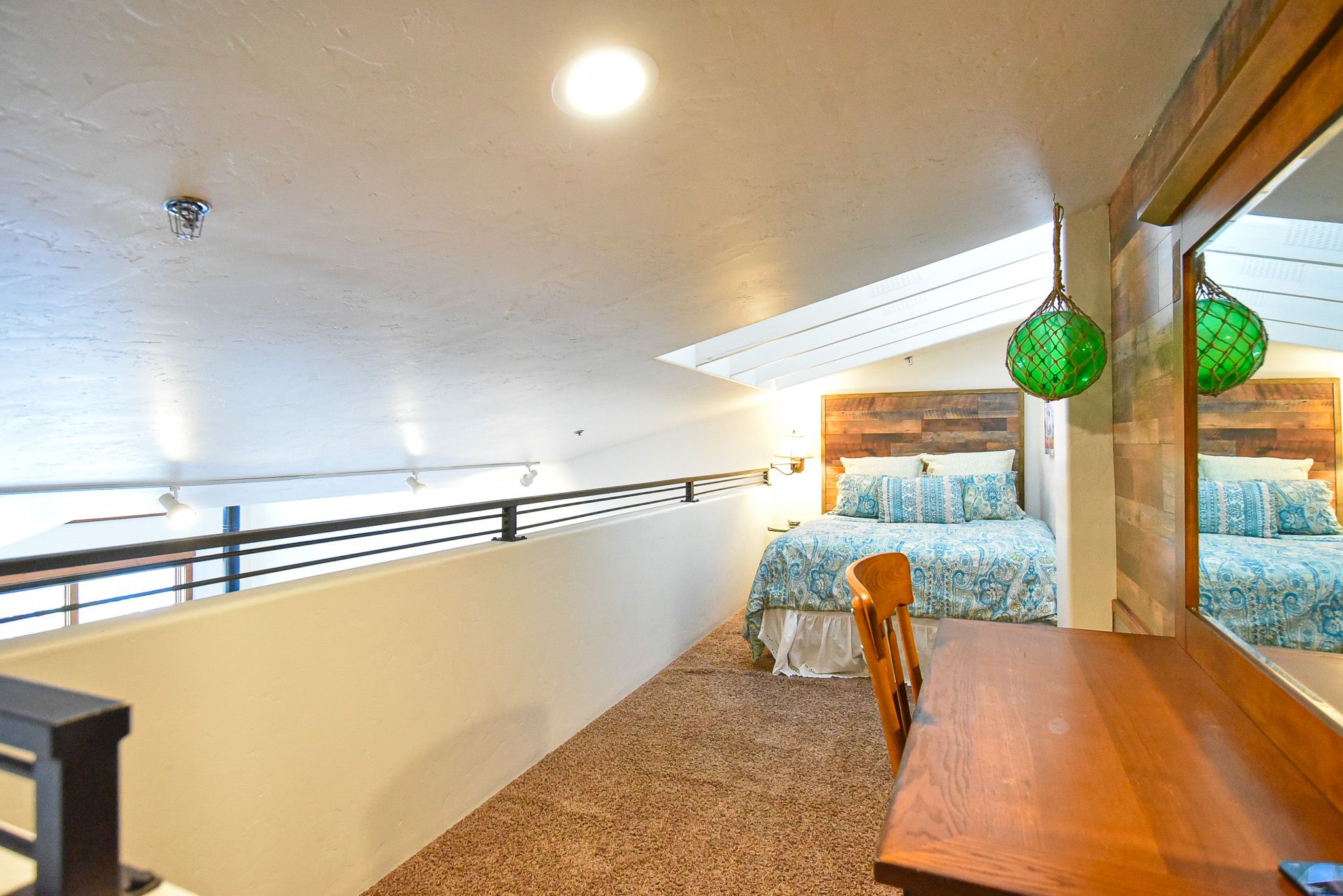 The sleeping arrangements are ideal for comfort and convenience. The main-level bedroom offers a plush king bed and smart TV, while the upstairs loft includes full bed and a dedicated desk/workstation—perfect for guests balancing mountain play with remote work. Please note that the condo includes one covered, assigned parking space, which cannot accommodate large or oversized vehicles.
