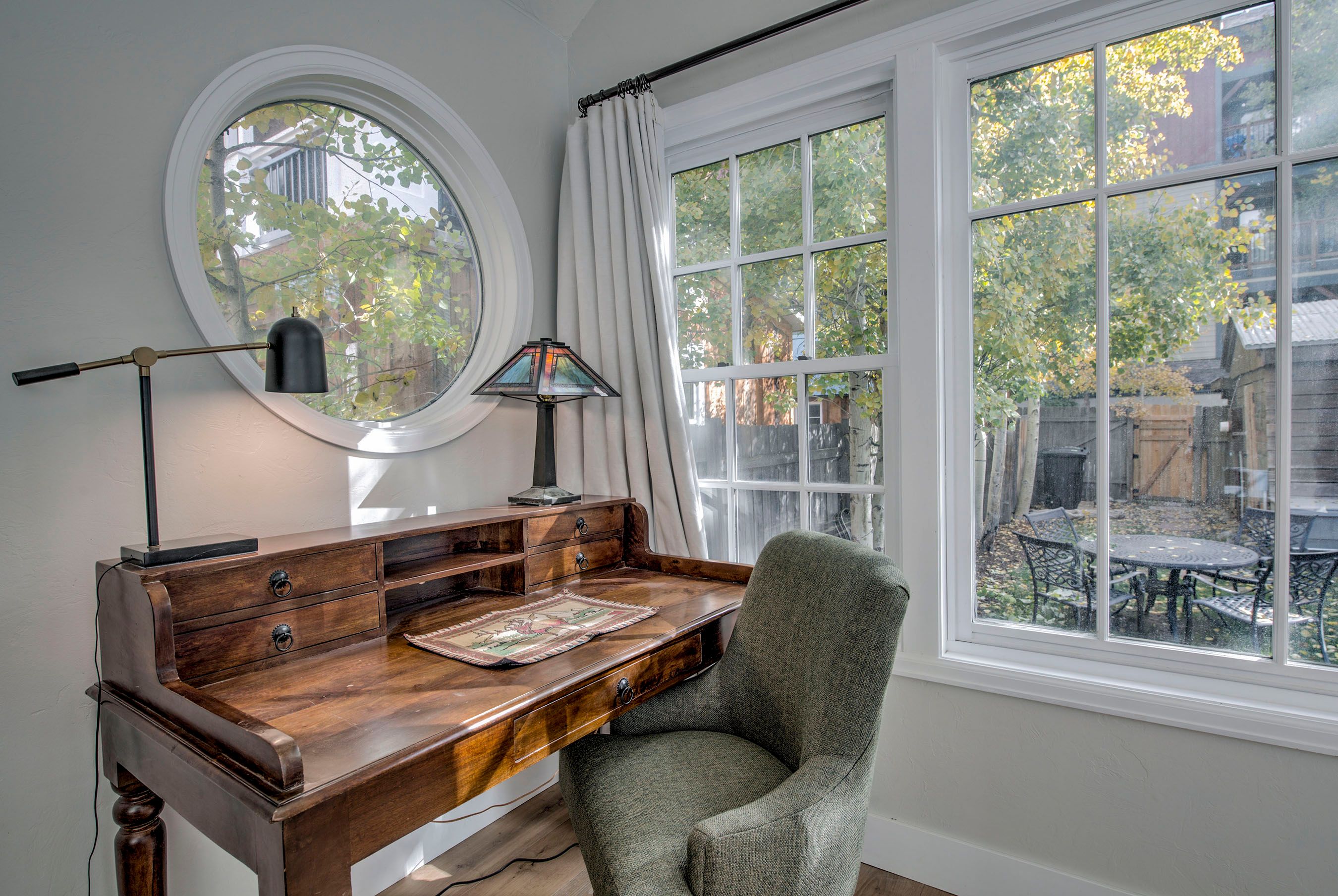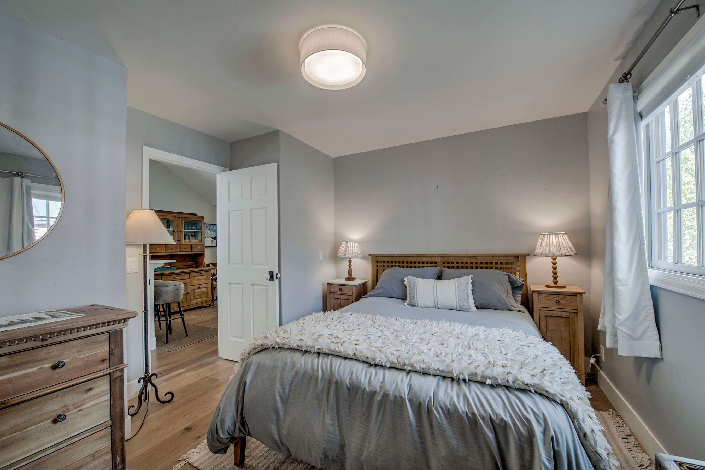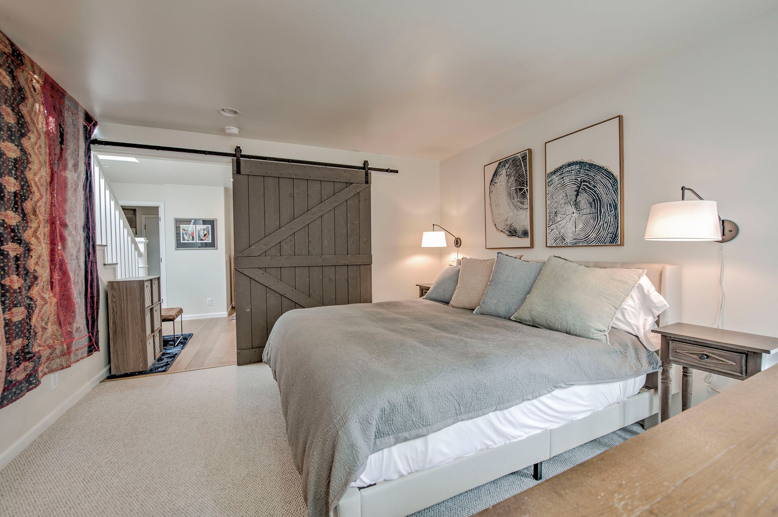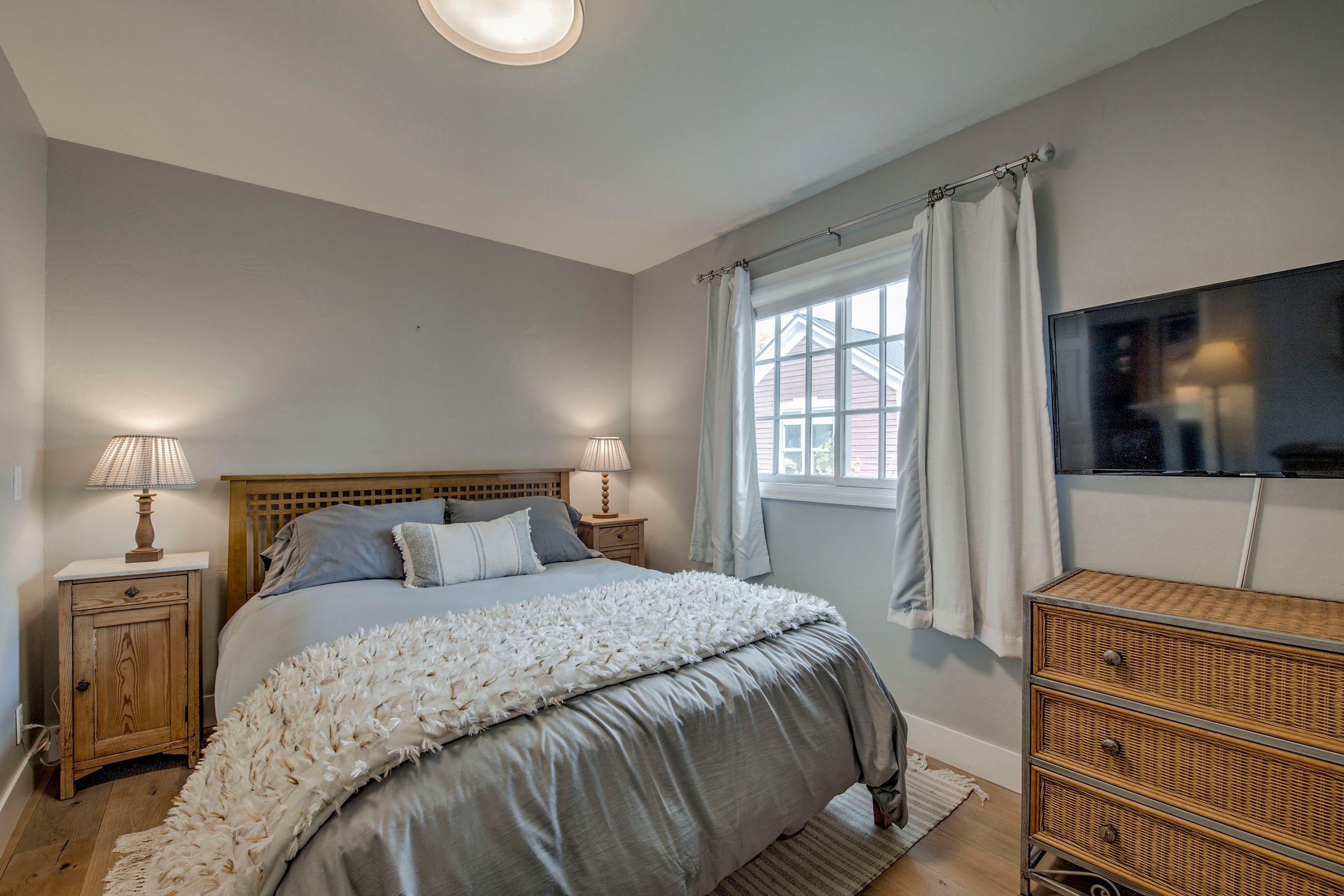 • Queen Bedroom: Queen Bed, Smart TV, Desk/Workstation. (Sleeps 2)