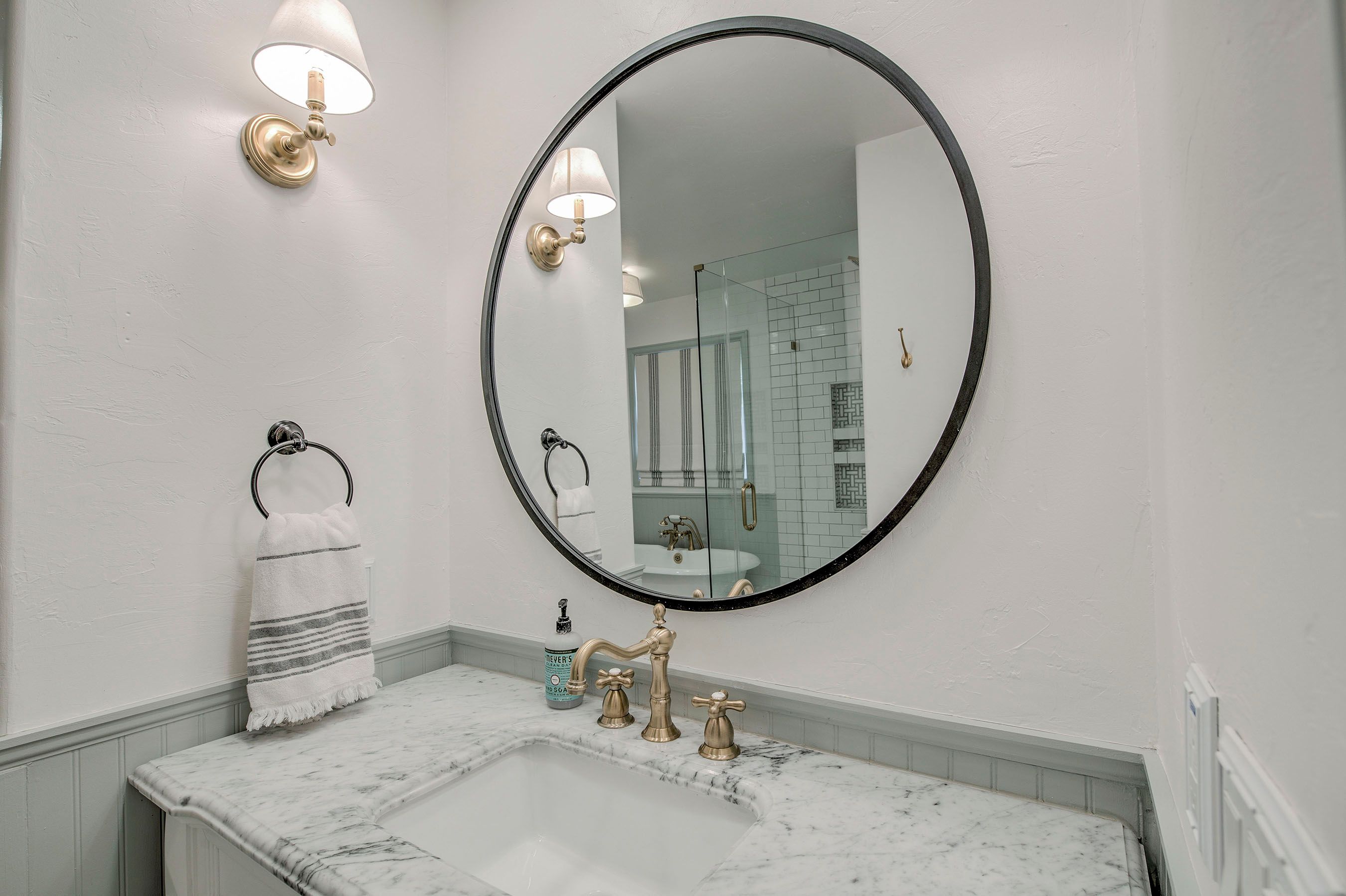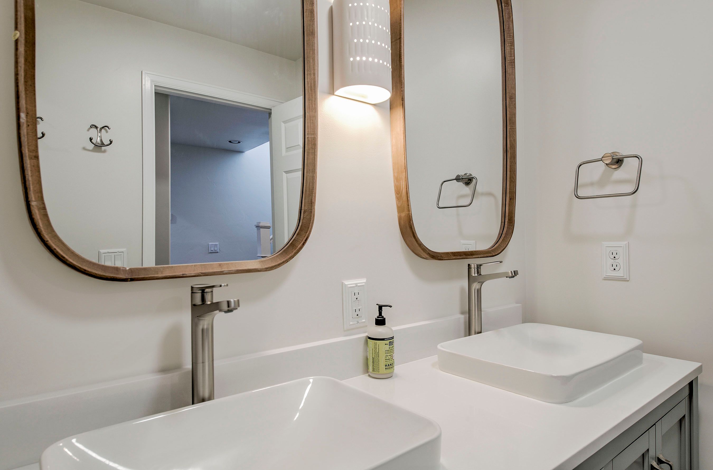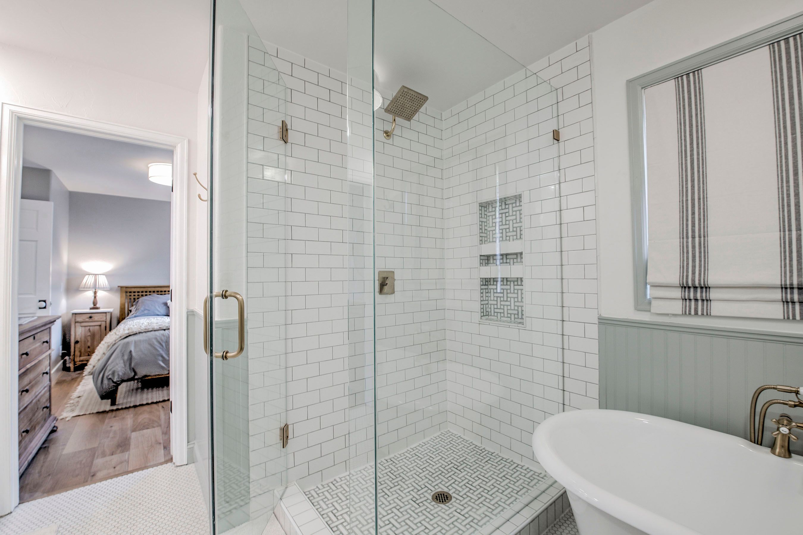 • Hallway Bathroom: Full Bathroom w/ Dual Vanities & Walk-in Tile Shower.