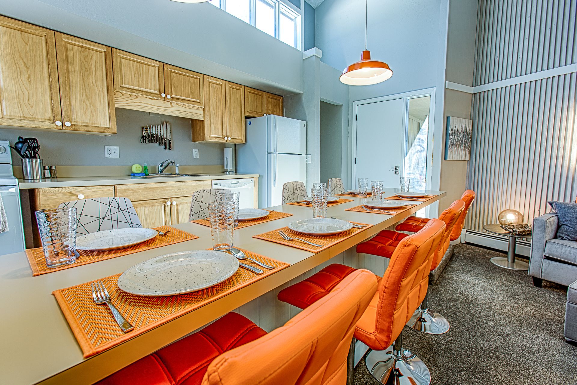 Nestled in the woods on Ski Hill Road, Gold Camp Gold Pan Condo is just minutes from the Peak 8 base area and Historic Downtown Breckenridge on the free shuttle route. It’s been nicely updated with chic, modern furniture and lots of nice touches. You and your group will love it!