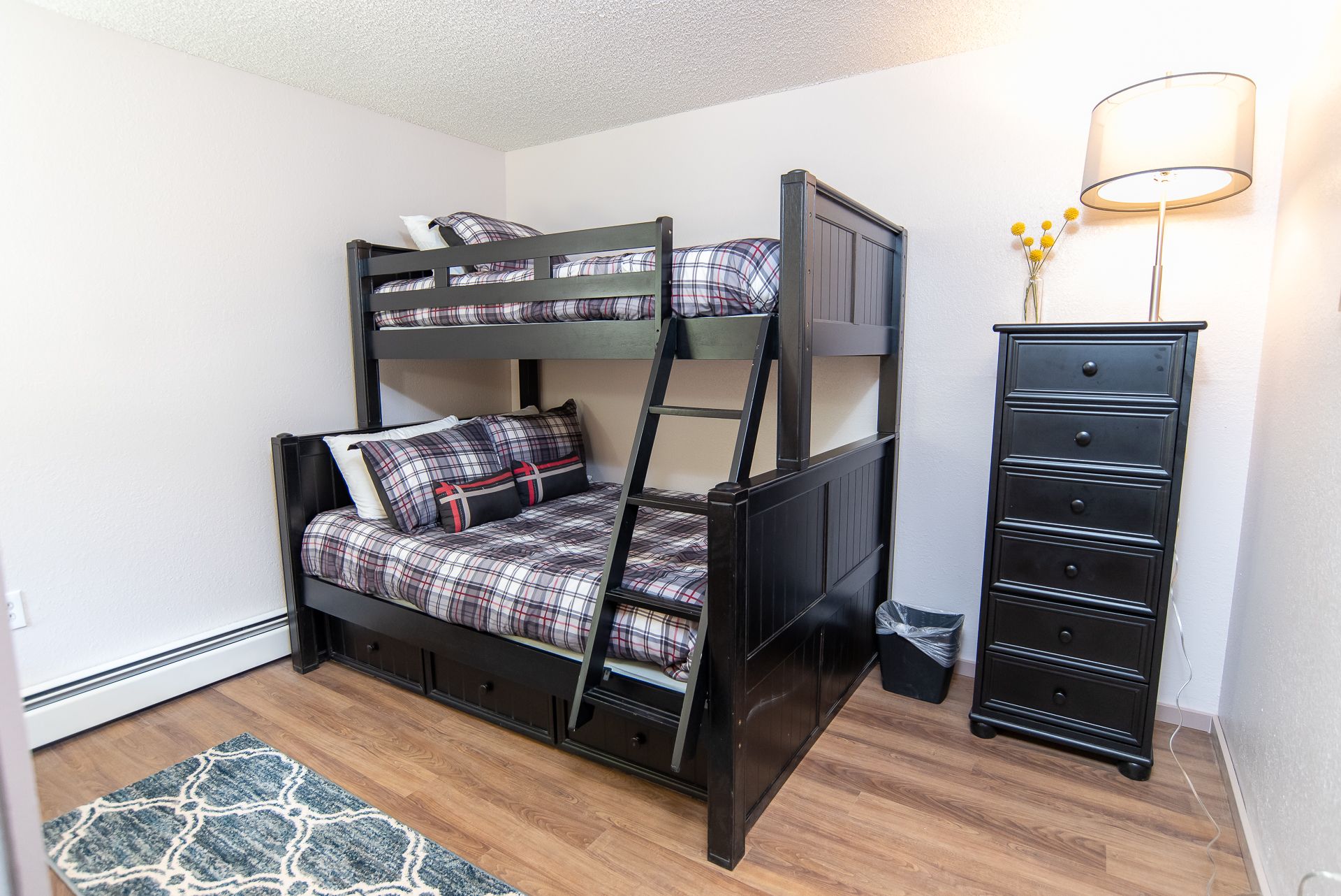 This 2-bedroom, 1-bathroom condo is clean and comfortable, and it has everything a group of up to seven needs for a great stay in the mountains. The fully equipped kitchen overlooks the living space with new counters and stainless-steel appliances. Whip up a home-cooked meal one night, then check out Breck’s vibrant restaurant scene the next night! The living area has comfy seating on the leather furniture and a flat-screen TV for catching the game or the morning snow report.