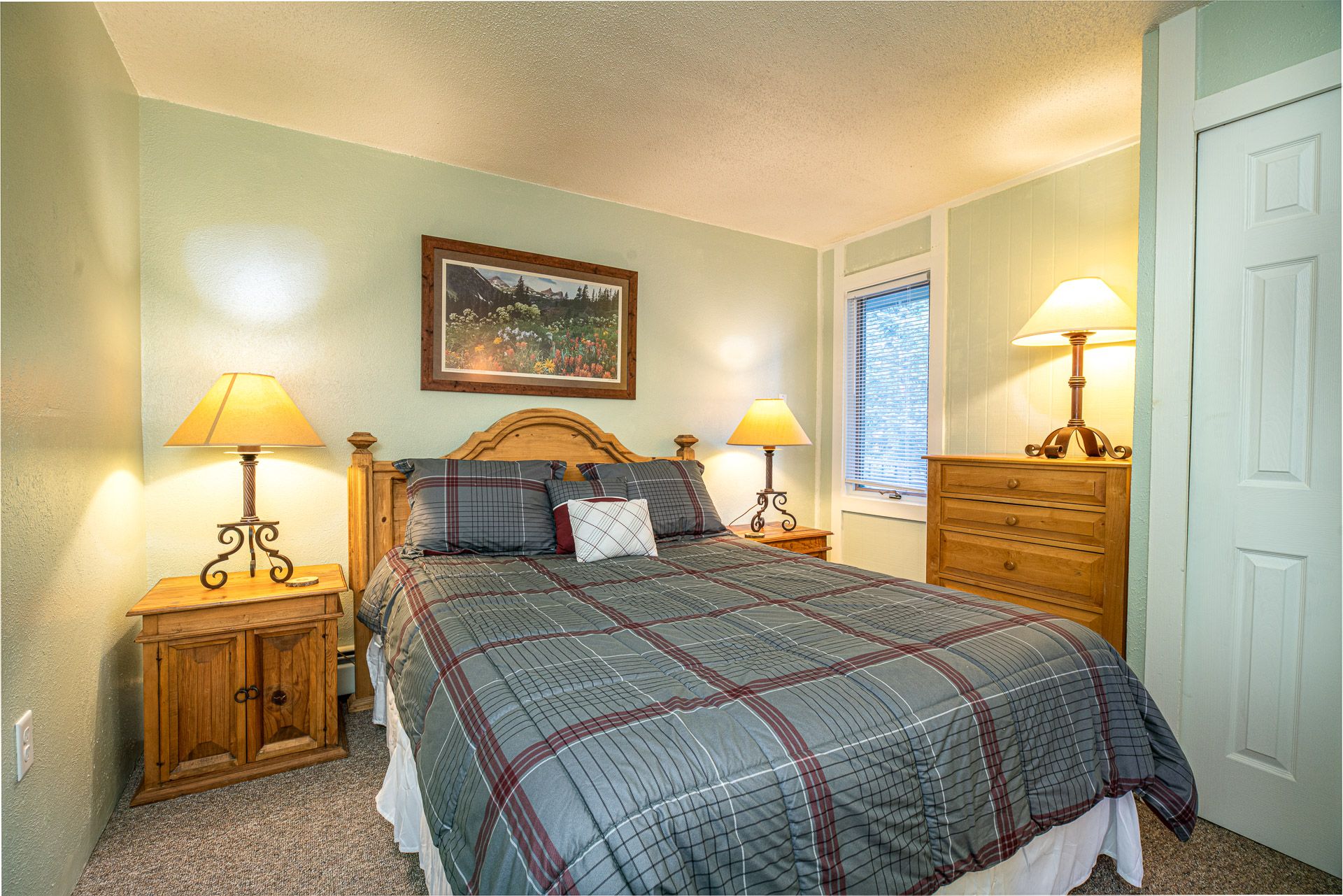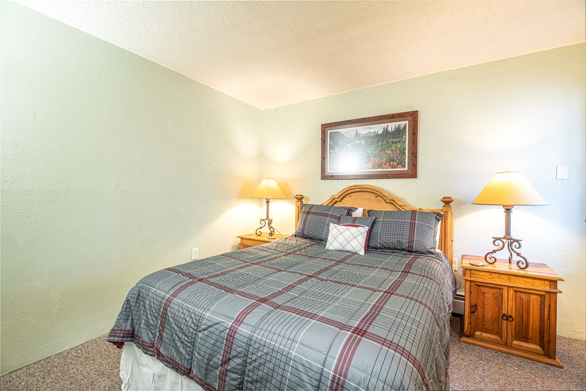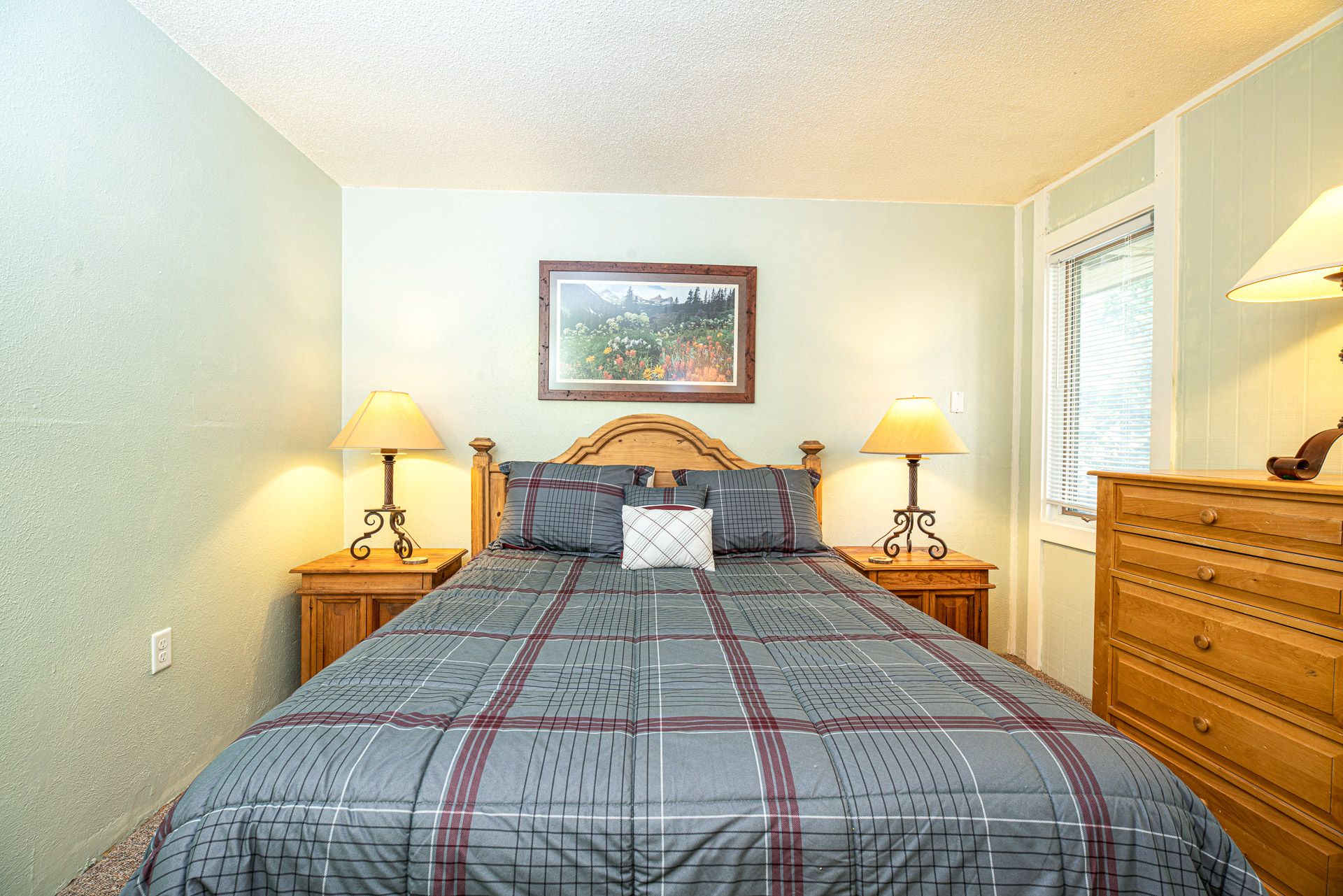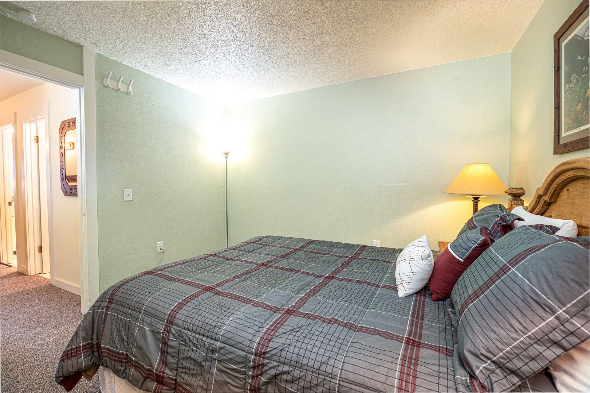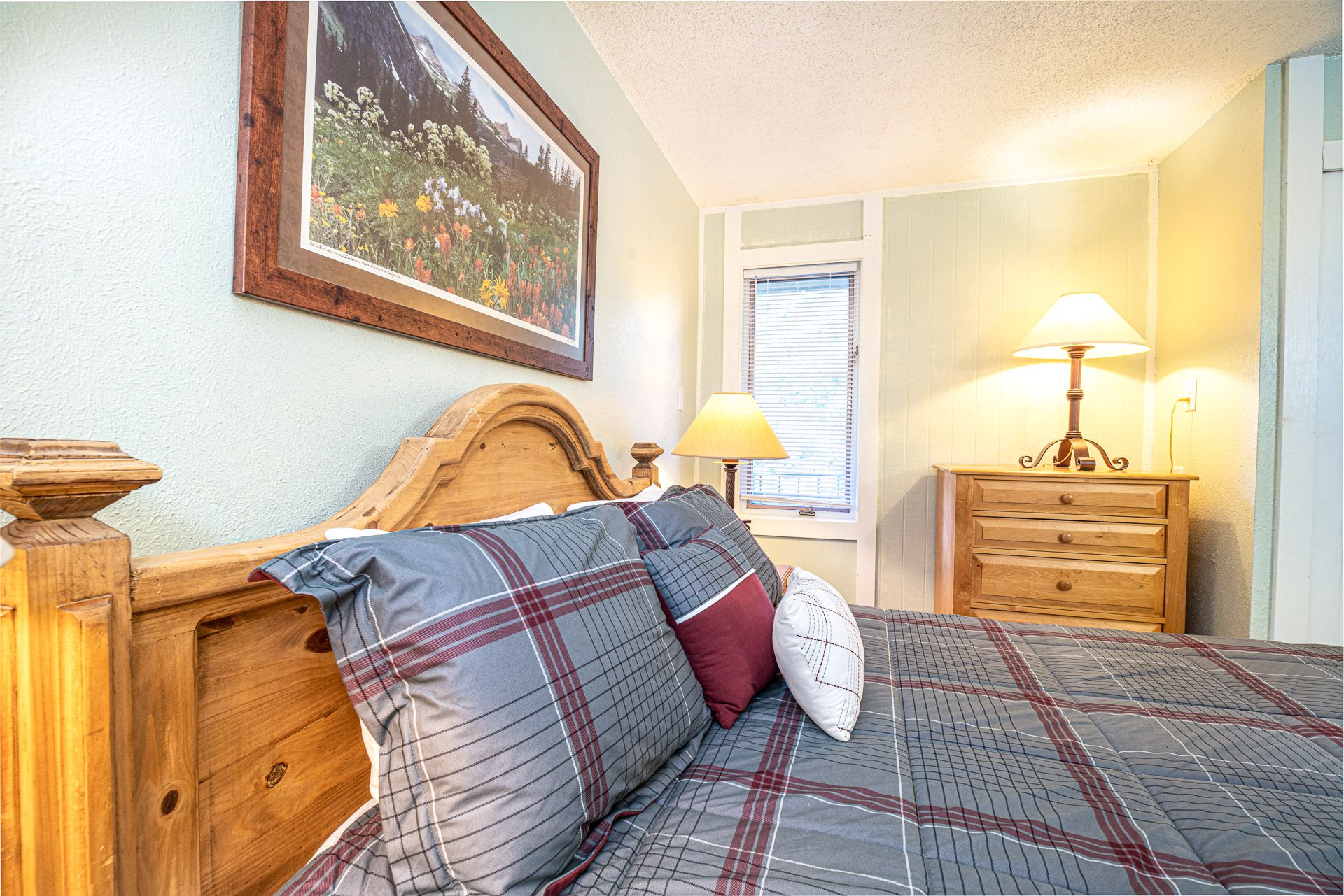 This two-bedroom, two-bathroom deluxe condo is set up to host six guests comfortably; it’s also great for two couples to share! There’s a fully equipped kitchen that overlooks the living space. The flat-screen TV with complimentary cable is perfect for catching the game or watching your favorite shows. There’s also a patio off the living area for kicking back after a big day on the slopes or letting the mountain breeze flow through the condo.Â