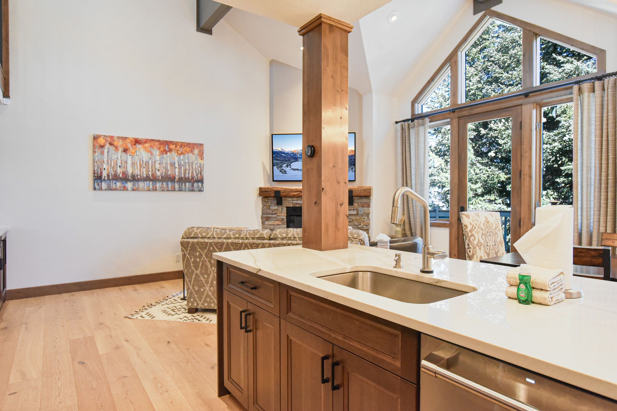 Step inside to discover a spacious, thoughtfully designed layout with vaulted ceilings and large windows that fill the living room with natural light, creating an open and inviting atmosphere. Cozy up by the gas fireplace after a day on the slopes, or gather around the large dining table in the chef’s kitchen, which features brand-new stainless steel appliances, granite countertops, and ample space for preparing meals. With two separate living areas—one on the main floor and another on the lower level—there’s plenty of room for everyone to spread out and relax.