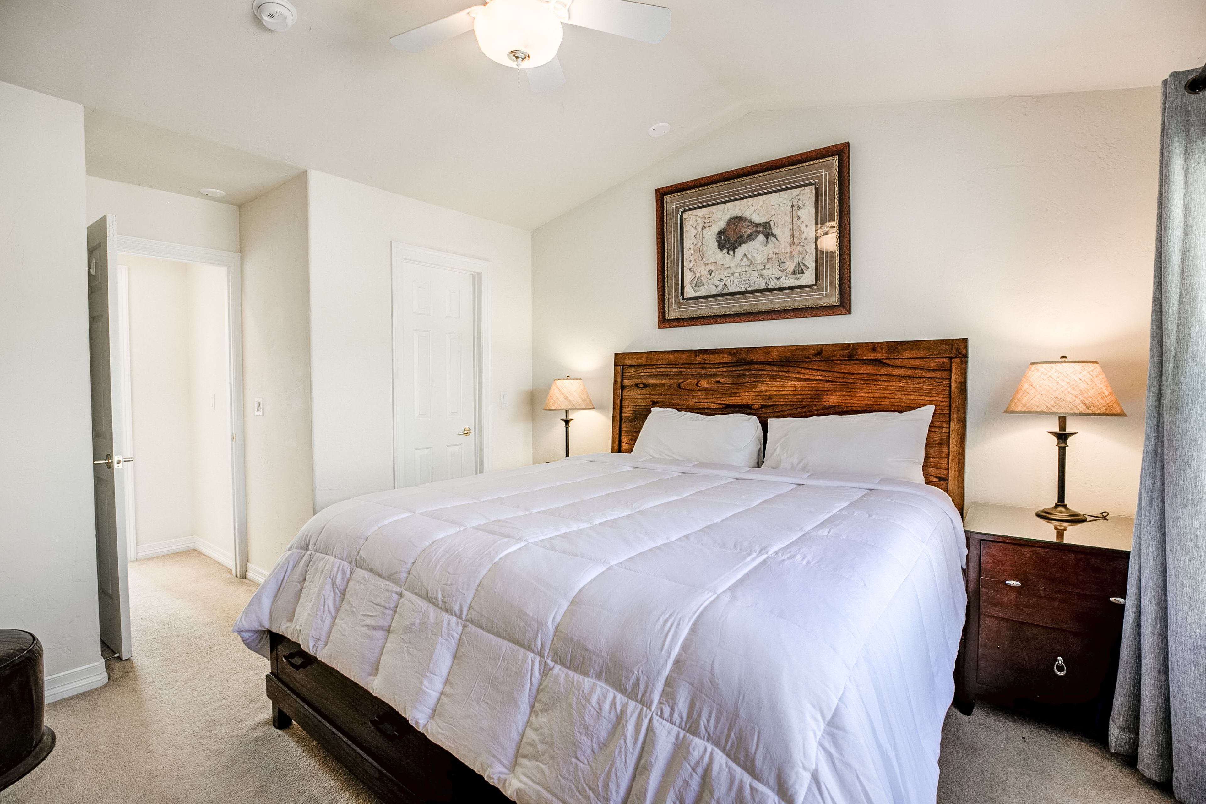 - Master suite: king bed, private bathroom with jetted tub/shower. (sleeps 2)
