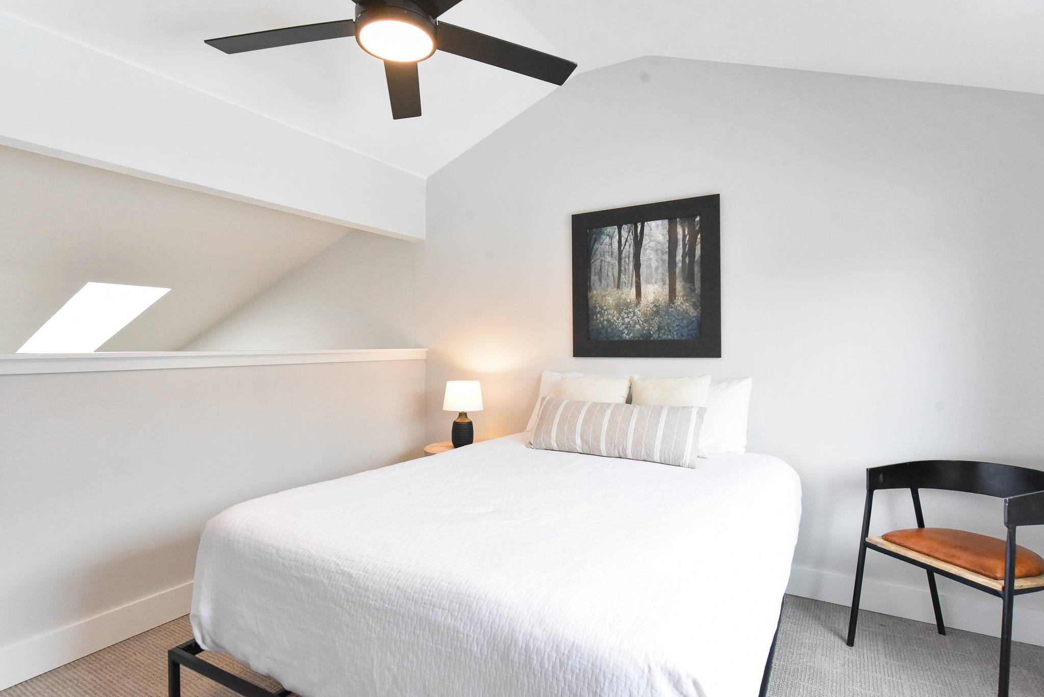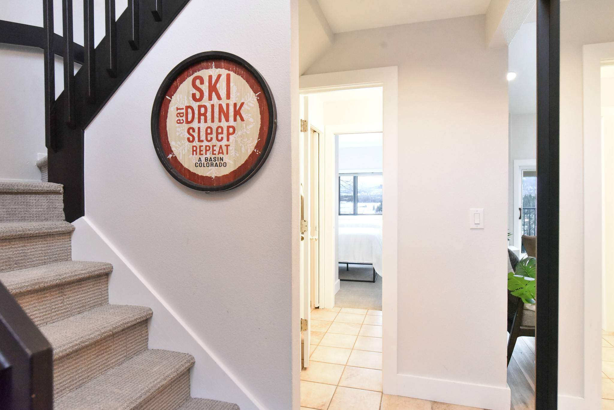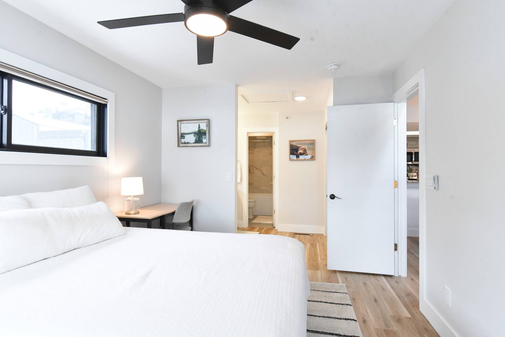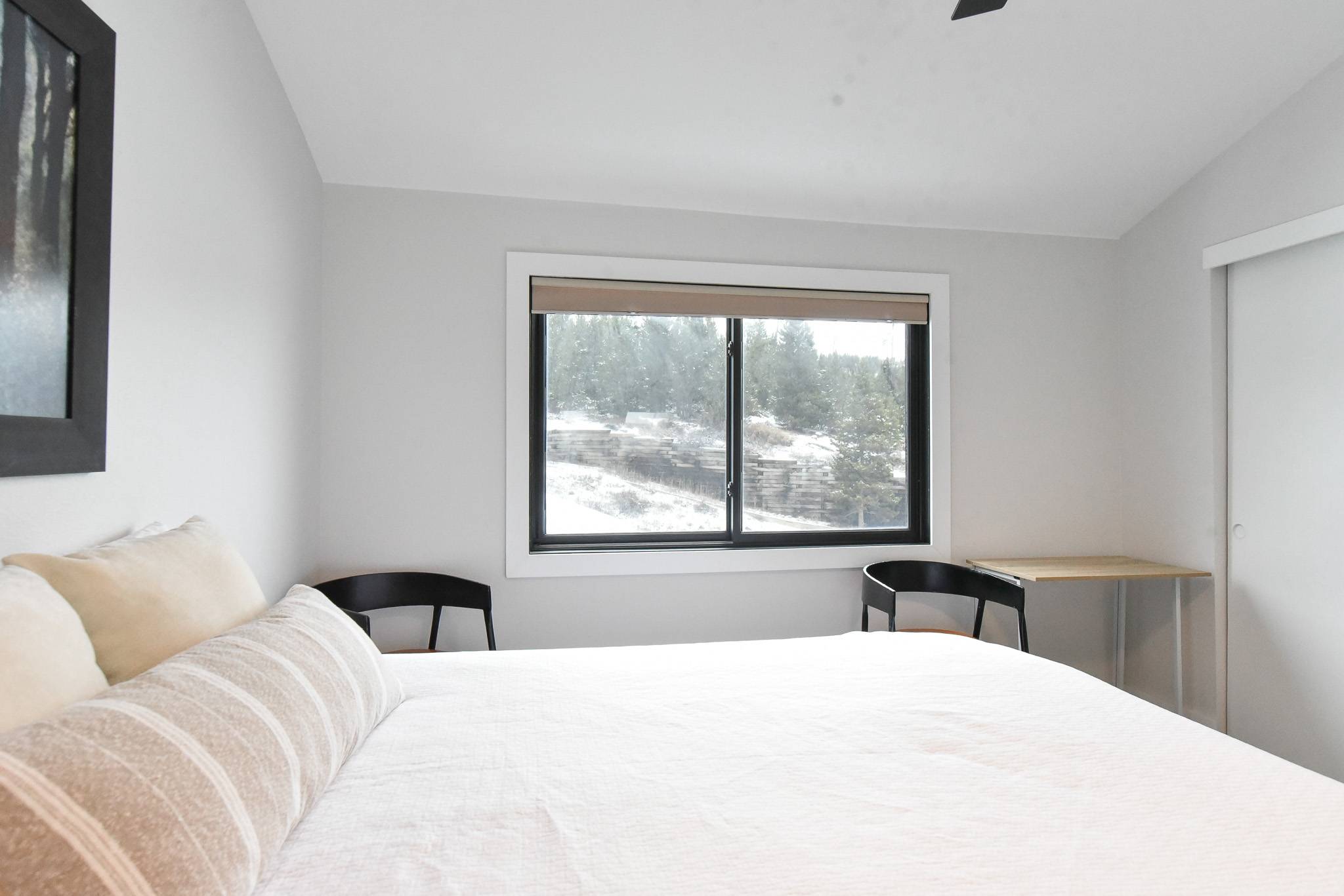 This condo is perfectly suited for families or groups, with dual master suites on the main level. One suite offers a queen bed, ensuite bathroom, direct patio access, and a dedicated desk area for remote work. The second suite includes two queen beds, patio access with lake and mountain views, and a spacious ensuite with dual vanities. Upstairs, the loft provides an additional queen bed and a third full bathroom with a walk-in tiled shower, offering both comfort and privacy for every guest.