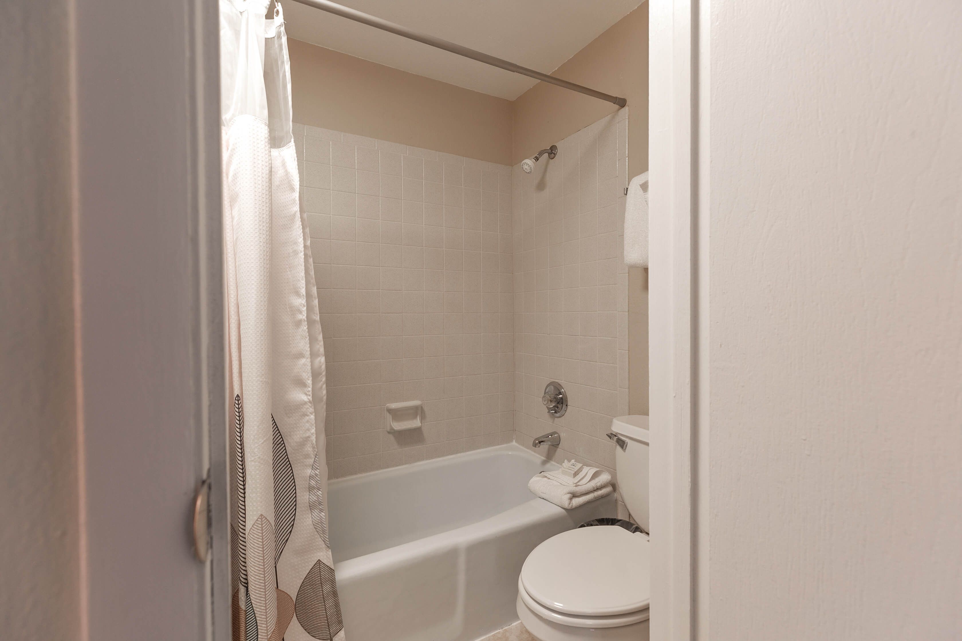 - Bedroom 1: queen bed, rollaway single bed, flat-screen TV, private door to bathroom. (sleeps 3)