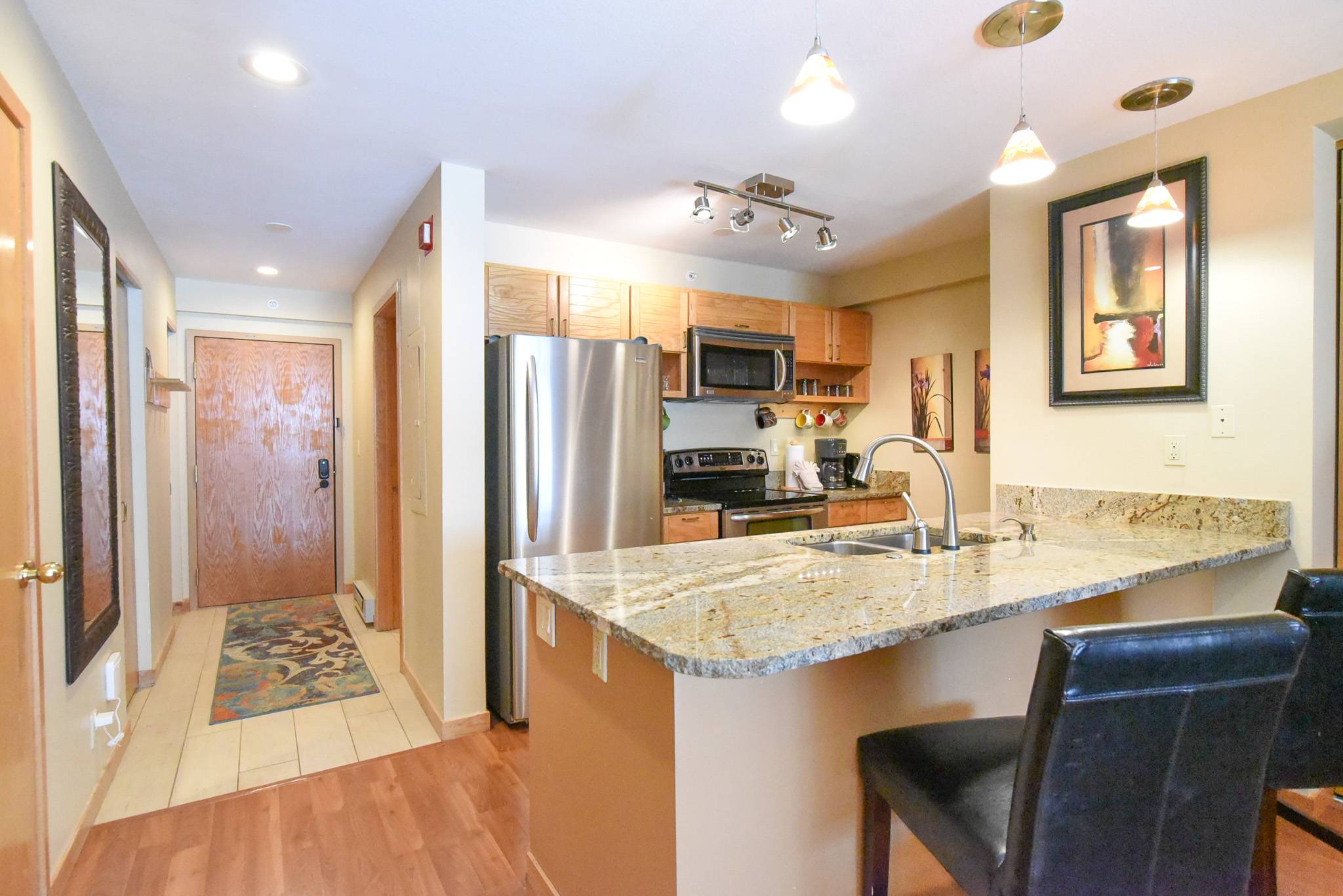 The Liftside complex provides a variety of amenities to make your stay even better. Guests can enjoy the recently updated clubhouse featuring an indoor heated pool and relaxing hot tubs—perfect for unwinding after a day on the slopes. There’s also a central laundry facility with paid machines for guest use, as well as parking for one vehicle in either the covered garage or outdoor lot (first come, first served).