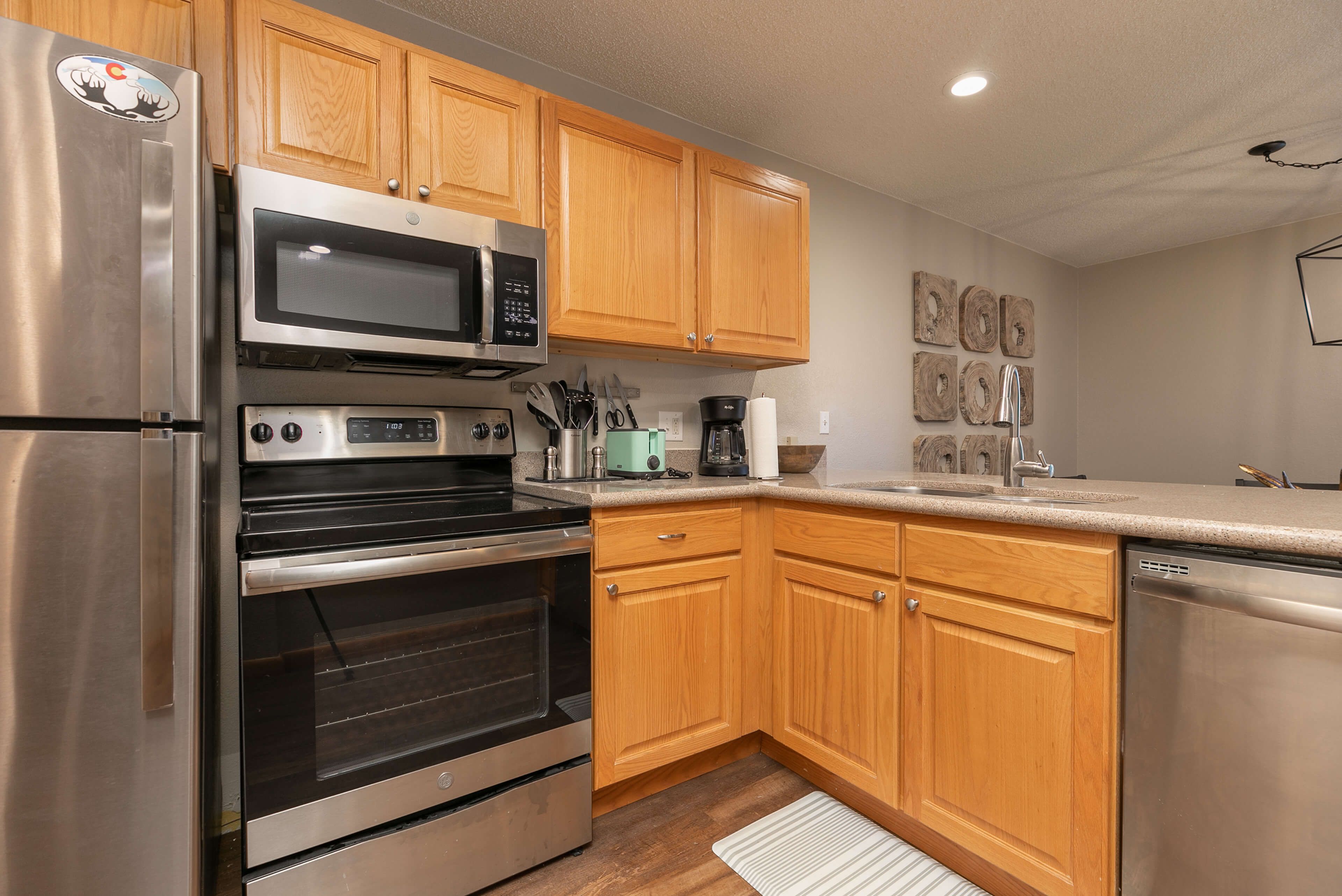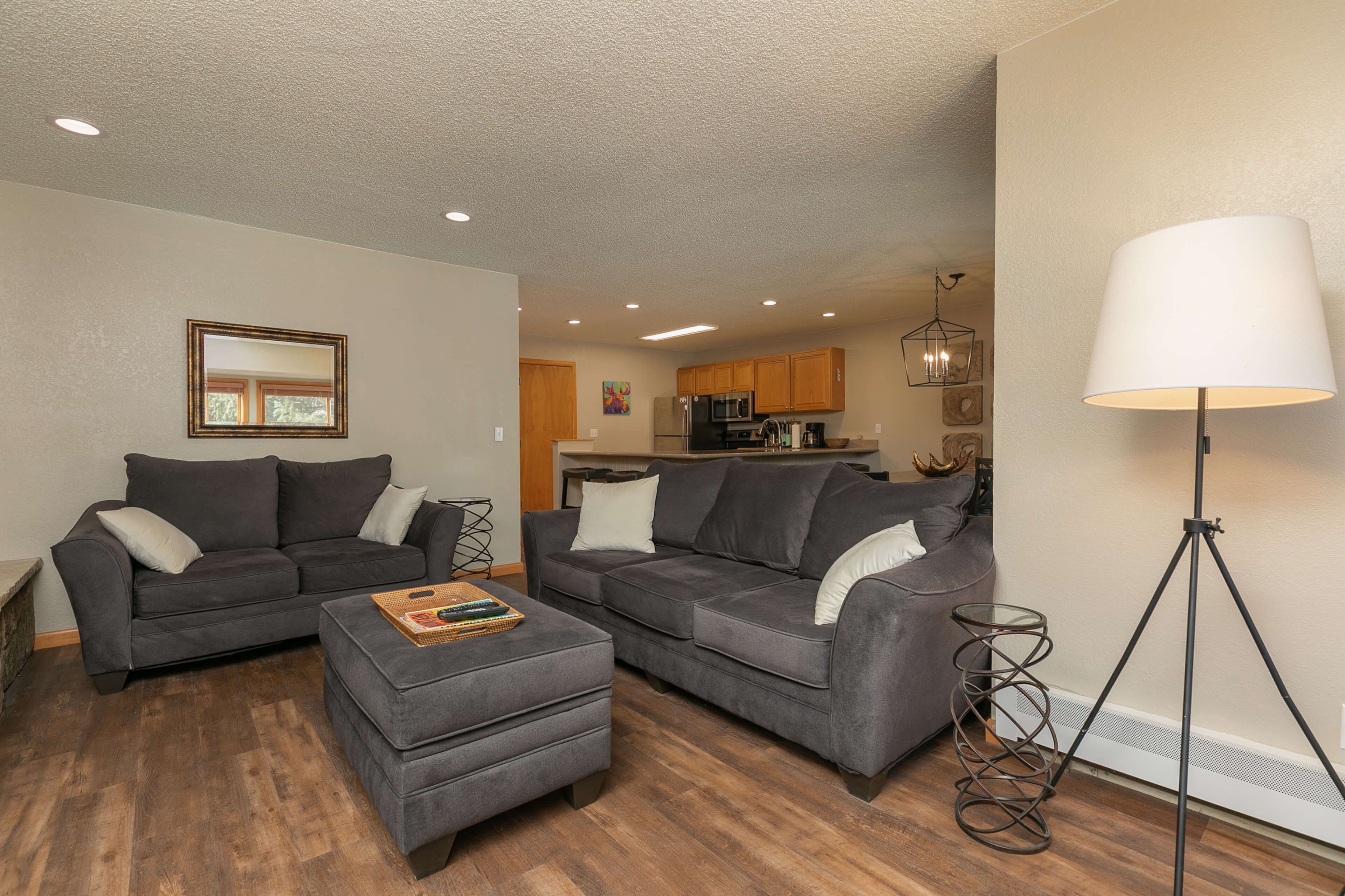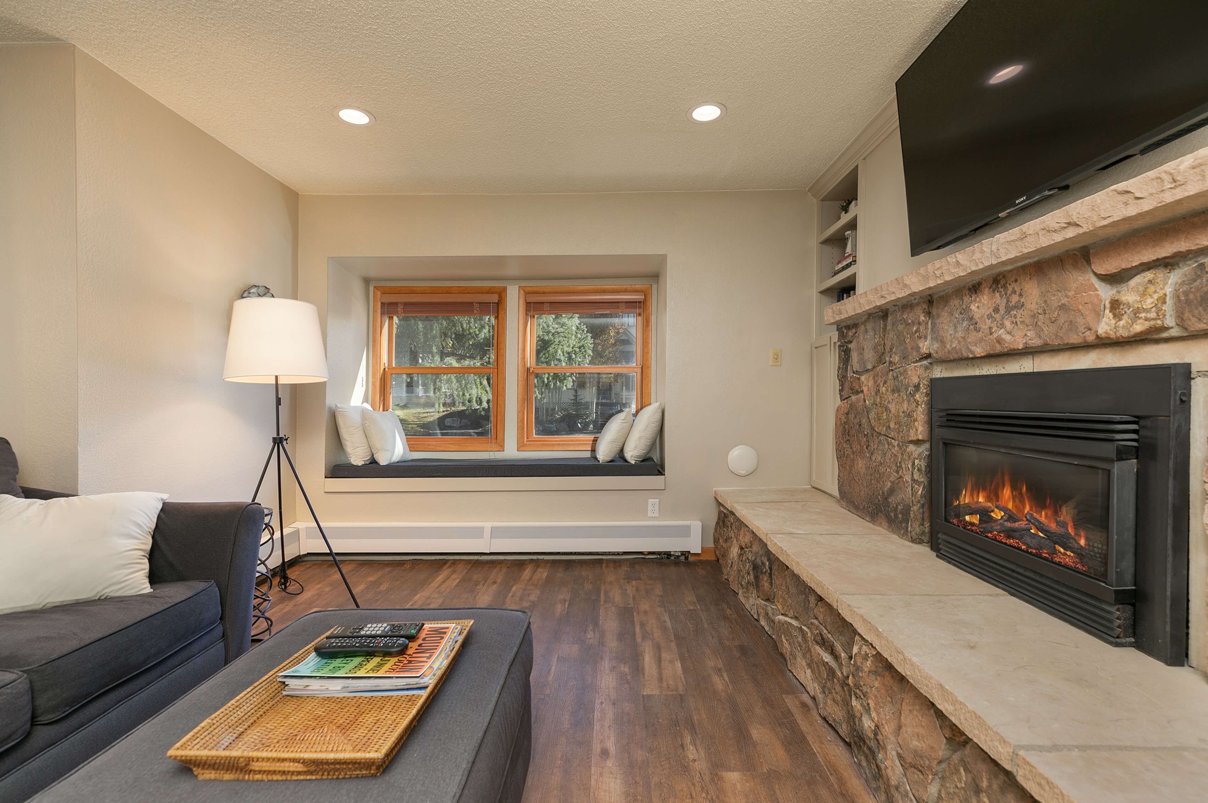 Such a convenient place to stay for the week. Had everything we needed and everything seems new or just remodeled. Fireplace and Livingroom open to the kitchen made it easy to hang out and spend time together. Bed was new and comfortable, walk into town and even walked back from the Gondola when we went skiing. Free ski shuttle picks up right on the corner, so took that to the mountain which was nice. Perfect place for a week and had everything we could need. Humidifiers in the bedrooms, very well stocked kitchen ... great stay.