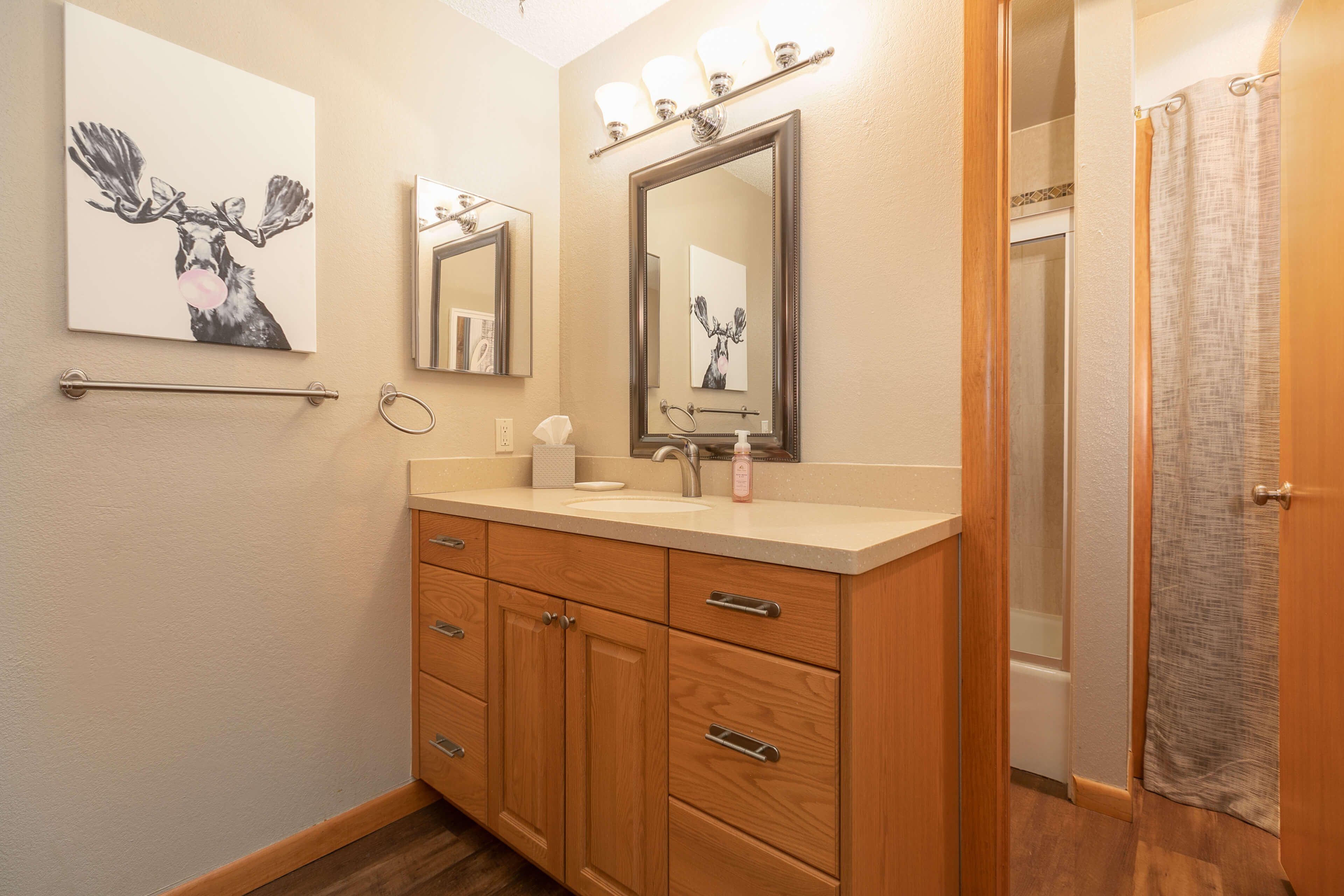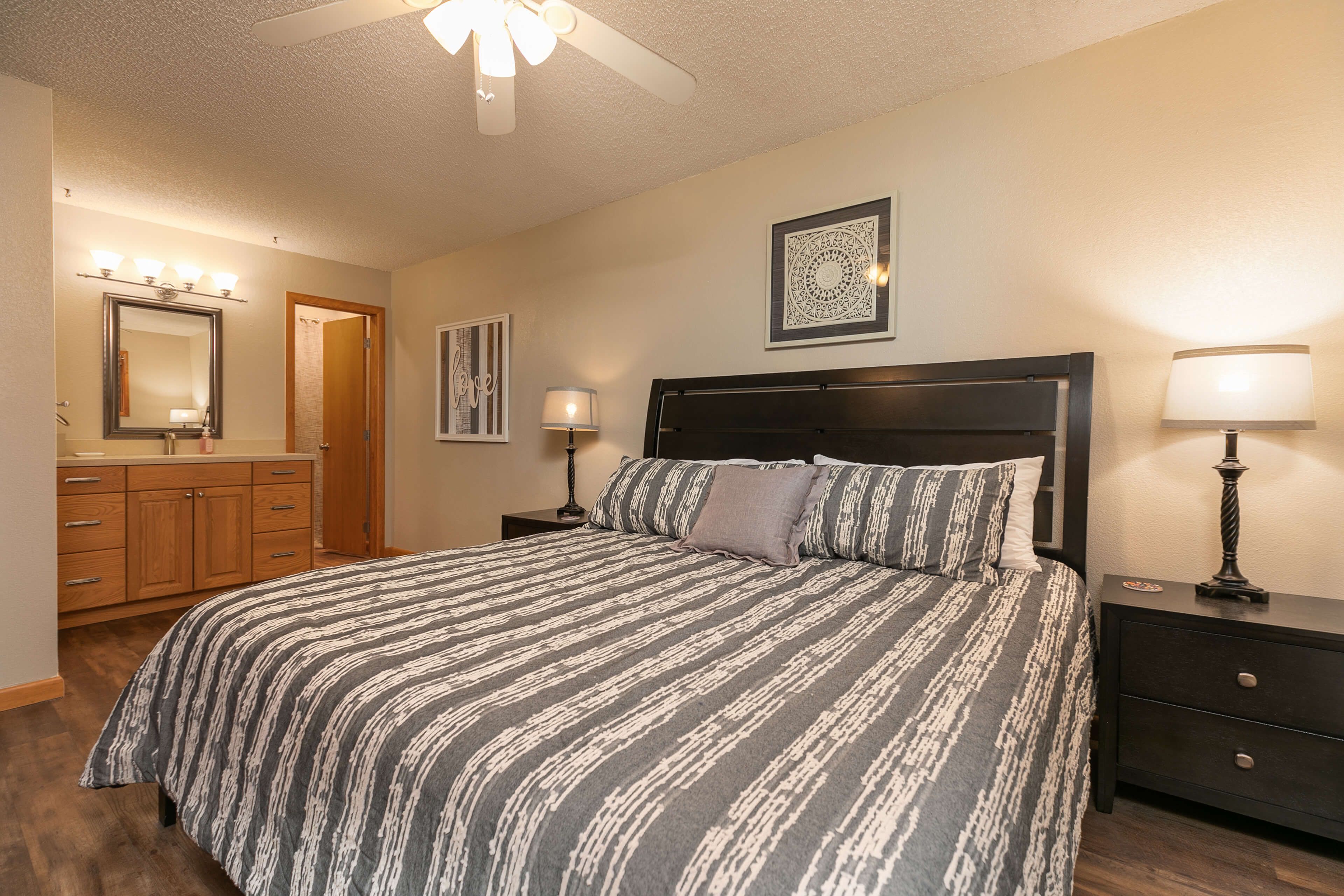 • Master suite: king bed, private bathroom with tub/shower. (sleeps 2)