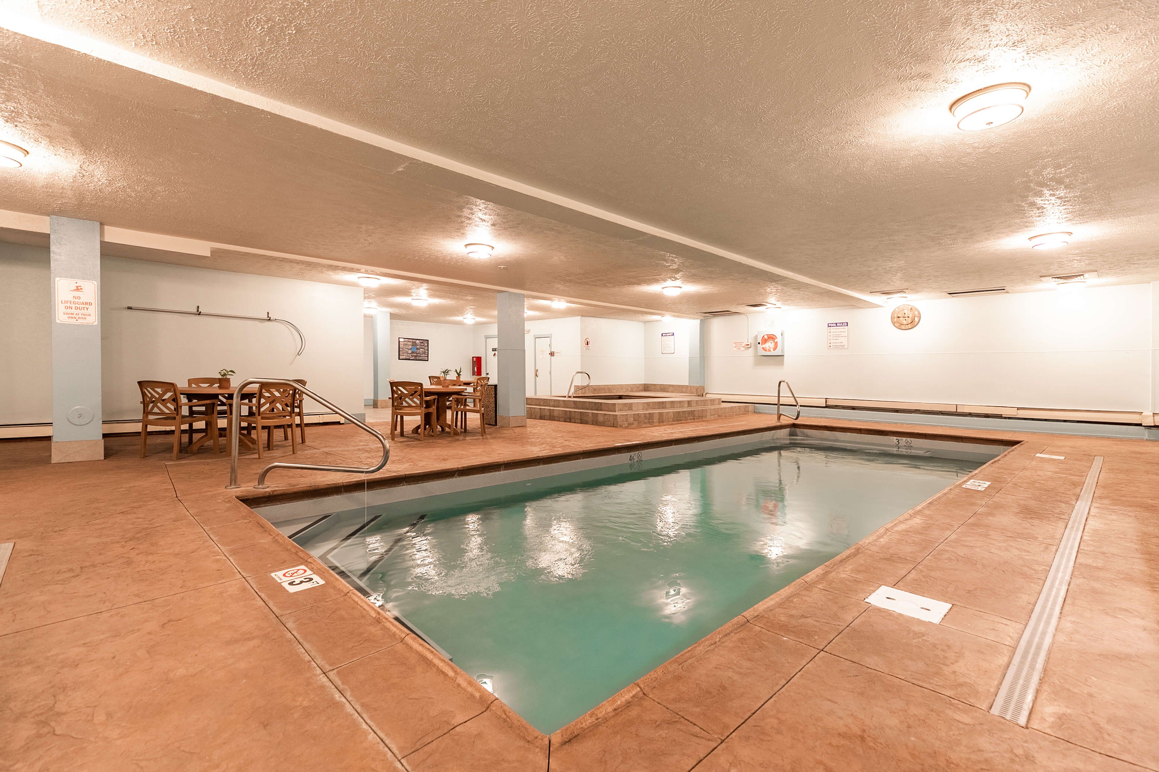 This condo is a good option for the price in popular Breckenridge. This two bedroom, 1st floor condo has a bunk room with two bunk beds (which sleeps 4). This was perfect for our group. Also importantly, we were able to park the car in the underground space and not use it again until we were ready to leave! Everything is walking distance: shopping, dining, skiing, hiking. Local’s market just two blocks down Wellington Road is where we shopped for food… eating breakfast & lunch in and dinners out. The free gondola to the base of skiing was just 4 blocks away. We made good use of the pool and hot tub. The amenities and finishes are not brand new, but perfect for our needs. The building is quite old but well kept. Otherwise I give this condo high marks for location, amenities, ease of use, and its ability to accommodate our group.