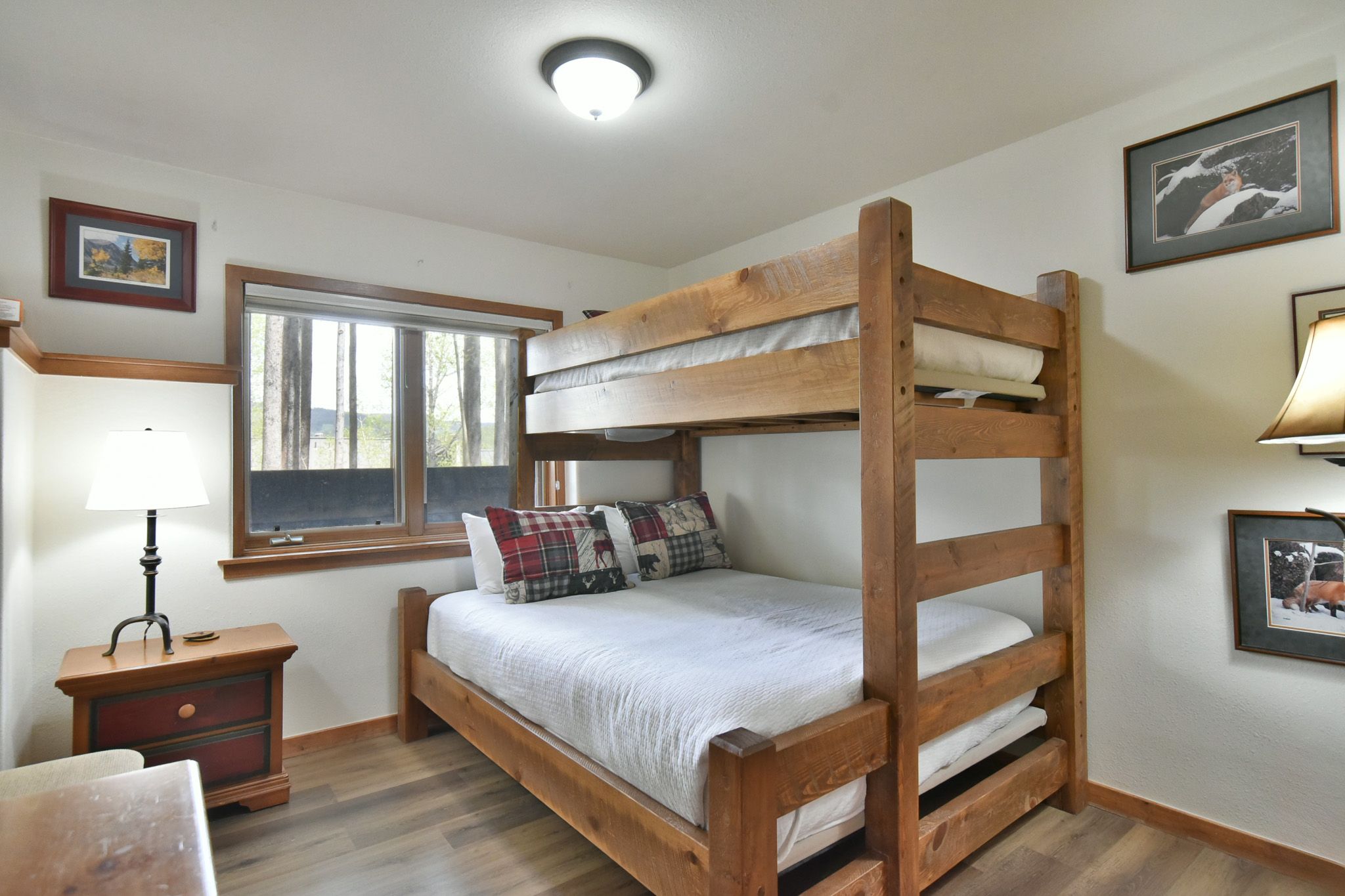- Bedroom 2: twin-over-queen bunk bed, smart tv (sleeps 3)