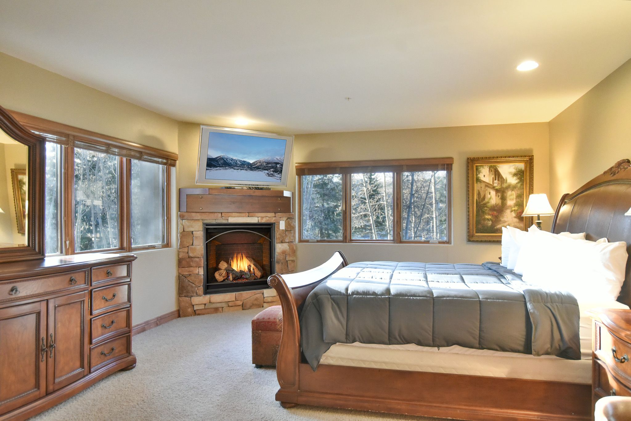 • King Master Suite: King Bed, Smart TV, Gas Fireplace, En-Suite Bathroom, Dual Vanity, Walk-In Tile Shower & Large Soaking Tub. (Sleeps 2)
