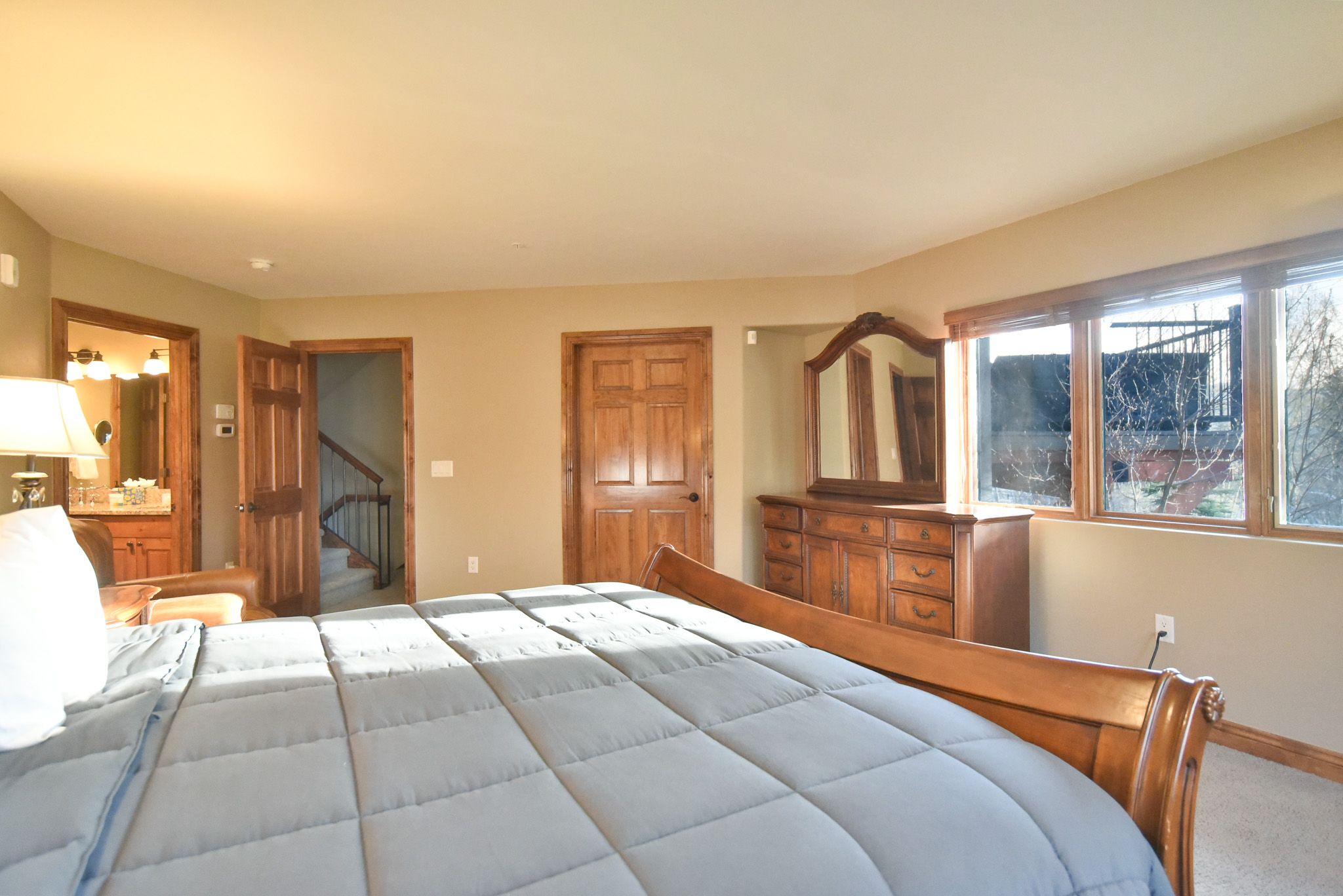 • Queen Master Suite : Queen Bed, Workstation, En-Suite Bathroom, Dual Vanity, Walk-In Tile Shower & Large Soaking Tub. (Sleeps 2)