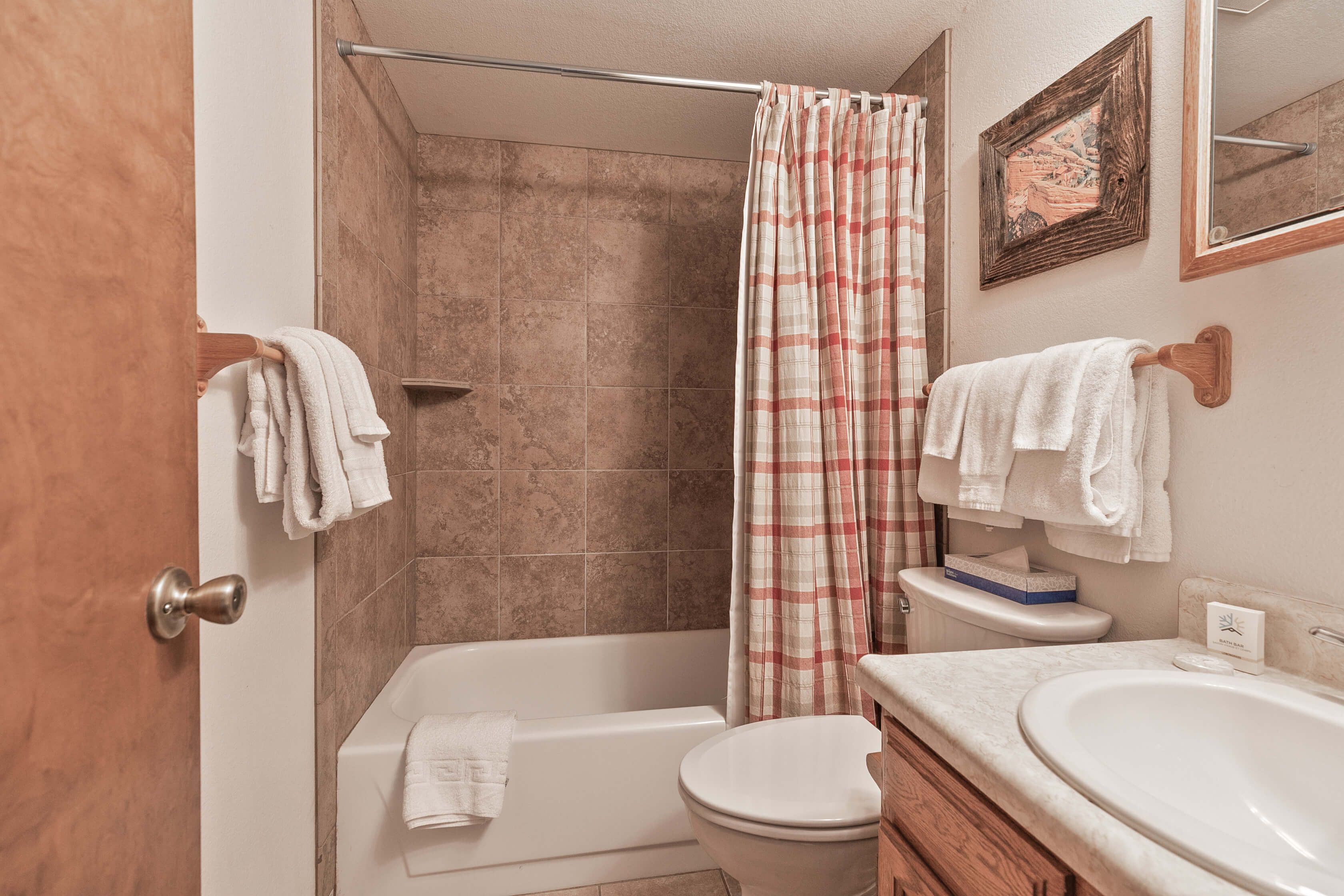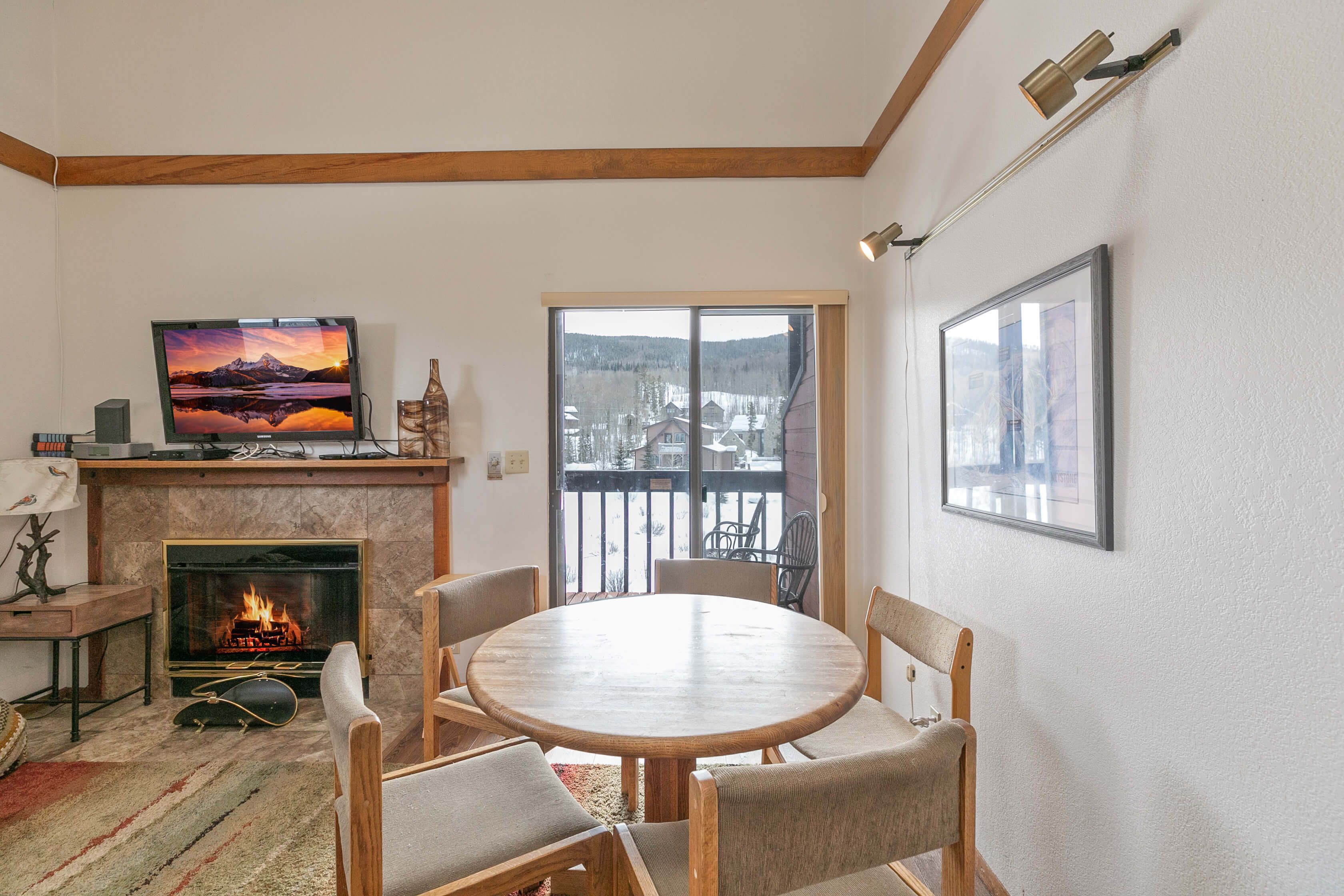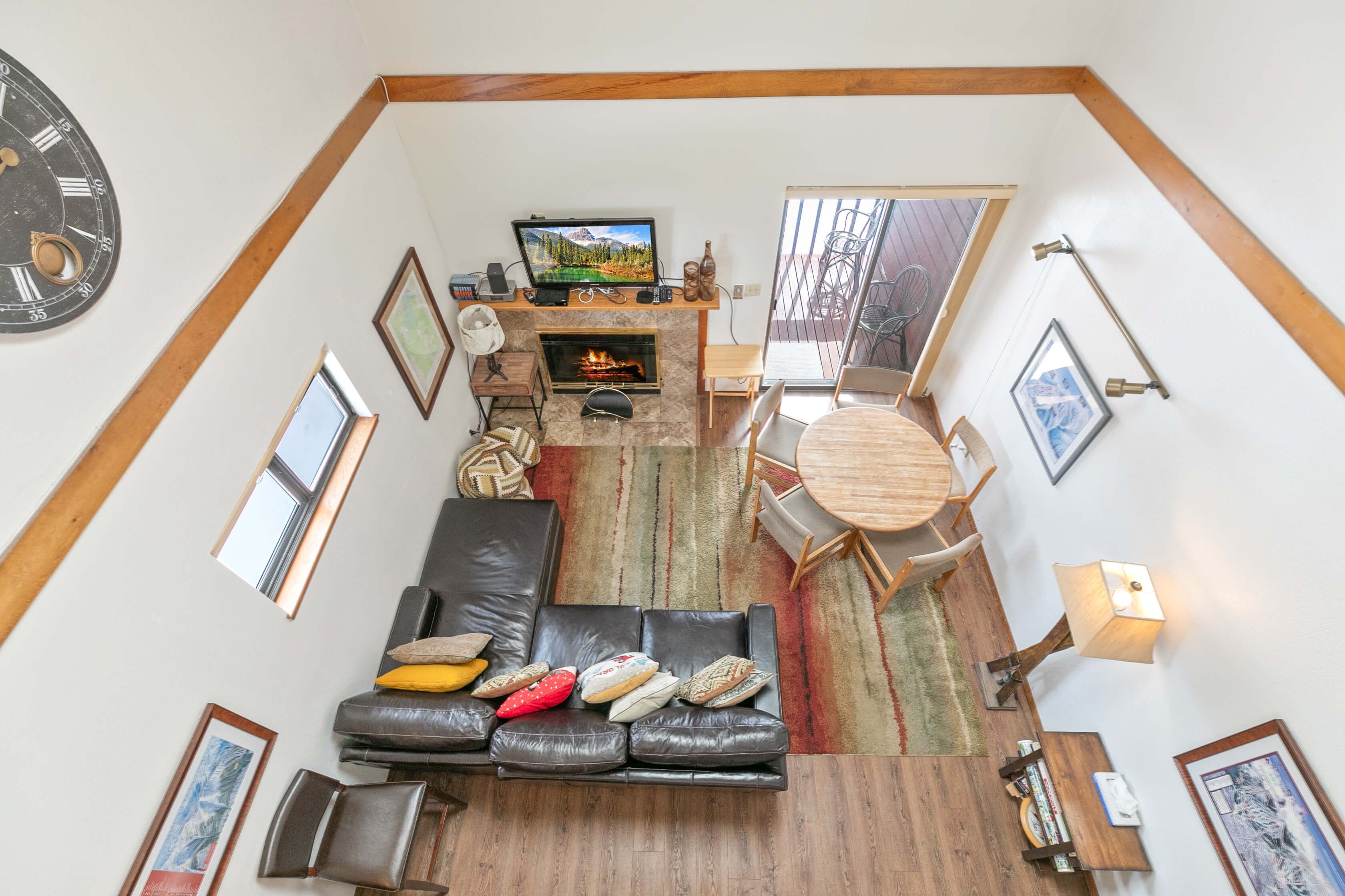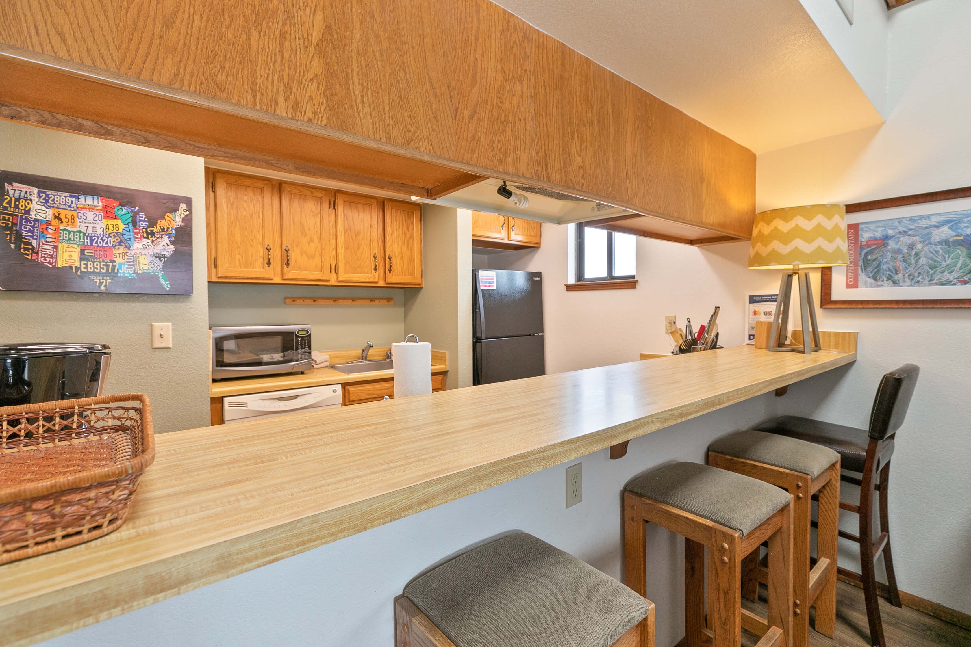 This comfortable 2-bedroom+loft, 2-bathroom condo is the perfect getaway for families or groups of up to eight people. The living area features a gas fireplace and a flat-screen TV, making it the perfect place to relax after a fun day in the mountains. The fully equipped kitchen has everything you’ll need to keep the gang fed and happy, with seating for four at the dining table and room for four more at the breakfast bar. And you’ll love stepping out onto the balcony to take in the beautiful forest and mountain views!