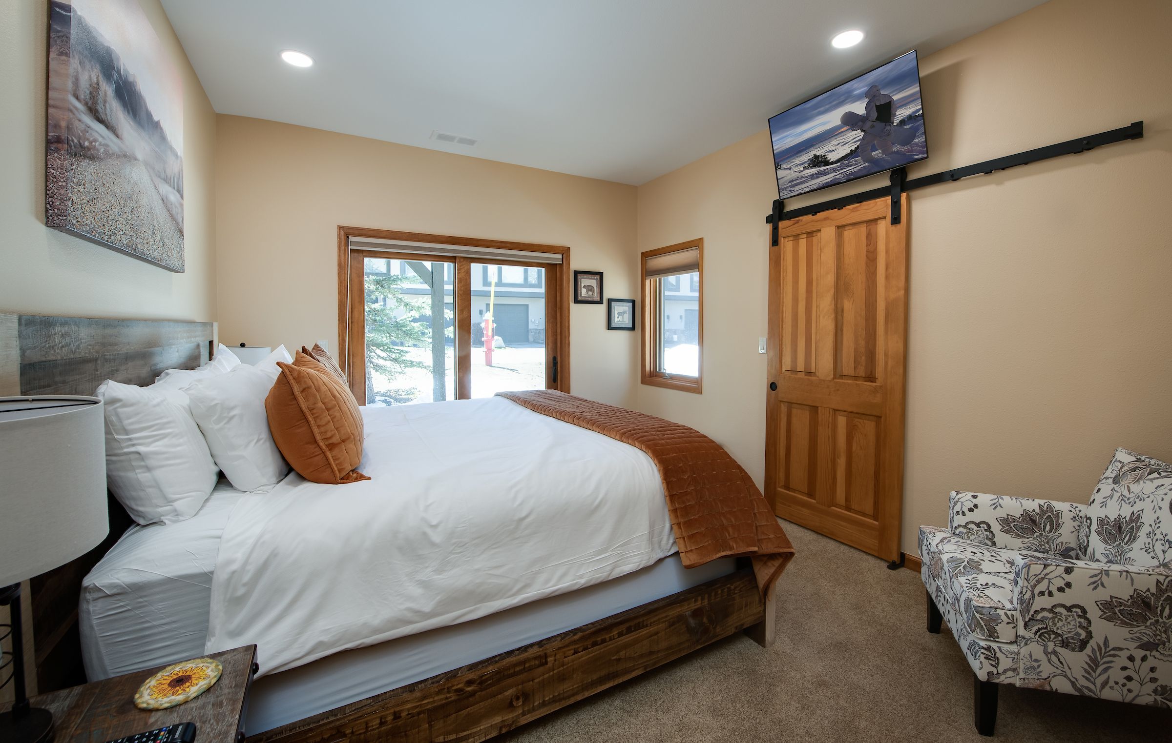 - King suite: King bed, Smart TV, private bathroom with walk-in tile shower. (sleeps 2)