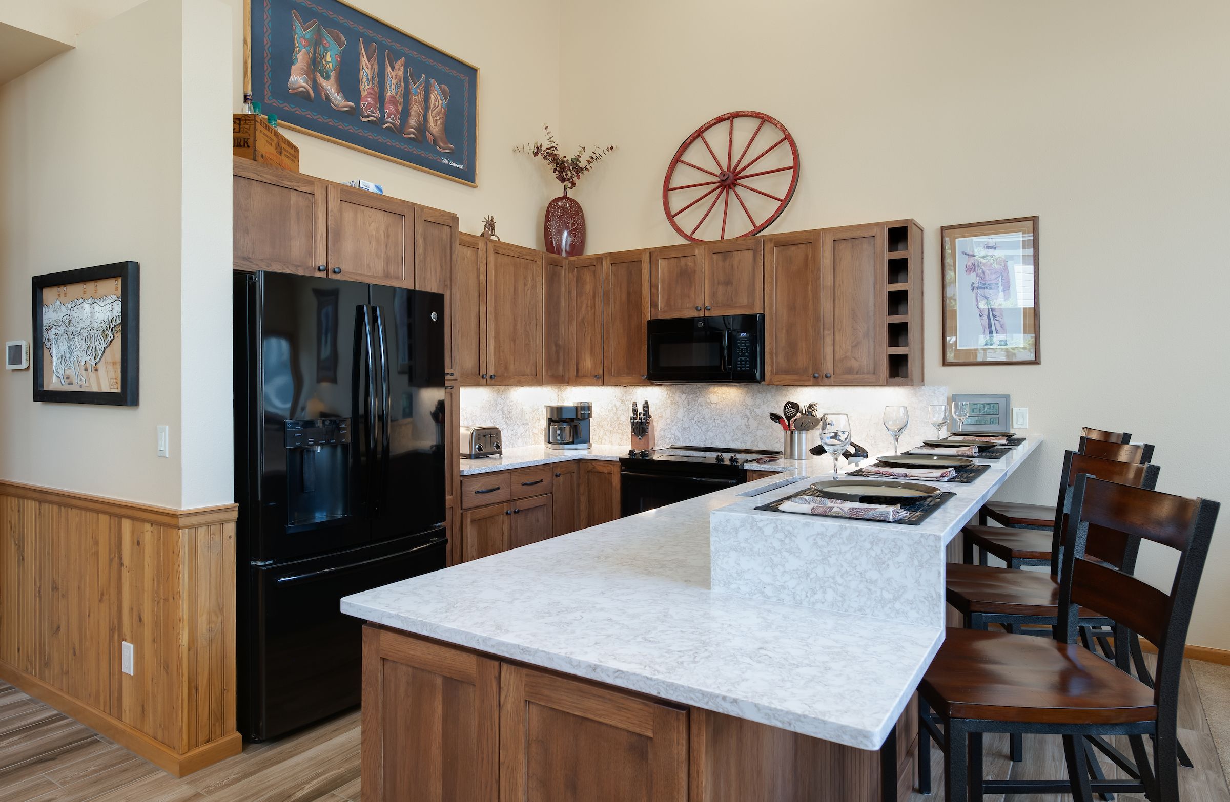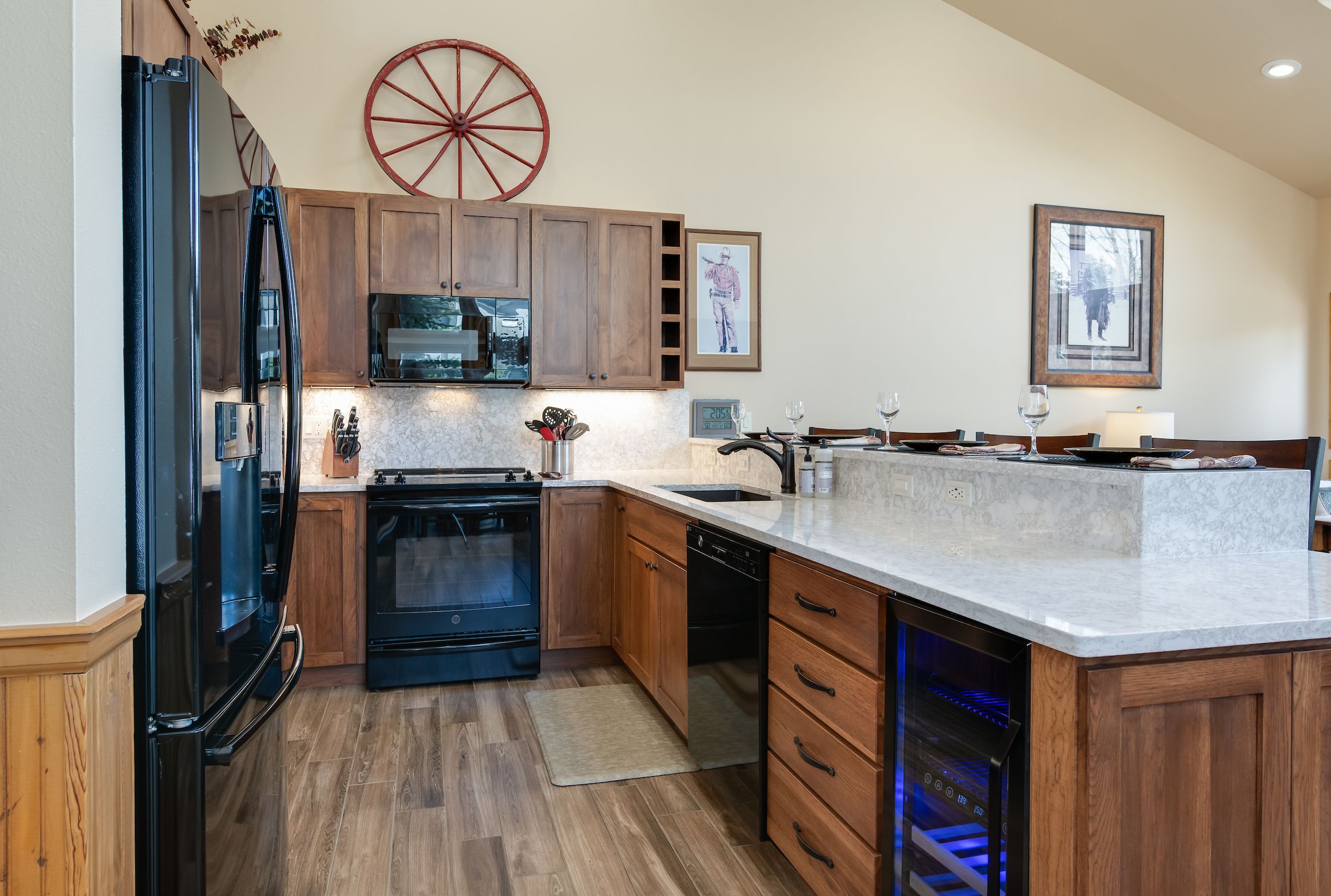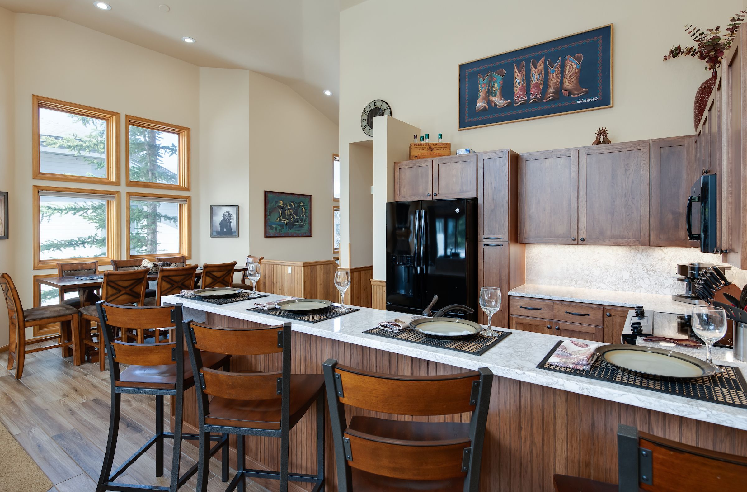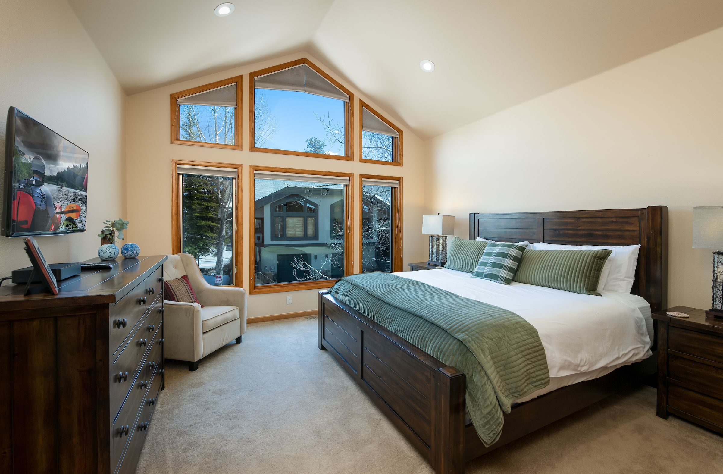 The kitchen is a culinary enthusiast’s dream, featuring spacious Cambria quartz counters, high end appliances, and all the necessary accouterments for whipping up meals and snacks when you’re not indulging in Breck’s myriad dining options. With seating for eight at the dining table and room for four at the counter, there’s ample space for enjoying meals together. Additional amenities a washer/dryer for added convenience, and parking for two vehicles to ensure stress-free arrivals and departures.
