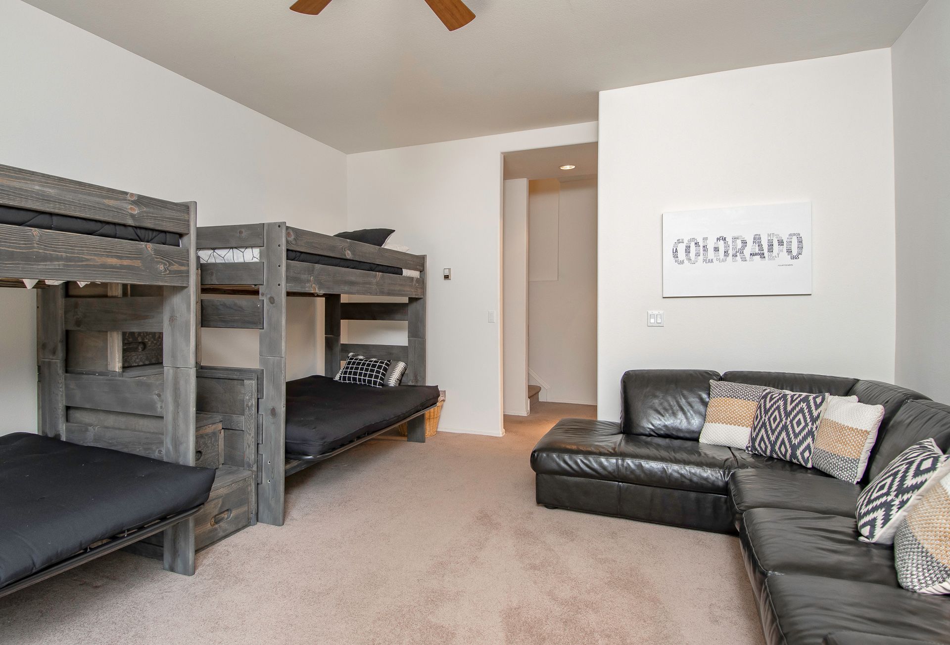 - Two captain's bunk beds (twin over full). (sleeps 6)