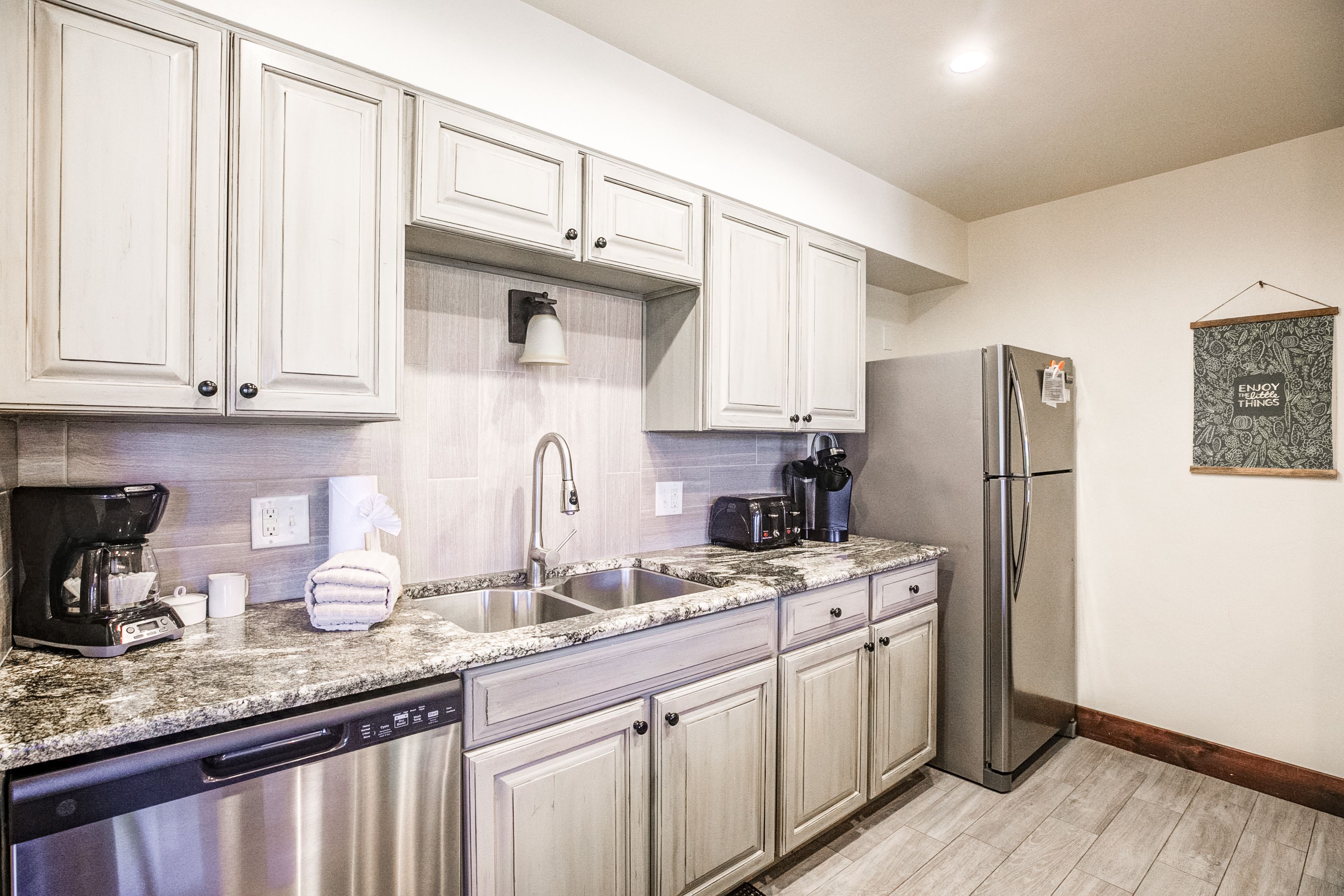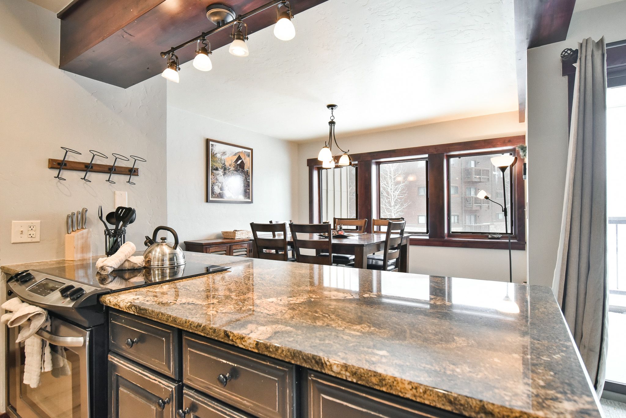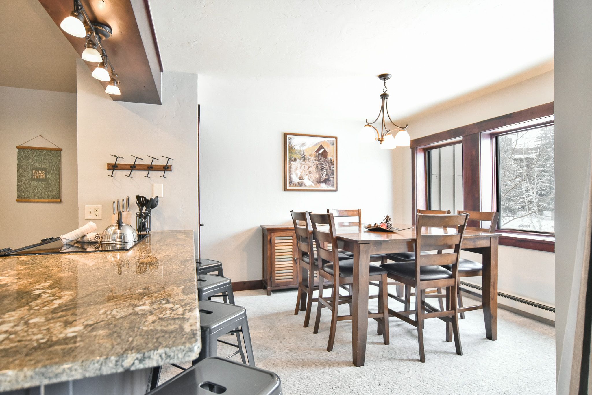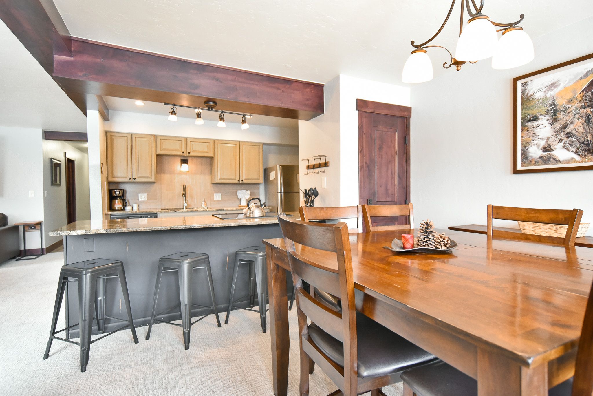 You’ll love being just across the street from downtown and the free shuttle to whisk you around town as well as to the slopes! Other amenities include complimentary Wi-Fi, an in-unit washer/dryer, and parking for one vehicle.