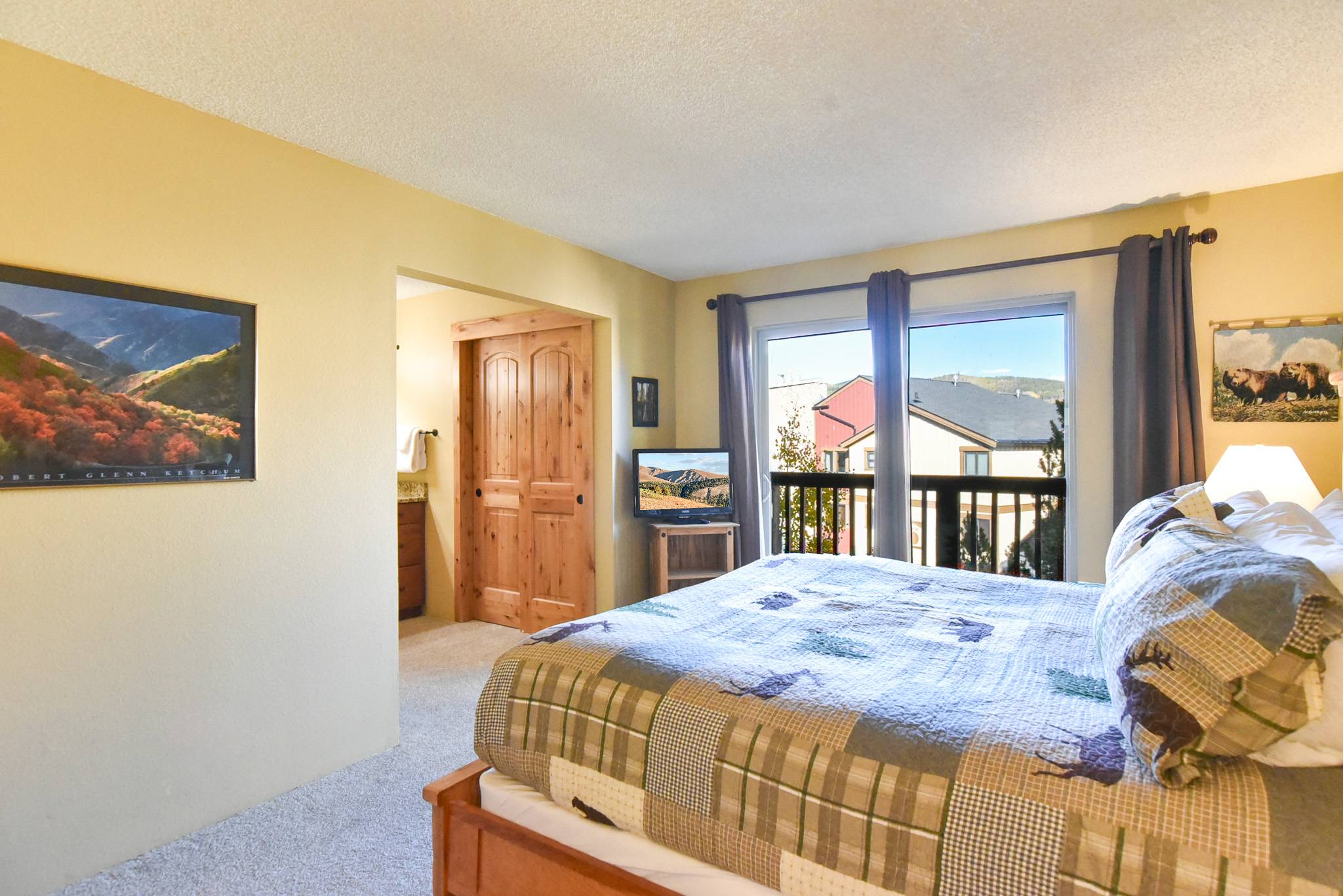 • King Primary Suite: king bed, private patio, en-suite bathroom with walk-in shower, tv. (sleeps 2)