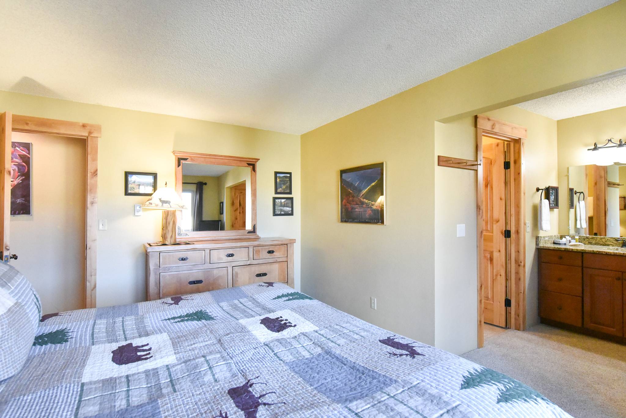 Inside, the condo captures that warm alpine feel while offering modern comfort throughout. The open-concept living area features a gas fireplace, a comfortable sofa (that doubles as a sleeper), and access to a private patio surrounded by fresh mountain air. It’s an inviting space to relax and reconnect after a day outdoors. The updated kitchen features granite countertops and stainless steel appliances, fully equipped for everything from easy breakfasts before hitting the slopes to shared evening meals with family and friends.