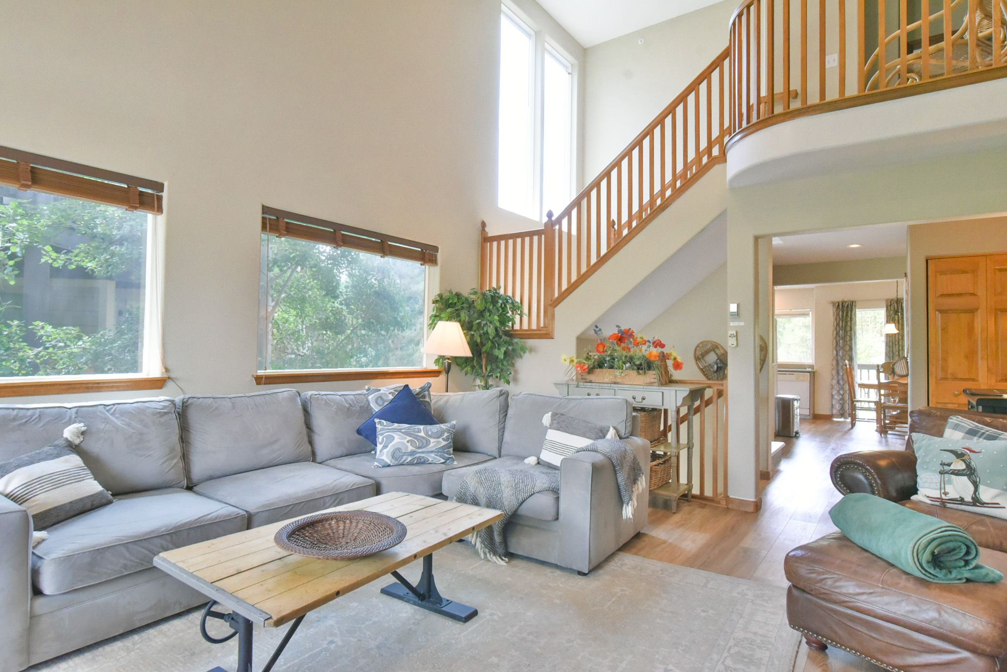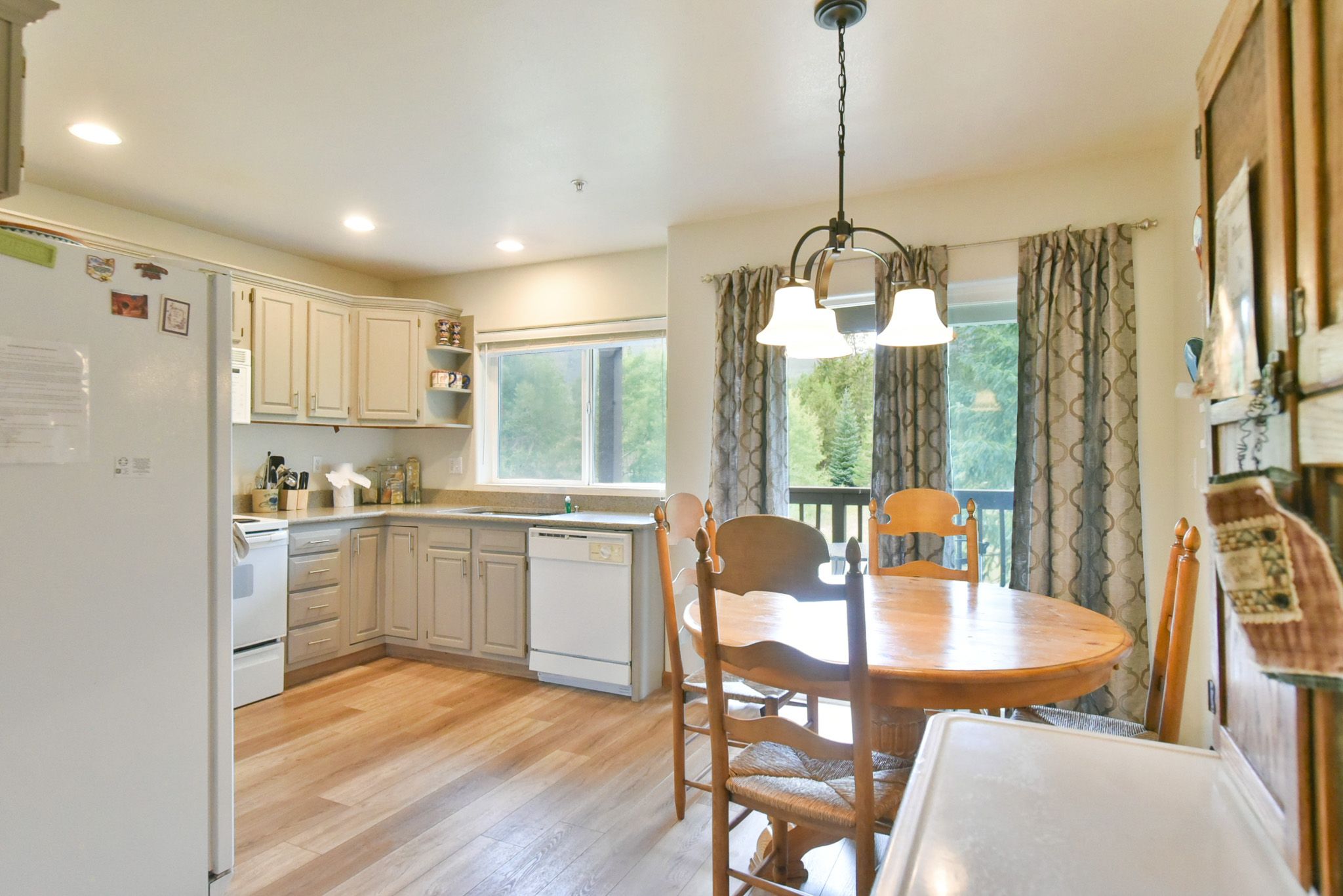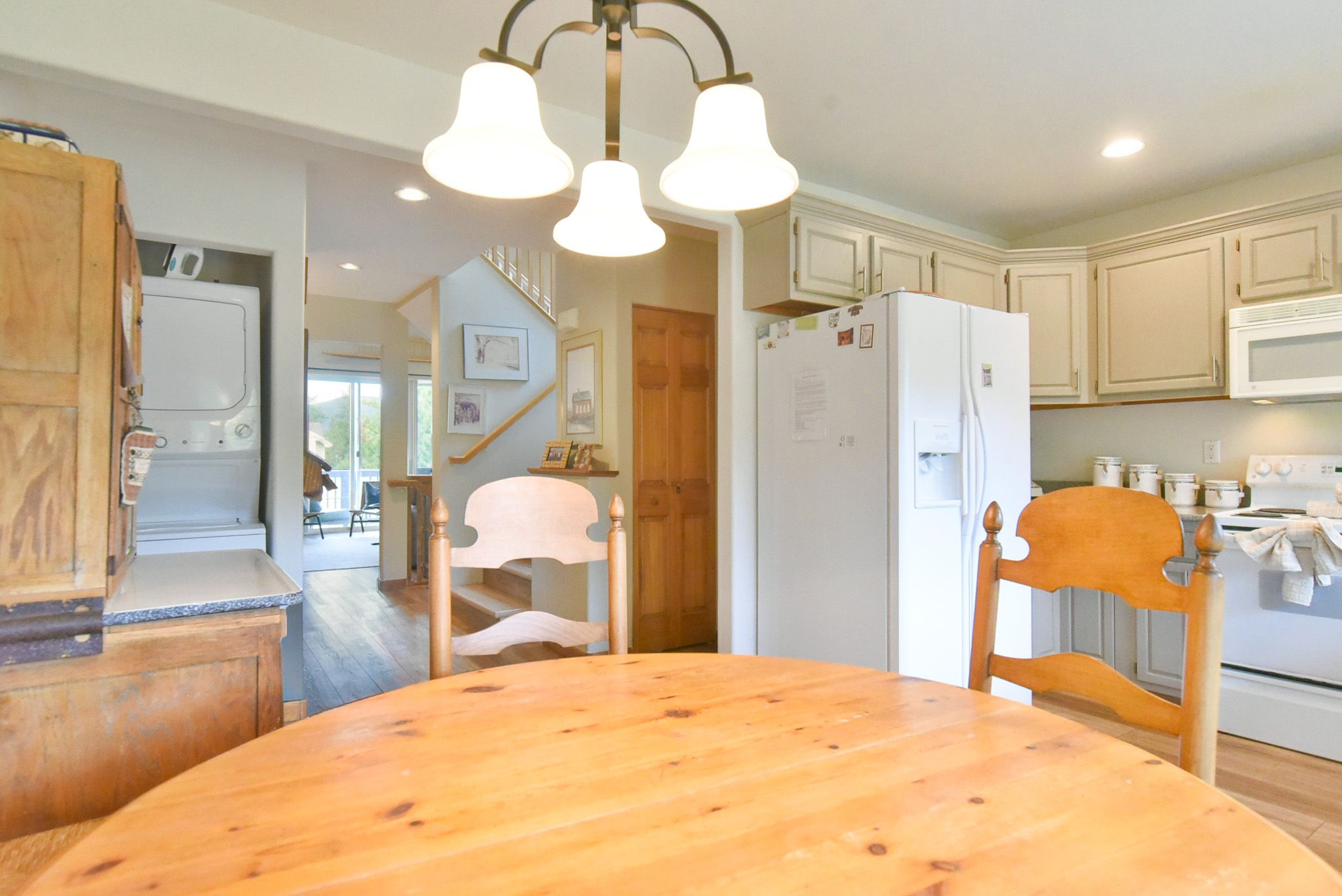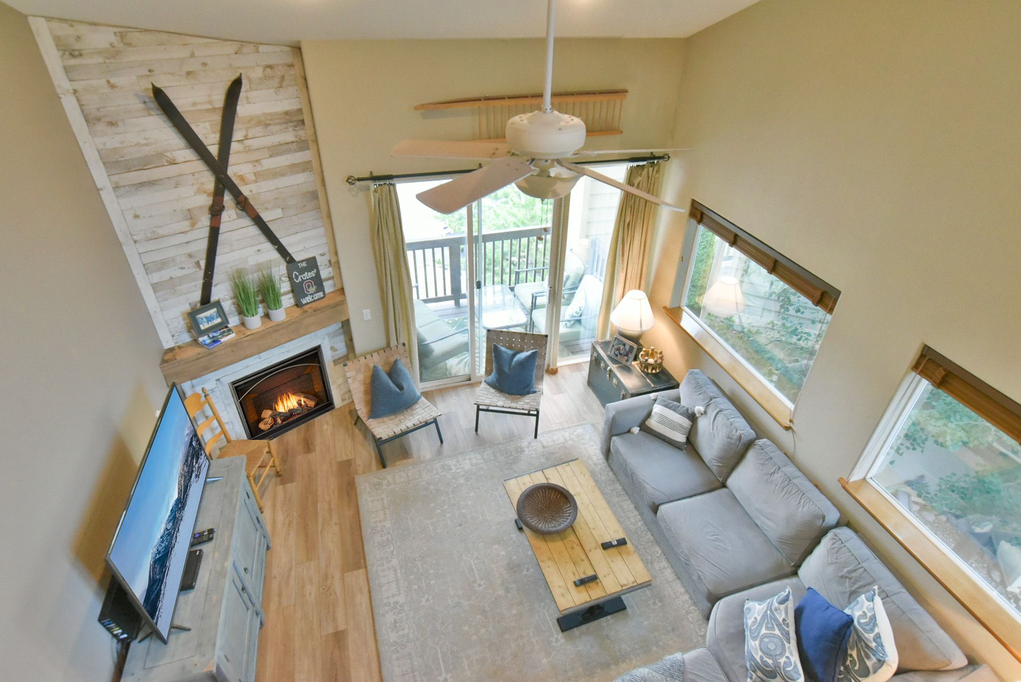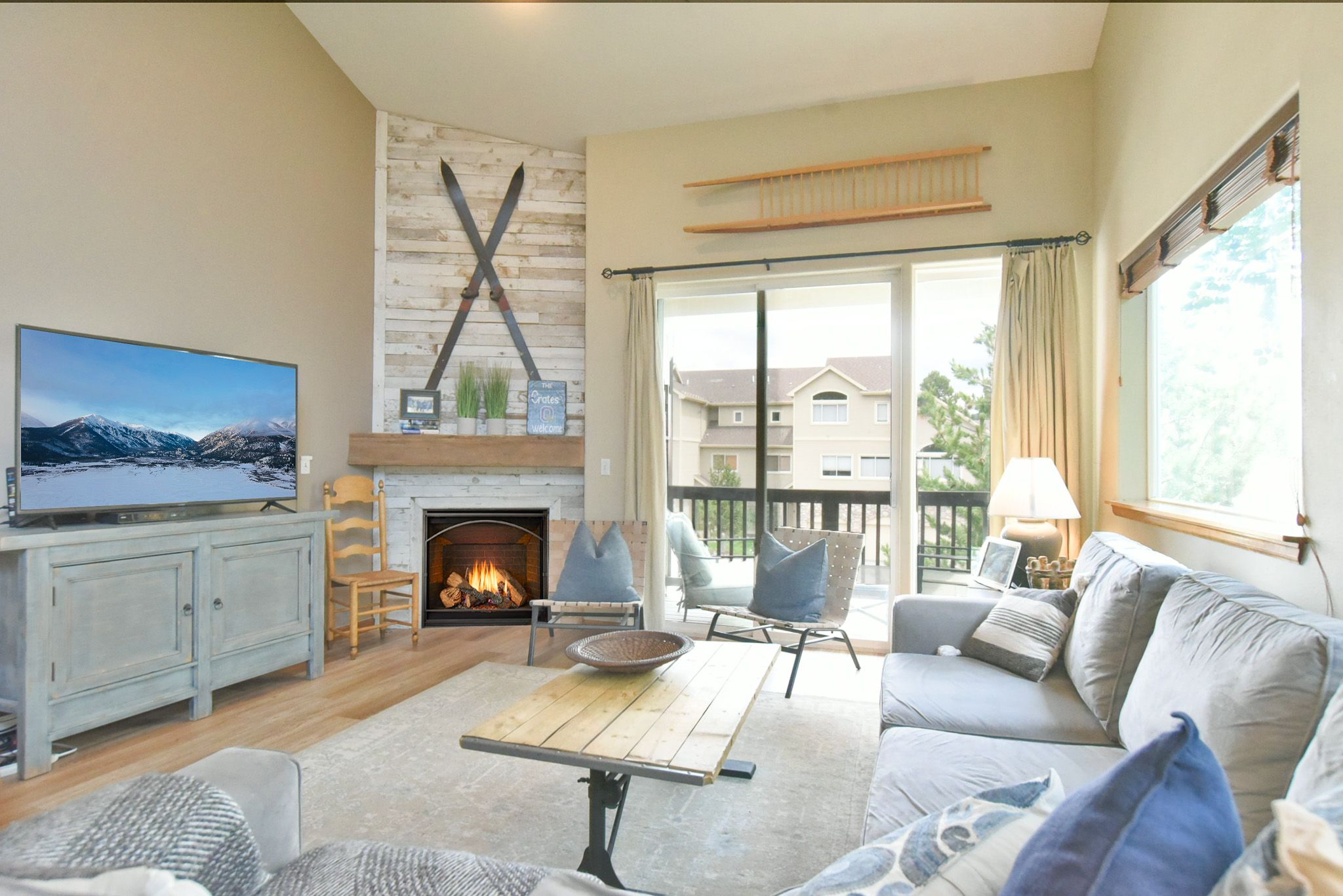 Inside, you’ll find a spacious multi-level layout designed for both comfort and connection. As an end-unit, the townhome is filled with natural light and framed by additional windows that enhance the warm, welcoming ambiance. The open-concept living area is the perfect spot to relax after a day of adventure, with cozy furnishings and mountain views just outside your window. Step out to one of the private patios to take in the fresh air or unwind in the hot tub under the stars.
