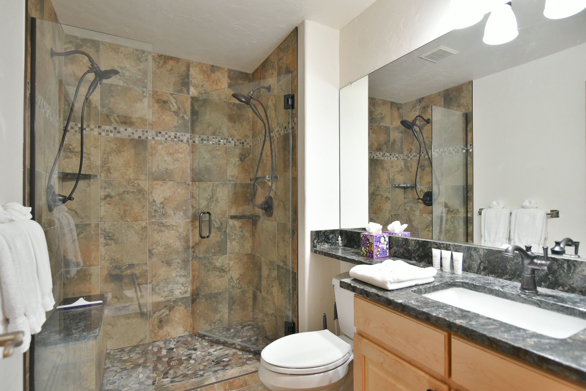 - Hallway Bathroom: bathroom with walk-in tile shower