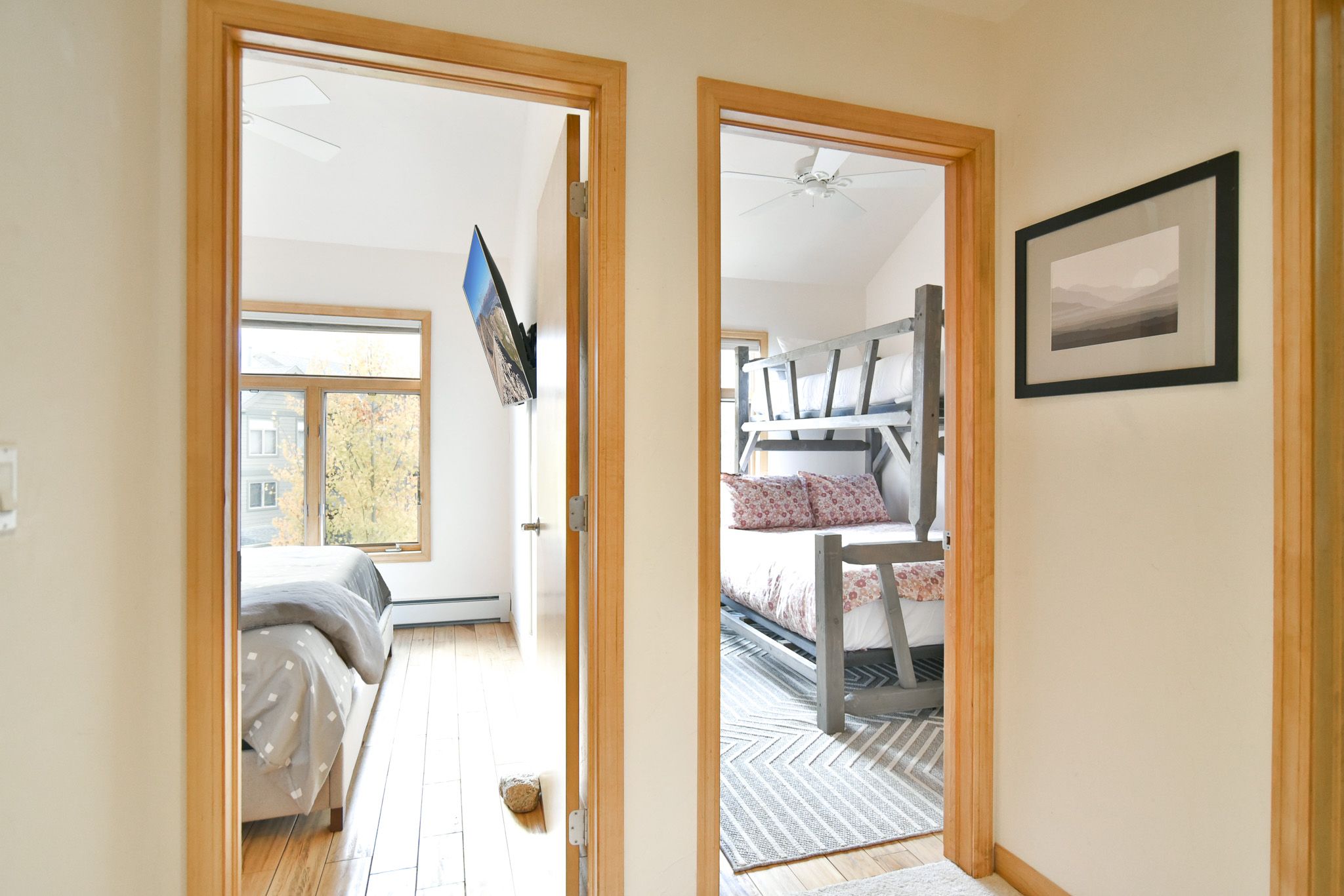 This townhome's layout is perfect for families and groups, offering ample space and privacy with three large bedrooms, an additional den, and three and one half bathrooms. With parking available for up to three vehicles (two in the garage and one outdoors), you’ll have easy access for day trips or nights out in nearby Frisco and Dillon. Just steps from the property, the Dillon Reservoir and Recreation Path invite you to explore even more of the area’s natural beauty, with trails, biking paths, and year-round outdoor activities.
