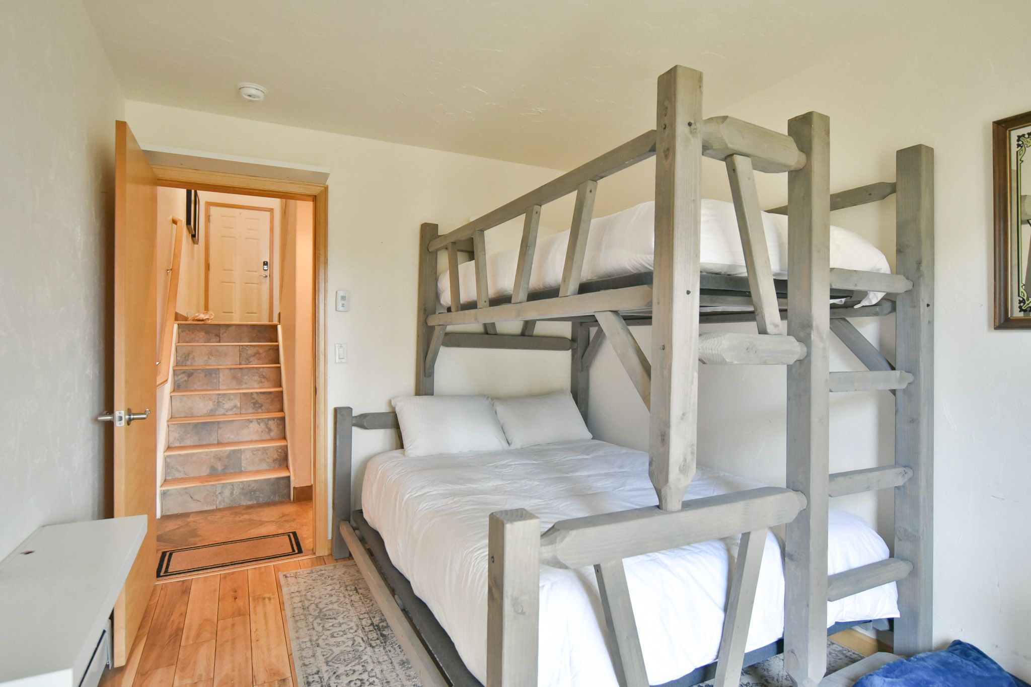 - Bedroom 3: Twin xl-over-queen bunk bed, small desk area (sleeps 3)