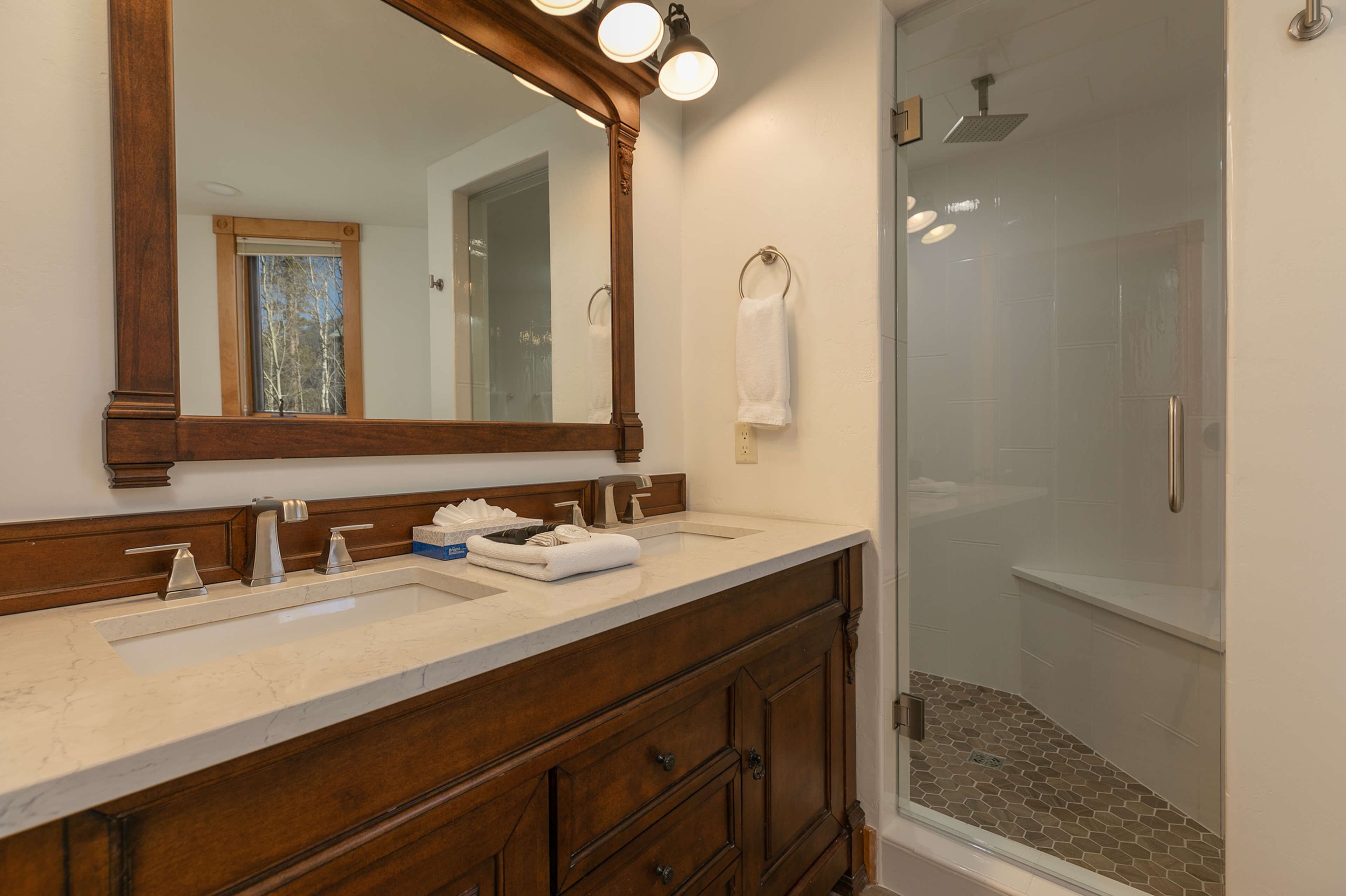 - Full suite: (2) full sized beds with attached bathroom with beautiful floor to ceiling shower. (sleeps 4)