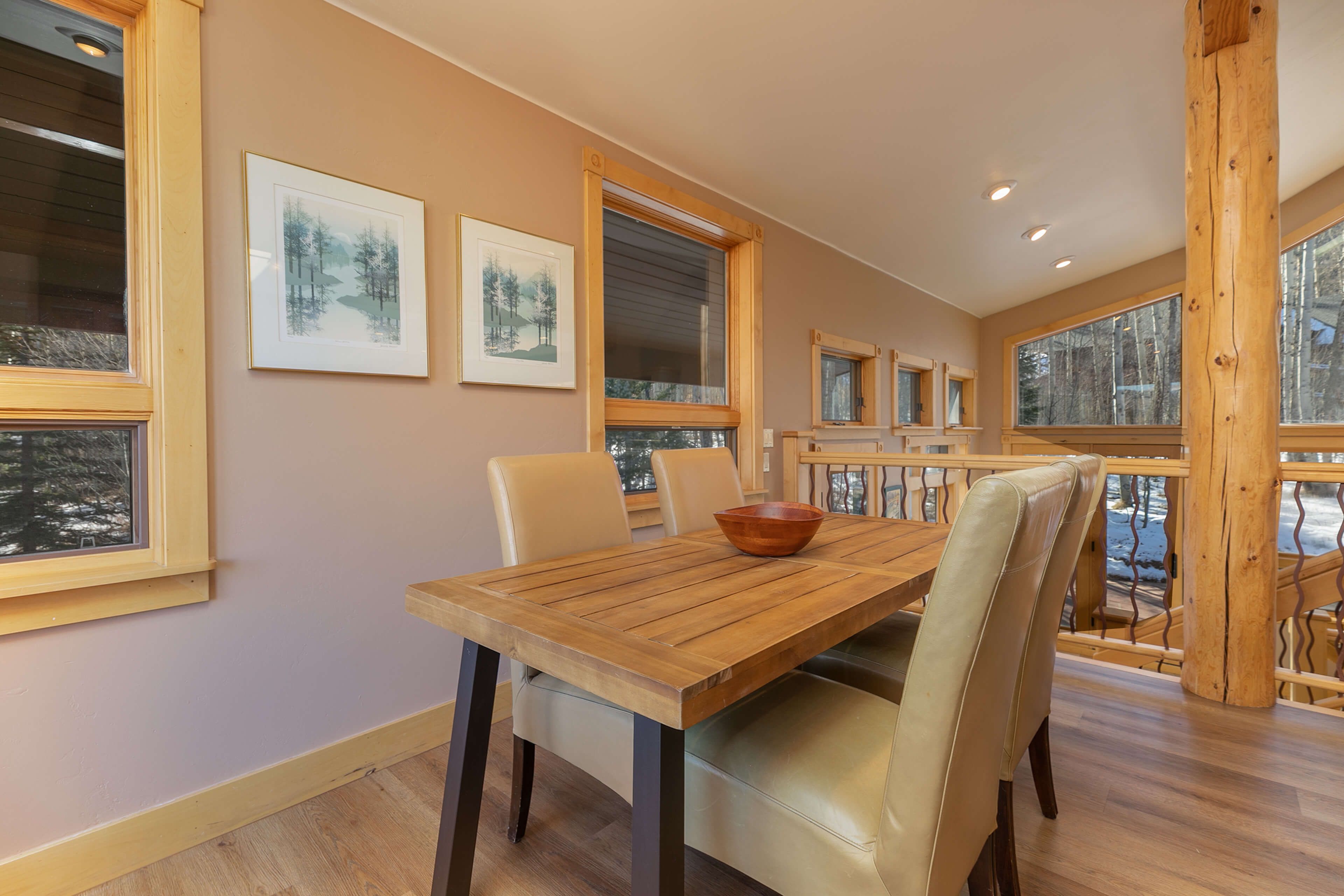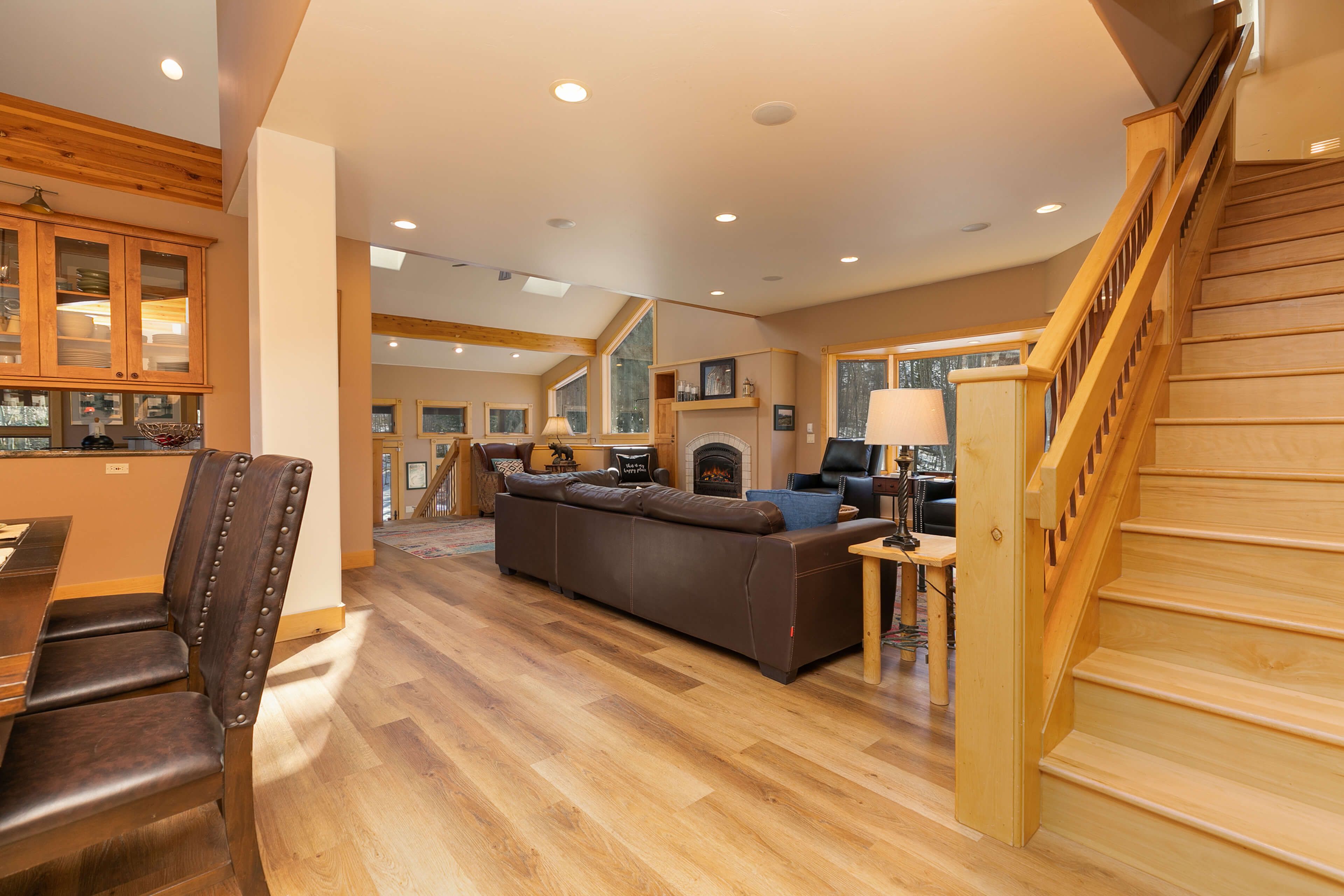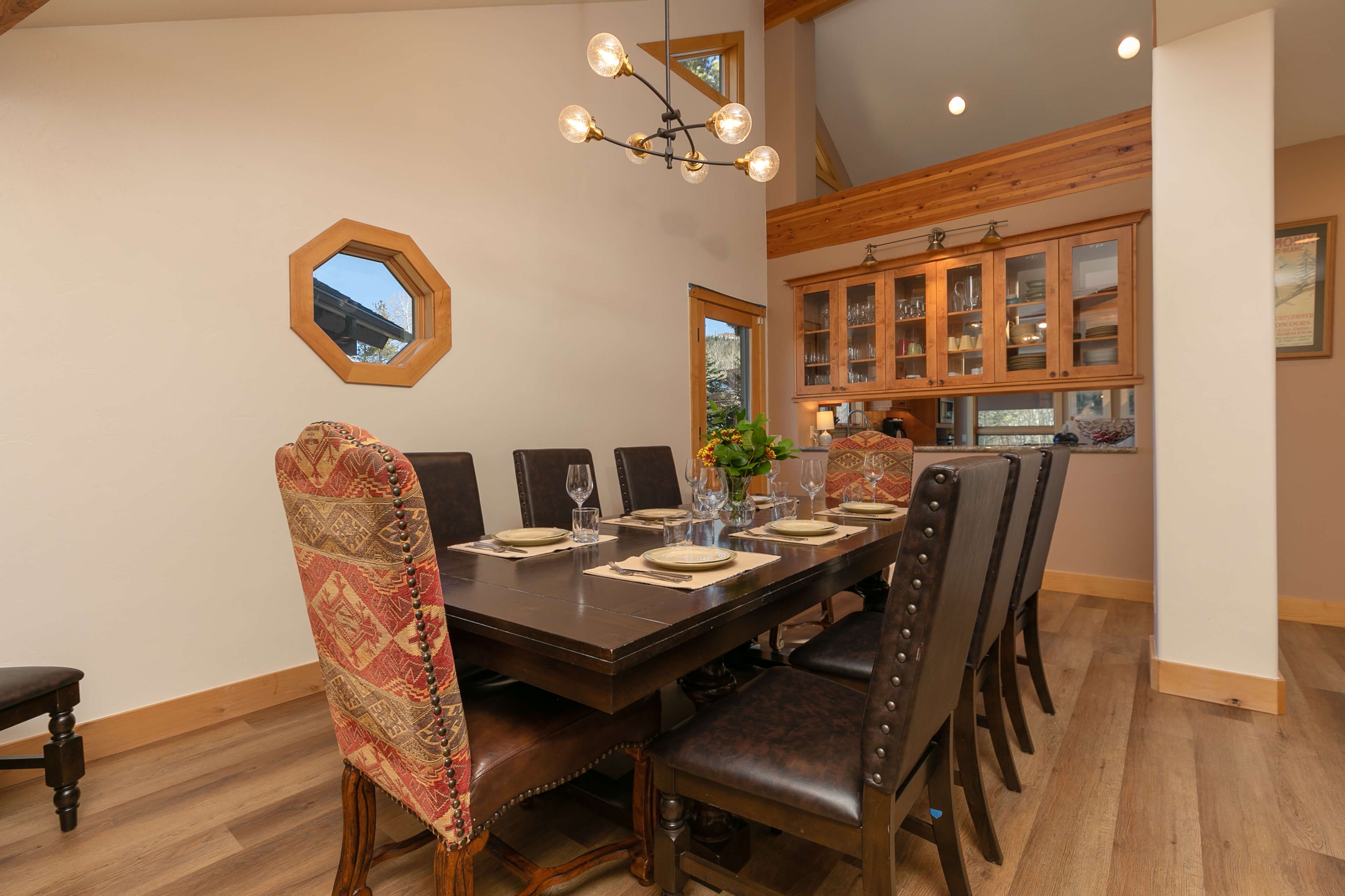 If you're looking to come together as a large group, the south wing of the home has more than enough room for all your group to gather and enjoy a family meal or perhaps some après drinks and snacks. If you're looking to relax after a long day of adventures the lower patio area features a brand new 6-person hot tub and grill area while the upper deck gives you a space to put your feet up and take in some mountain views while enjoying a nice warm beverage.
