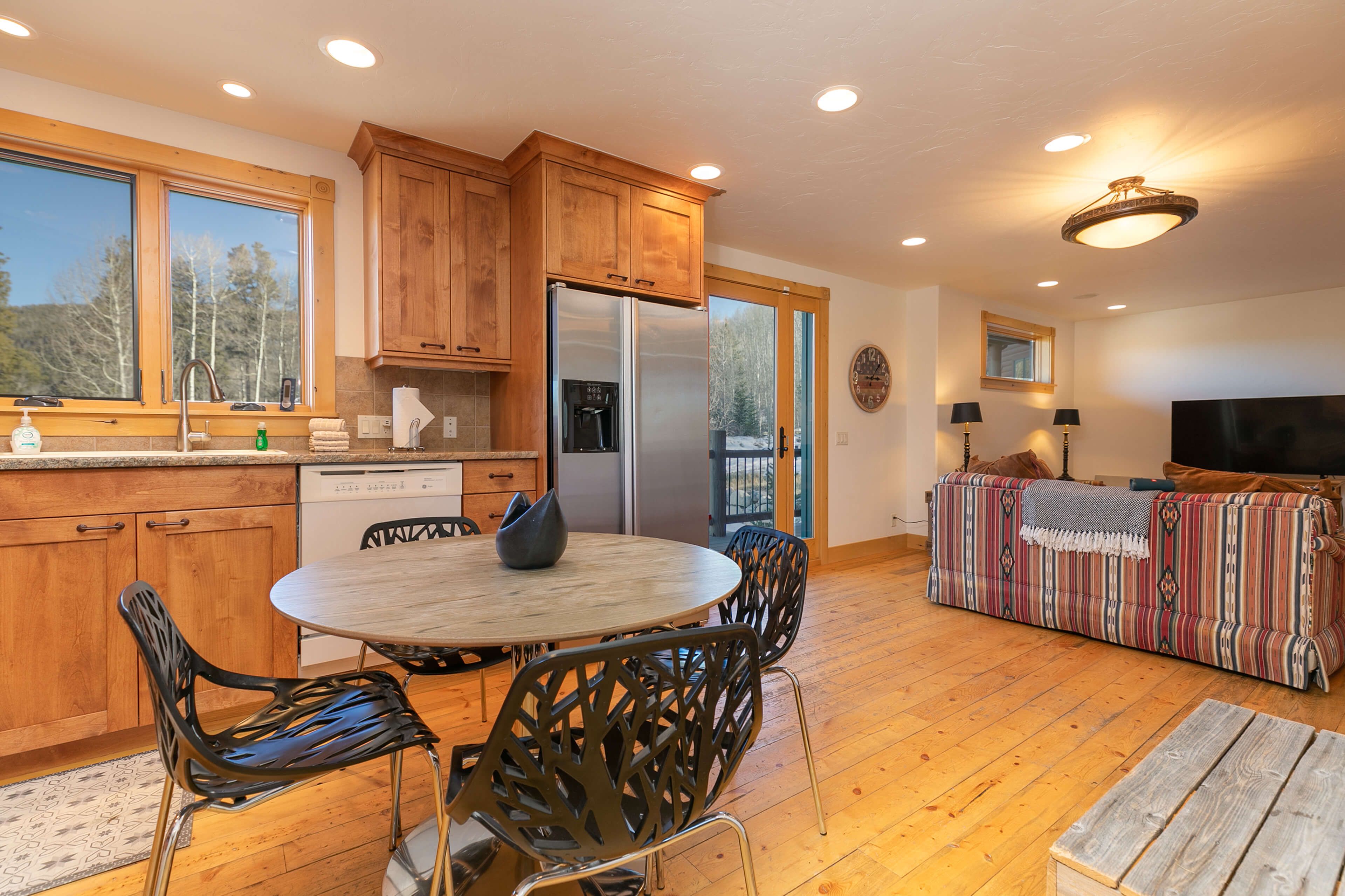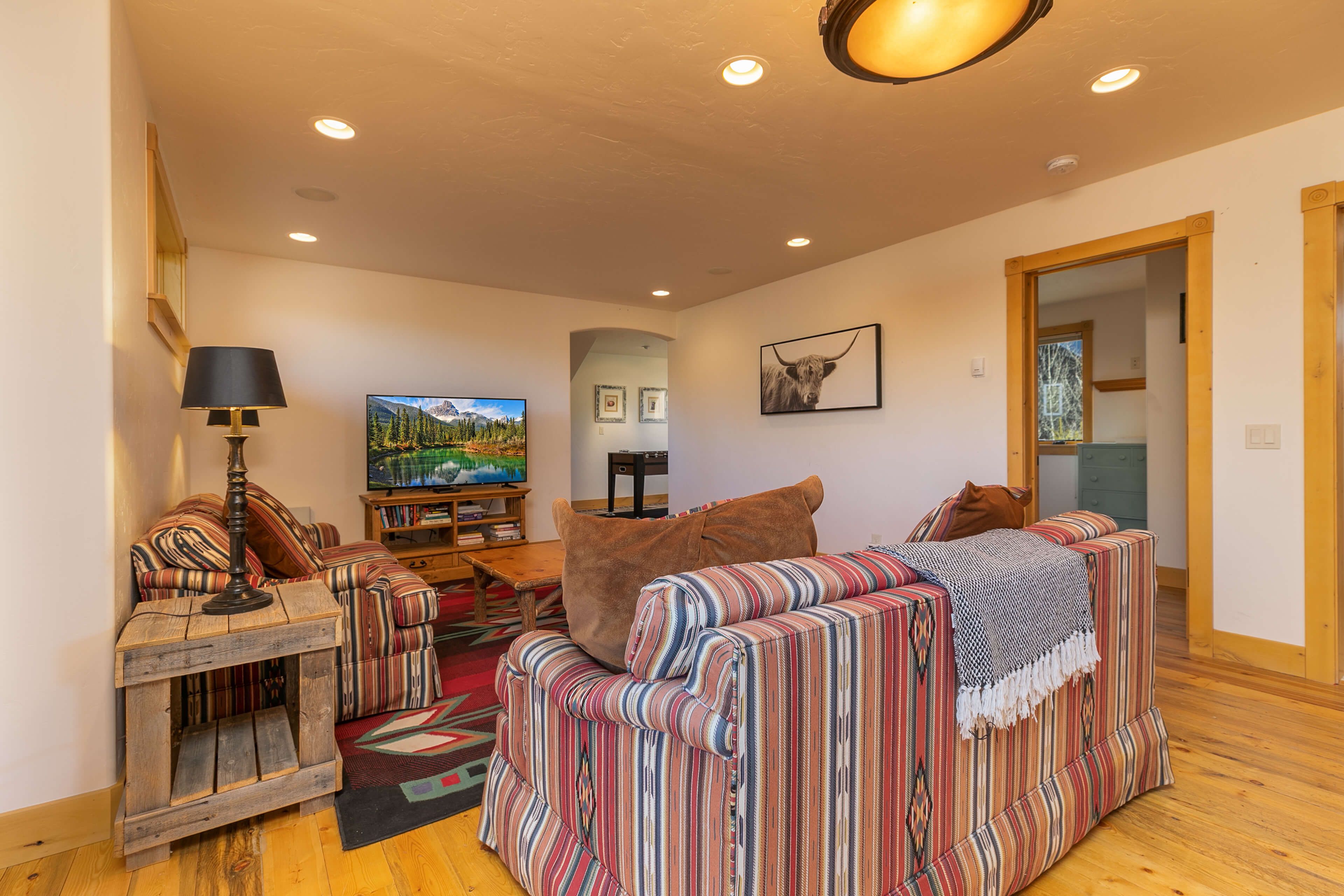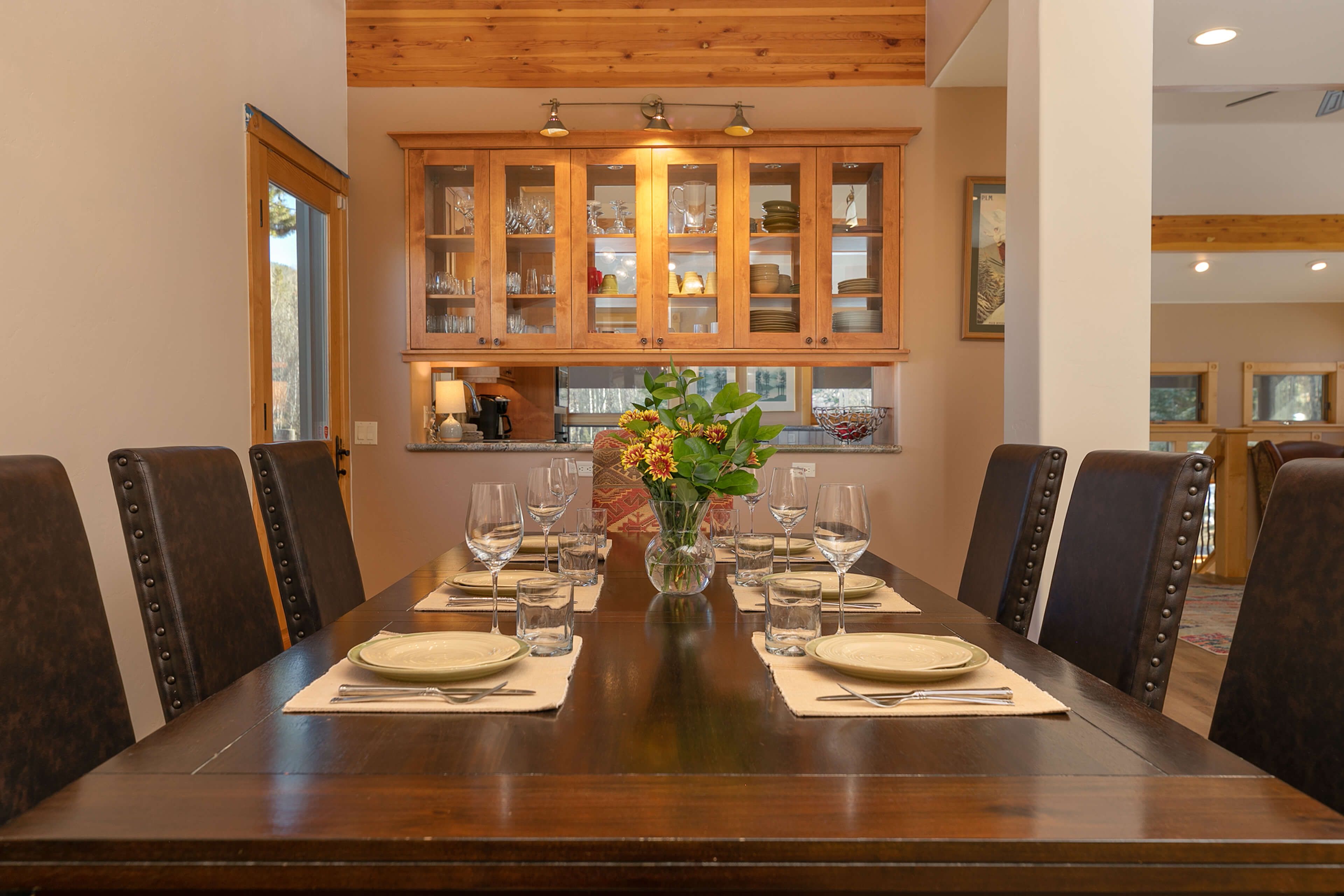If you're looking to come together as a large group, the south wing of the home has more than enough room for all your group to gather and enjoy a family meal or perhaps some après drinks and snacks. If you're looking to relax after a long day of adventures the lower patio area features a brand new 6-person hot tub and grill area while the upper deck gives you a space to put your feet up and take in some mountain views while enjoying a nice warm beverage.