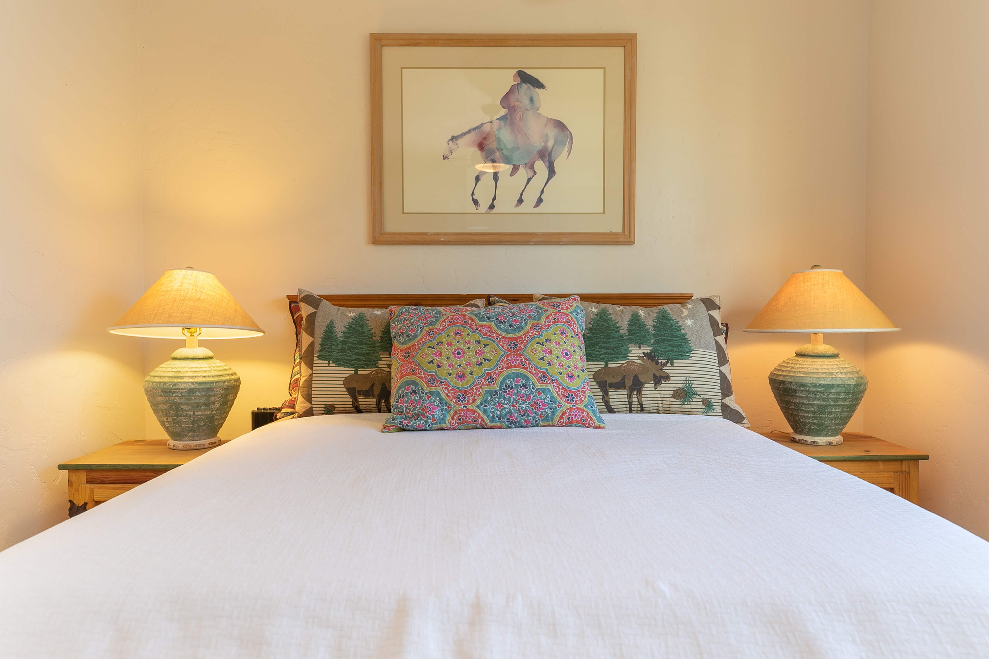 - Queen bedroom: queen bed with attached bathroom with tub/shower (sleeps 2)
