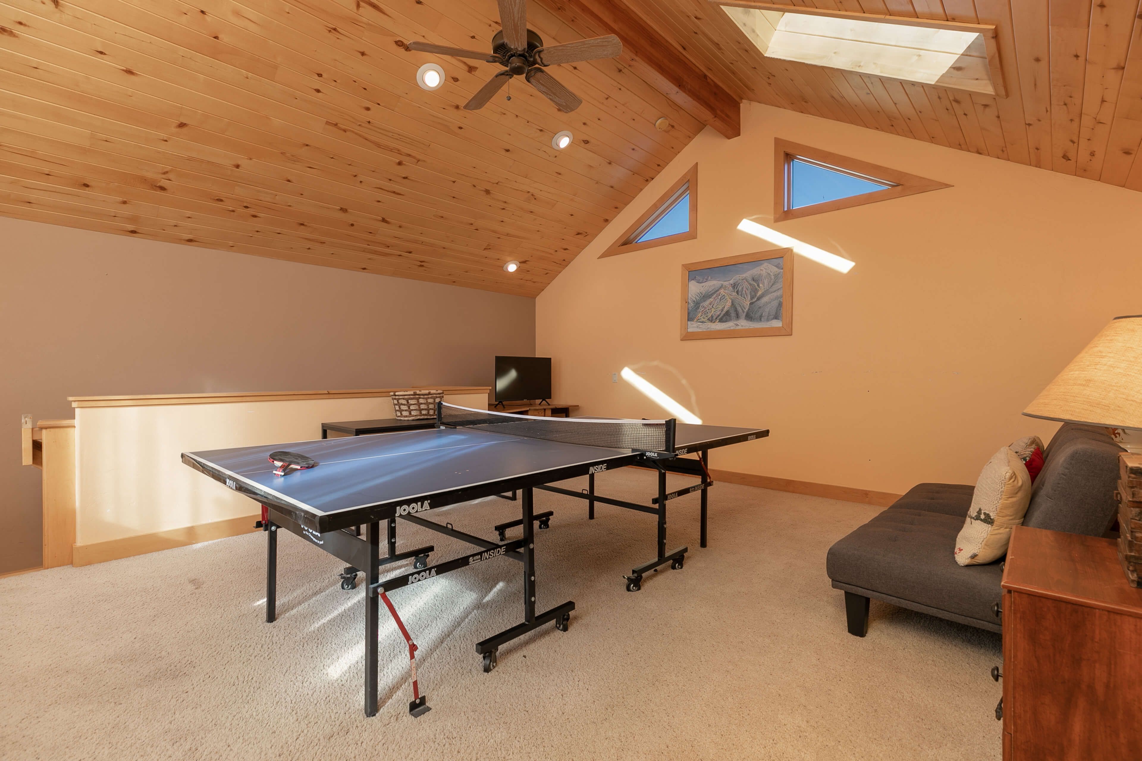 - Loft: futon, flat-screen TV, ping pong table. (sleeps 1)