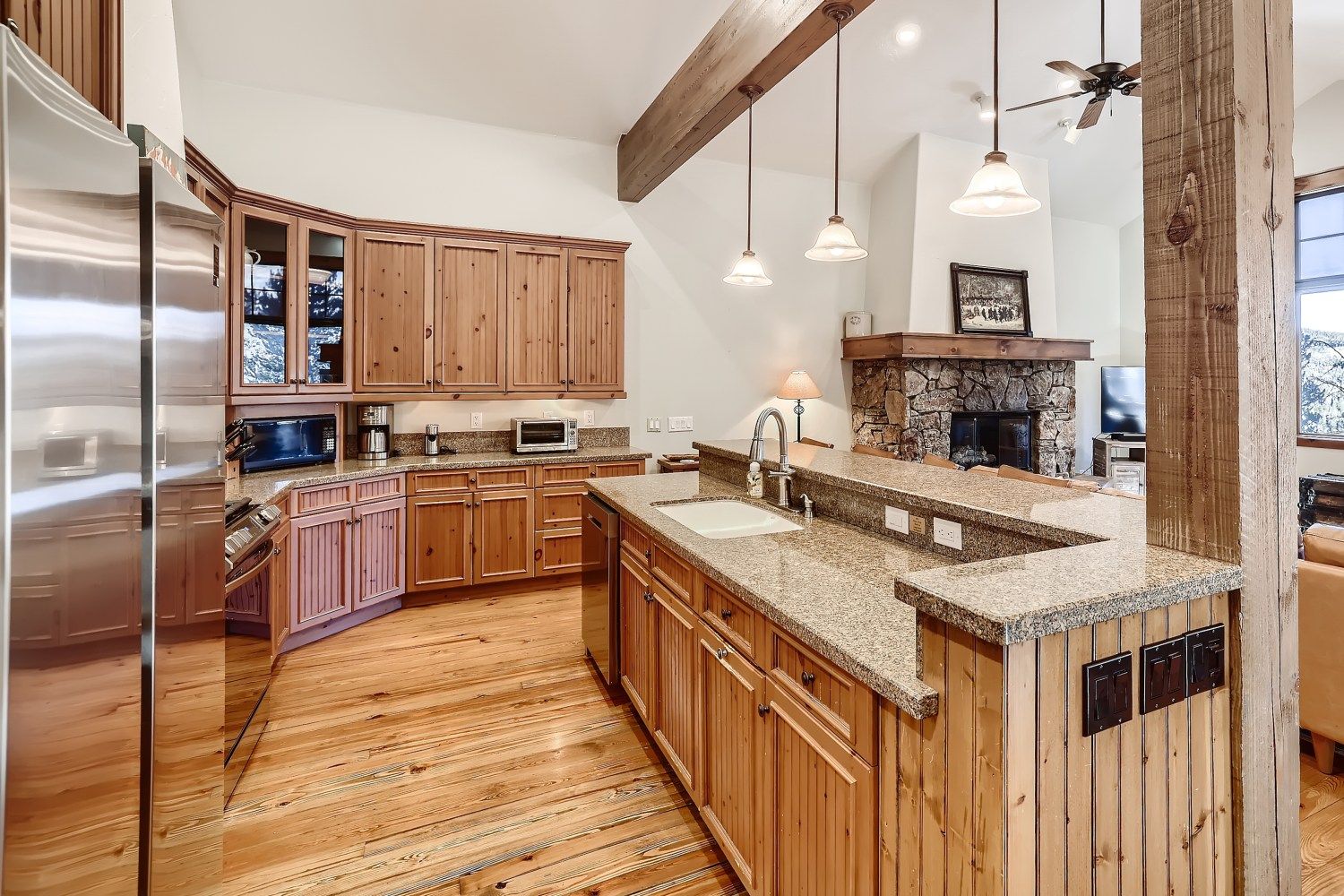 The kitchen has granite counters, stainless-steel appliances (including a gas range) and is fully equipped with everything you’ll need to keep your group happy and fed. The dining table seats eight, and there’s room for four more at the counter. Other amenities include a washer and dryer, a two-car garage (with two more spaces in the driveway) and complimentary Wi-Fi. And like every Summit Mountain Rentals property, this home comes stocked with plenty of linens, towels and hotel-like toiletries, and is professionally cleaned and inspected before each arrival. Our helpful staff is also available 24 hours a day to ensure you have everything you need to make your stay with us an unforgettable experience.